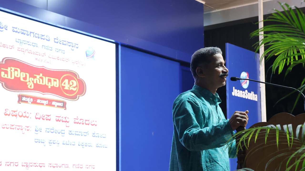 ಕಾರ್ಕಳ ಜ್ಞಾನಸುಧಾ ಶಿಕ್ಷಣ ಸಂಸ್ಥೆಯಆವರಣದಲ್ಲಿ ಶ್ರೀ ಮಹಾಗಣಪತಿದೇವಸ್ಥಾನ ಹಾಗೂಅಜೆಕಾರ್ ಪದ್ಮಗೋಪಾಲ್ ಎಜ್ಯುಕೇಶನ್ ಟ್ರಸ್ಟ್ ಸಹಯೋಗದಲ್ಲಿ ನಡೆಯುತ್ತಿರುವ ಮೌಲ್ಯಸುಧಾ ಮಾಲಿಕೆ-೪೨ರಲ್ಲಿ ‘ದೀಪ ಹಚ್ಚುವ ಮೊದಲು’ ಎಂಬ ವಿಷಯದ ಕುರಿತು ಅವರು ವಿಶೇಷ ಉಪನ್ಯಾಸ ನೀಡಿದರು.ನಾವೆಷ್ಟೂ ಎಷ್ಟು ಬಾಗುತ್ತೇವೋ ಅಷ್ಟು ಜಾಣರಾಗುತ್ತೇವೆ. ಹಿರಿಯರನ್ನು, ಗುರುಗಳನ್ನು ಗೌರವಿಸುವ ಗುಣ ನಮ್ಮದಾಗಲಿ. ಉತ್ತಮ ಕೇಳುಗರಾದರೆ ಅತ್ಯುತ್ತಮ ಮಾತುಗಾರರಾಗುತ್ತೇವೆ. ನಾವು ಸಂಬಂಧಗಳನ್ನು ಬೆಸೆಯುವ ಸೂಜಿಗಳಾಗ ಬೇಕು ಎಂದರು.