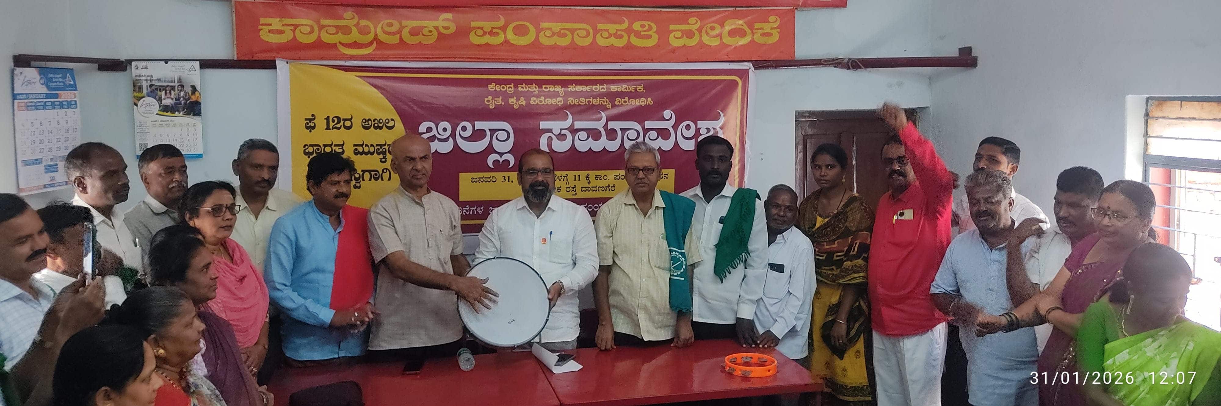 ಮನರೇಗಾ ಯೋಜನೆ ಹೆಸರನ್ನು ಬದಲಿಸಿದ ಮಾತ್ರಕ್ಕೆ ಕೂಲಿ ಕಾರ್ಮಿಕರ ಬದುಕು ಹಸನಾಗುವುದಿಲ್ಲ ಎಂದು ಜೆಸಿಟಿಯು ನಾಯಕ ಕೆ.ವಿ.ಭಟ್ ವ್ಯಂಗ್ಯವಾಡಿದರು.ನಗರದ ಸಿಪಿಐ ಜಿಲ್ಲಾ ಕಚೇರಿಯಲ್ಲಿ ಶನಿವಾರ ಕಾರ್ಮಿಕ ಸಂಘಟನೆಗಳ ಜಂಟಿ ಸಮಿತಿ ಜೆಸಿಟಿಯು ಫೆ.12ರ ಅಖಿಲ ಭಾರತ ಸಾರ್ವತ್ರಿಕ ಮುಷ್ಕರದ ಯಶಸ್ಸಿಗೆ ಹಮ್ಮಿಕೊಂಡಿದ್ದ ಕಾರ್ಮಿಕರ ಜಿಲ್ಲಾ ಸಮಾವೇಶವನ್ನು ತಮಟೆ ಬಾರಿಸುವ ಮೂಲಕ ಉದ್ಘಾಟಿಸಿ ಮಾತನಾಡಿ, ವಿಸ್ತಾರವಾದ ಮತ್ತು ಕಾರ್ಮಿಕರ ಪರವಿದ್ದ 29 ಲೇಬರ್ ಕೋಡ್ಗಳನ್ನು ಸಂಕುಚಿತಗೊಳಿಸಿ, 4 ಕೋಡ್ಗಳಾಗಿ ಪರಿವರ್ತಿಸದ ಕಾರ್ಮಿಕ ವಿರೋಧಿಯಾದ ನಾಲ್ಕೂ ಕಾನೂನನ್ನು ಮೊದಲು ಹಿಂಪಡೆಯಲಿ ಎಂದರು.