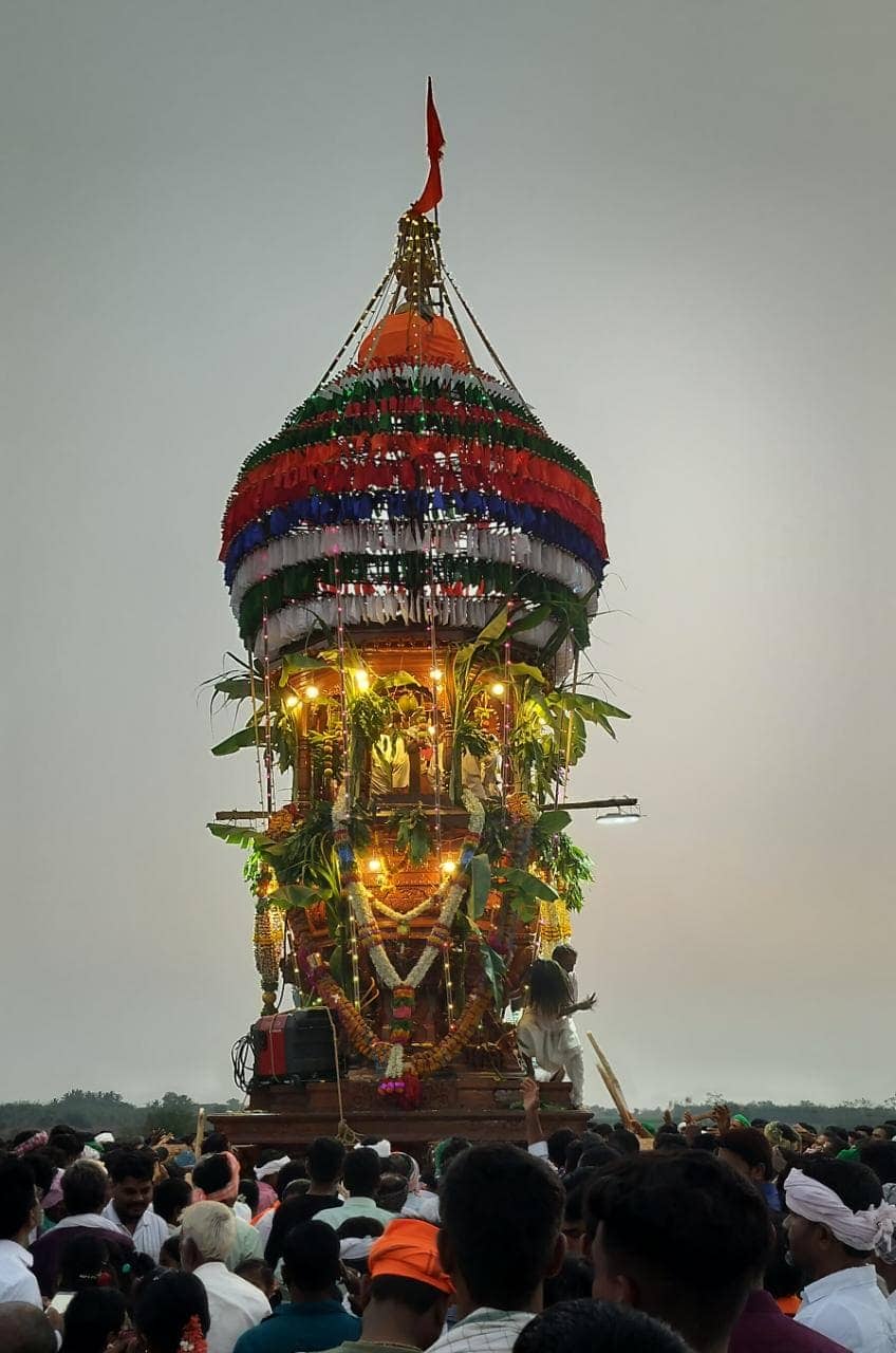 ದೇವಸ್ಥಾನದ ಆವರಣದಿಂದ ಸ್ವಲ್ಪ ದೂರದಲ್ಲಿರುವ ಬಸವೇಶ್ವರ ದೇವಸ್ಥಾನದವರೆಗೆ ಚಲಿಸಿ ಮೂಲ ಸ್ಥಳಕ್ಕೆ ವಾಪಸ್ಸಾಯಿತು. ನೆರೆದಿದ್ದ ಭಕ್ತ ಸಮೂಹ "ಹರ, ಹರ ಮಹಾದೇವ " ಎಂಬ ಜಯಘೋಷಣೆ ಮೊಳಗಿಸಿದರು. ಮಹಾರಥೋತ್ಸವದ ಕಳಸಕ್ಕೆ ಭಕ್ತರು ಬಾಳೆ ಹಣ್ಣು, ಉತ್ತತ್ತಿ, ಬೆಲ್ಲವನ್ನು ಎಸೆದು ಭಕ್ತಿ ಭಾವವನ್ನು ಸಮರ್ಪಣೆ ಮಾಡಿದರು. ಬಳಿಕ ದೇವಸ್ಥಾನದ ಆವರಣದಲ್ಲಿ ಸಮ್ಮಾಳ ಕಲಾ ತಂಡದ ಪುರವಂತರಿಂದ ಪಾರ್ವತಿ ಪರಮೇಶ್ವರರ ಕುರಿತು ಒಡಪುಗಳನ್ನು ಪ್ರಸ್ತುತ ಪಡಿಸಲಾಯಿತು. ರಥೋತ್ಸವ ಮುಗಿದ ಬಳಿಕ ಇಷ್ಟಾರ್ಥ ಸಿದ್ದಿಗಾಗಿ ಬೇಡಿಕೊಂಡ ಭಕ್ತರು ಹರಕೆಯನ್ನು ತೀರಿಸಿದರು. ಬೆಳಗ್ಗೆಯಿಂದ ಸಂಜೆಯವರೆಗೂ ದೇವಸ್ಥಾನಕ್ಕೆ ಆಗಮಿಸುವ ಭಕ್ತರು ಹಣ್ಣುö, ಕಾಯಿ ನೈವೇದ್ಯ ಸಮರ್ಪಿಸಿದರು. ನಂತರ ಗ್ರಾಮದ ಪ್ರಮುಖ ಬೀದಿಗಳಲ್ಲಿ ಓಕುಳಿ ಕಾರ್ಯಕ್ರಮ ನಡೆಯಿತು. ದಿನವಿಡಿ ಭಕ್ತರಿಗೆ ಅನ್ನ ಸಂತರ್ಪಣೆ ಜರುಗಿತು.ಈ ಸಂದರ್ಭದಲ್ಲಿ ಜಾತ್ರಾ ಮಹೋತ್ಸವ ಸಮಿತಿ ಪದಾಧಿಕಾರಿಗಳು ಸೇರಿದಂತೆ ಸುತ್ತಮುತ್ತಲಿನ ಗ್ರಾಮಗಳಾದ ಹನುಮನಹಳ್ಳಿ, ಶಿಬಾರ, ಭರಡಿ, ಕೂರಗುಂದ, ಬಸಾಪೂರ, ಬೂದಗಟ್ಟಿ, ಕಾಟೇನಹಳ್ಳಿ, ಕಲ್ಲೆದೇವರ ಗ್ರಾಮಗಳ ಗ್ರಾಮಸ್ಥರು ಪಾಲ್ಗೊಂಡಿದ್ದರು.
