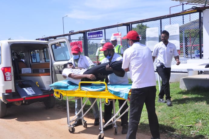 ಕಾರ್ಖಾನೆಯ 20 ಕಾರ್ಮಿಕರು ರಾಸಾಯನಿಕ ಸೋರಿಕೆಯಿಂದ ಗಾಯಗೊಂಡರು, ಎನ್ಡಿಆರ್ಎಫ್ ತಂಡ ಅವರನ್ನು ರಕ್ಷಿಸಿ ಆಸ್ಪತ್ರೆಗೆ ಕಳುಹಿಸಿ ಚಿಕಿತ್ಸೆ ಕೊಡಿಸಲಾಯಿತು. ಈ ರಾಸಾಯನಿಕ ದುರಂತ ಅಣುಕು ಪ್ರದರ್ಶನದಿಂದ ಕಾರ್ಖಾನೆಯಲ್ಲಿ ಸುಮಾರು 265ಕ್ಕೂ ಹೆಚ್ಚು ಕಾರ್ಮಿಕರನ್ನು ರಕ್ಷಿಸಿ ದೊಡ್ಡಬಳ್ಳಾಪುರದ ಡಿ ಕ್ರಾಸ್ ಬಳಿಯಿರುವ ಪುನರ್ವಸತಿ ಕೇಂದ್ರಗಳಾದ ಅಂಬೇಡ್ಕರ್ ಭವನ ಮತ್ತು ಸರ್ಕಾರಿ ಬಾಲಕಿಯರ ವಸತಿ ನಿಲಯಕ್ಕೆ ಸ್ಥಳಾಂತರಿಸಲಾಯಿತು.ಕಾರ್ಖಾನೆಯ ಸುತ್ತಮುತ್ತಲಿನ ಗ್ರಾಮಗಳು ಮತ್ತು ಪ್ರದೇಶದ ಮಾರ್ಗಗಳನ್ನು DDMA ಯ ಸಹಯೋಗದೊಂದಿಗೆ ಸುತ್ತುವರಿದು ಟ್ರಾಫಿಕ್ ನಿಯಂತ್ರಿಸಲಾಯಿತು. ಈ ಸಮಯದಲ್ಲಿ 02 ಕಾರ್ಮಿಕರು ಮೃತಪಟ್ಟಿದ್ದು, ಸಣ್ಣ-ಪುಟ್ಟ ಗಾಯಗಳಾಗಿರುವ 8 ಕಾರ್ಮಿಕರನ್ನು, ದೊಡ್ಡಬಳ್ಳಾಪುರ ತಾಲೂಕಿನ ವಿವಿಧ ಆಸ್ಪತ್ರೆಗಳಿಗೆ ಸ್ಥಳಾಂತರಿಸಿ ಚಿಕಿತ್ಸೆ ನೀಡಲಾಯಿತು. ಅತೀ ಹೆಚ್ಚು ಗಾಯಗಳಾದ 2 ಕಾರ್ಮಿಕರನ್ನು ವಿಕ್ಟೋರಿಯಾ ಮತ್ತು ಮಣಿಪಾಲ್ ಆಸ್ಪತ್ರೆಗೆ ಸ್ಥಳಾಂತರಿಸಿ ಚಿಕಿತ್ಸೆ ನೀಡಲಾಯಿತು.