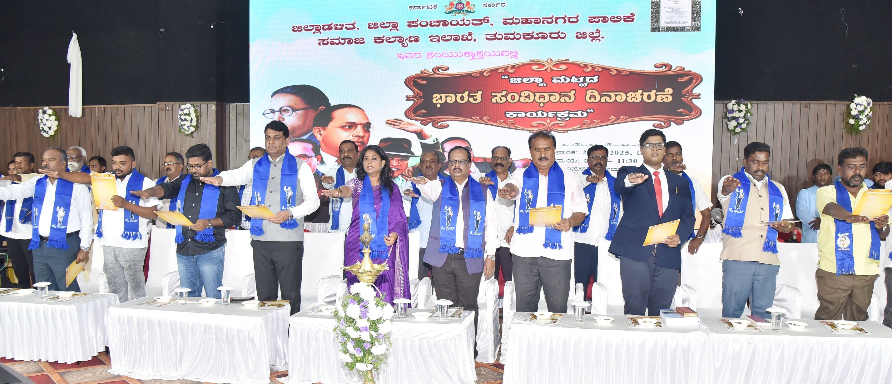 ಅಪರ ಜಿಲ್ಲಾಧಿಕಾರಿ ಡಾ. ಎನ್. ತಿಪ್ಪೇಸ್ವಾಮಿ ಮಾತನಾಡಿ, ಸಂವಿಧಾನವು ದೇಶದ ಪ್ರತಿ ಪ್ರಜೆಯ ಸ್ವಾಭಿಮಾನದ ಸಂಕೇತವಾಗಬೇಕು. ಸಂವಿಧಾನದ ಜಾಗೃತಿ ಪ್ರತಿಯೊಬ್ಬರ ಮನದಲ್ಲೂ ಅಚ್ಚೊತ್ತಬೇಕು. ಸಂವಿಧಾನದ ಅರಿವು ಪ್ರತಿ ಪ್ರಜೆಯ ಕರ್ತವ್ಯವಾಗಬೇಕು. ಸಂವಿಧಾನದ ಅರ್ಥ, ಮಹತ್ವ ಹಾಗೂ ಜವಾಬ್ದಾರಿಯನ್ನು ನಮ್ಮ ಜನ ಅರ್ಥ ಮಾಡಿಕೊಳ್ಳಬೇಕೆಂಬುದು ಬಾಬಾ ಸಾಹೇಬ್ ಅಂಬೇಡ್ಕರ್ ಅವರ ಆಶಯವಾಗಿತ್ತು ಎಂದು ತಿಳಿಸಿದರು. ನಂತರ ಡಾ: ಬಿ.ಆರ್. ಅಂಬೇಡ್ಕರ್ವಾದಿ, ಭಾಷಣಕಾರ ವಿ.ಎಲ್. ನರಸಿಂಹಮೂರ್ತಿ ಅವರು ಸಂವಿಧಾನ ಕುರಿತು ಉಪನ್ಯಾಸ ನೀಡಿದರು. ಕಾರ್ಯಕ್ರಮದಲ್ಲಿ ಮಹನೀಯರಾದ ಡಾ: ಬಿ.ಆರ್. ಅಂಬೇಡ್ಕರ್ ಹಾಗೂ ಡಾ: ಬಾಬು ಜಗಜೀವನ ರಾಂ ಅವರ ಭಾವಚಿತ್ರಕ್ಕೆ ಗಣ್ಯರಿಂದ ಪುಷ್ಪ ನಮನ ಸಲ್ಲಿಸಲಾಯಿತು. ಭಾರತ ಸಂವಿಧಾನ ಪೀಠಿಕೆಯ ಪ್ರತಿಜ್ಞಾವಿಧಿಯನ್ನು ಬೋಧಿಸಲಾಯಿತು. ಕಾರ್ಯಕ್ರಮದಲ್ಲಿ ಗೃಹ ಸಚಿವರ ವಿಶೇಷ ಕರ್ತವ್ಯಾಧಿಕಾರಿ ನಾಗಣ್ಣ, ಸಮಾಜ ಕಲ್ಯಾಣ ಇಲಾಖೆಯ ಜಂಟಿ ನಿರ್ದೇಶಕ ಕೃಷ್ಣಪ್ಪ, ಜಿಲ್ಲಾ ಪಂಚಾಯತಿ ಮುಖ್ಯ ಯೋಜನಾಧಿಕಾರಿ ಸಣ್ಣ ಮಸಿಯಪ್ಪ ಹಾಗೂ ಯೋಜನಾ ನಿರ್ದೇಶಕ ನಾರಾಯಣಸ್ವಾಮಿ, ಡಿಎಲ್ಬಿಸಿ ಸದಸ್ಯ ಶ್ರೀಧರ್, ಡಿಡಿಪಿಐ ರಘುಚಂದ್ರ, ಡಿಡಿಪಿಯು ಬಾಲಗುರುಮೂರ್ತಿ, ಬಿಇಓ ಹನುಮಂತಪ್ಪ, ವಿವಿಧ ದಲಿತ ಮುಖಂಡರು ಹಾಗೂ ಪದಾಧಿಕಾರಿಗಳು ಸೇರಿದಂತೆ ಮತ್ತಿತರರು ಉಪಸ್ಥಿತರಿದ್ದರು.