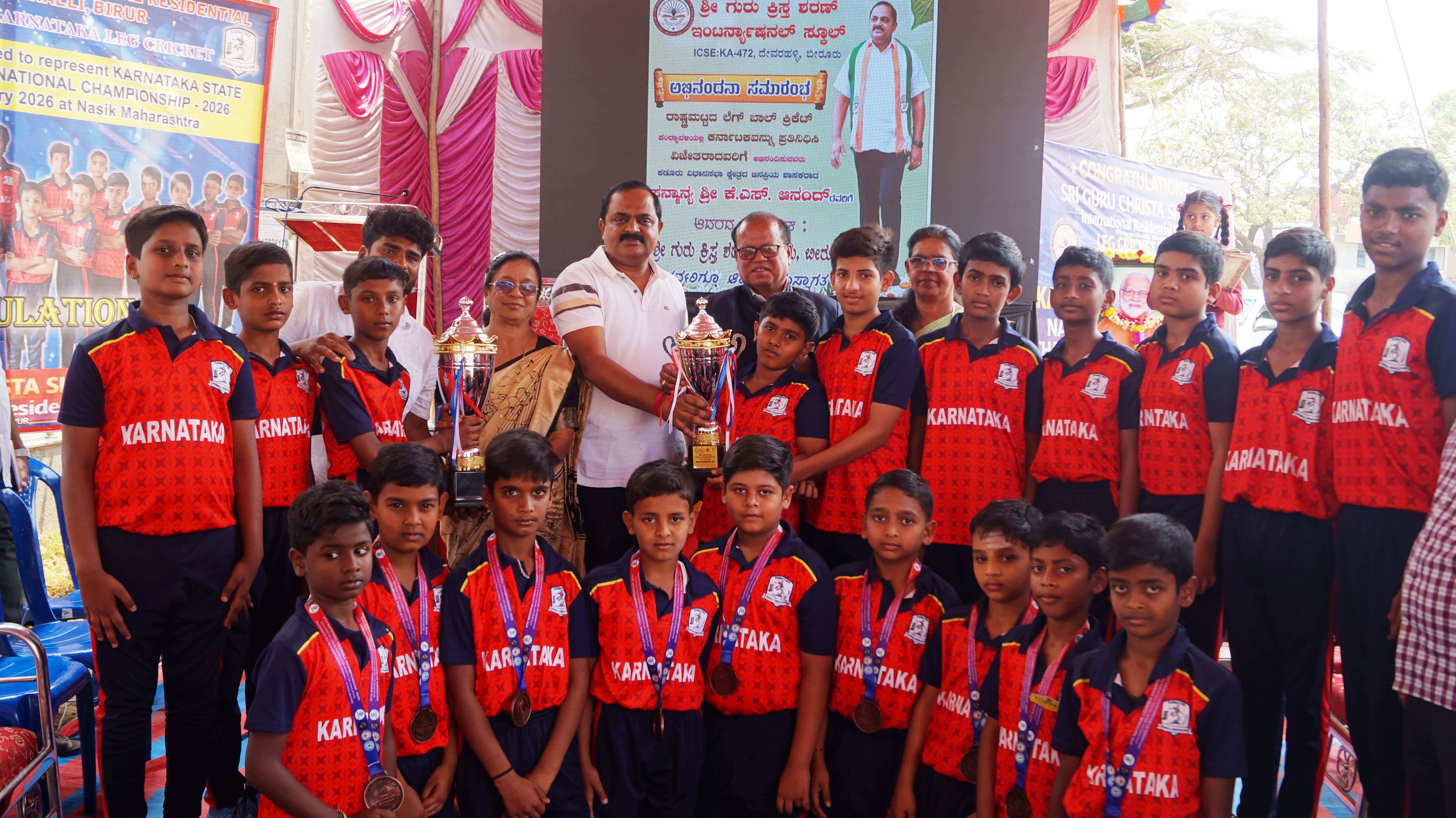 ಪಟ್ಟಣದ ಖಾಸಗಿ ಬಸ್ ನಿಲ್ದಾಣದಲ್ಲಿ ದೇವರಹಳ್ಳಿ ಶ್ರೀ ಗುರು ಕ್ರಿಸ್ತ ಶರಣ್ ಇಂಟರ್ ನ್ಯಾಷನಲ್ ಸ್ಕೂಲ್ ಆಯೋಜಿಸಿದ್ದ, ಮಹಾರಾಷ್ಟ್ರದ ನಾಸಿಕನಲ್ಲಿ ನಡೆದ 4ನೇ ರಾಷ್ಟ್ರೀಯ ಲೆಗ್ ಬಾಲ್ (ಲೆಗ್ ಕ್ರಿಕೆಟ್) ಚಾಂಪಿಯನ್ಶಿಪ್ ನಲ್ಲಿ ರಾಜ್ಯಕ್ಕೆ ತೃತೀಯ ಸ್ಥಾನ ಗಳಿಸಿದ ಕ್ರೀಡಾಪಟುಗಳಿಗೆ ಸನ್ಮಾನಿಸಿ ಮಾತನಾಡಿದರು.ವಿದ್ಯೆ ನಮ್ಮ ಜೀವನದ ಕಲಿಕೆಗೆ ಮಾತ್ರ ಆದರೆ ಭವಿಷ್ಯ ರೂಪಿಸುವುದು ನಮ್ಮ ಅಂತರಾಳದಲ್ಲಿ ಅಡಗಿದ ತಮ್ಮದೇ ಆದ ಪ್ರತಿಭೆ. ಪೋಷಕರು ಮಕ್ಕಳಿಗೆ ಒತ್ತಡ ಹಾಕದೇ ಯಾವ ವಿಷಯದಲ್ಲಿ ತಮ್ಮ ಮಗ ಆಸಕ್ತಿ ಹೊಂದಿದ್ದಾನೆಂದು ಗುರುತಿಸಿ ಆ ವಿಷಯದಲ್ಲಿ ಪ್ರೋತ್ಸಾಹ ನೀಡಿದಾಗ ಮಾತ್ರ ಆತ ಭವಿಷ್ಯ ಕಟ್ಟಿಕೊಳ್ಳುತ್ತಾನೆ. ಶ್ರೀ ಗುರು ಕ್ರಿಸ್ತ ಶರಣ್ ಇಂಟರ್ ನ್ಯಾಷನಲ್ ಶಾಲೆ ಕಳೆದ ಜ.28 ರಿಂದ ಜ.30ರ ತನಕ ಮಹಾರಾಷ್ಟ್ರದ ನಾಸಿಕನಲ್ಲಿ ನಡೆದ 4ನೇ ರಾಷ್ಟ್ರೀಯ ಲೆಗ್ ಬಾಲ್ (ಲೆಗ್ ಕ್ರಿಕೆಟ್) ಚಾಂಪಿಯನ್ಶಿಪ್ನಲ್ಲಿ ಕರ್ನಾಟಕವನ್ನು ಪ್ರತಿನಿಧಿಸಿ 12 ವರ್ಷದ ಬಾಲಕರ ವಿಭಾಗದಲ್ಲಿ ತೃತೀಯ ಸ್ಥಾನ ಪಡೆದು ರಾಜ್ಯಕ್ಕೆ ಕೀರ್ತಿ ತಂದಿದ್ದಾರೆ ಎಂದರು.