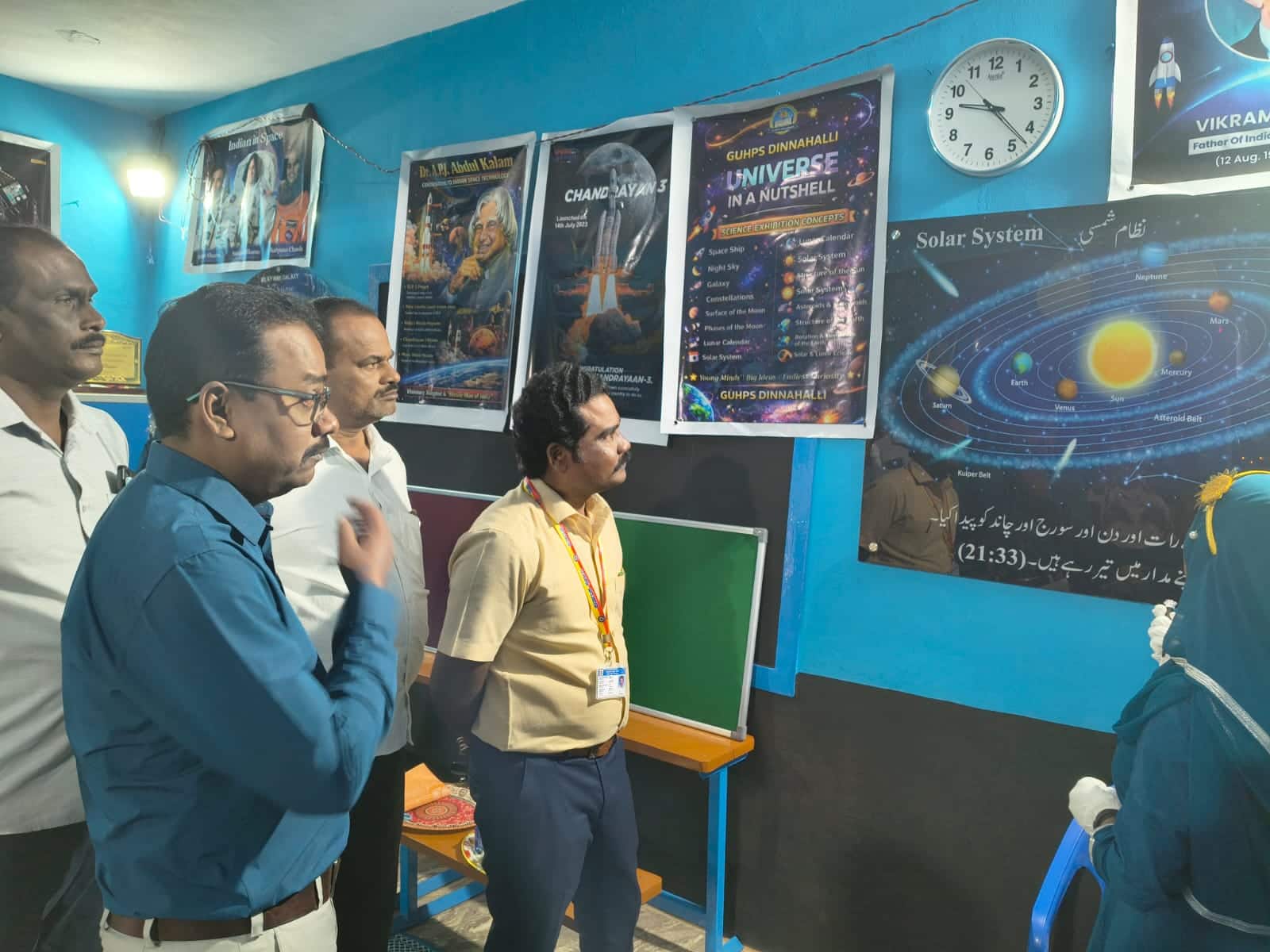 ‘ಮಕ್ಕಳಿಗೆ ವೈಚಾರಿಕತೆ ಹಾಗೂ ವೈಜ್ಞಾನಿಕತೆಯ ಬಗ್ಗೆ ಅರಿವು ಮೂಡಿಸುವಂತಹ ಕಾರ್ಯಕ್ರಮ ಹಮ್ಮಿಕೊಂಡಿರುವುದು ಶ್ಲಾಘನೀಯ’ ಎಂದು ಕ್ಷೇತ್ರ ಶಿಕ್ಷಣಾಧಿಕಾರಿ ಮಹೇಶ್ ತಿಳಿಸಿದರು.ತಾಲೂಕಿನ ದಿನ್ನಳ್ಳಿ ಉರ್ದು ಶಾಲೆಯಲ್ಲಿ ‘ದಿ ಯುನಿವರ್ಸ್ ಇನ್ ಎ ನಟ್ಷೆಲ್’ ಎಂಬ ಶೀರ್ಷಿಕೆಯೊಂದಿಗೆ ಆಯೋಜಿಸಲಾಗಿದ್ದ ಶಾಲಾ ವಿಜ್ಞಾನ ವಸ್ತು ಪ್ರದರ್ಶನ ಕಾರ್ಯಕ್ರಮ ಉದ್ಘಾಟಿಸಿ, ‘ಶಾಲಾ ಹಂತದಲ್ಲಿ ಮಕ್ಕಳಿಗೆ ಹೆಚ್ಚು ಹೆಚ್ಚು ವಿಜ್ಞಾನ ವಸ್ತು ಪ್ರದರ್ಶನ ಹಾಗೂ ವೈಜ್ಞಾನಿಕ ಮನೋಭಾವನೆ ಹುಟ್ಟು ಹಾಕುವಂತಹ ಕಾರ್ಯಕ್ರಮ ಹಮ್ಮಿಕೊಳ್ಳಬೇಕಾಗಿದೆ. ಆ ಮೂಲಕ ಮಕ್ಕಳನ್ನು ಮೂಢನಂಬಿಕೆಯಿಂದ ಹೊರ ತರಬೇಕಿದೆ. ಈ ನಿಟ್ಟಿನಲ್ಲಿ ಕಾರ್ಯಕ್ರಮ ಹಮ್ಮಿಕೊಂಡಿದ ಶಿಕ್ಷಕರು ಮತ್ತು ಮಕ್ಕಳಿಗೆ ಅಭಿನಂದನೆಗಳು ಎಂದು ತಿಳಿಸಿದರು.ಬ್ರಹ್ಮಾಂಡದ ತತ್ವ ಇನ್ನು ಸುಲಭ: