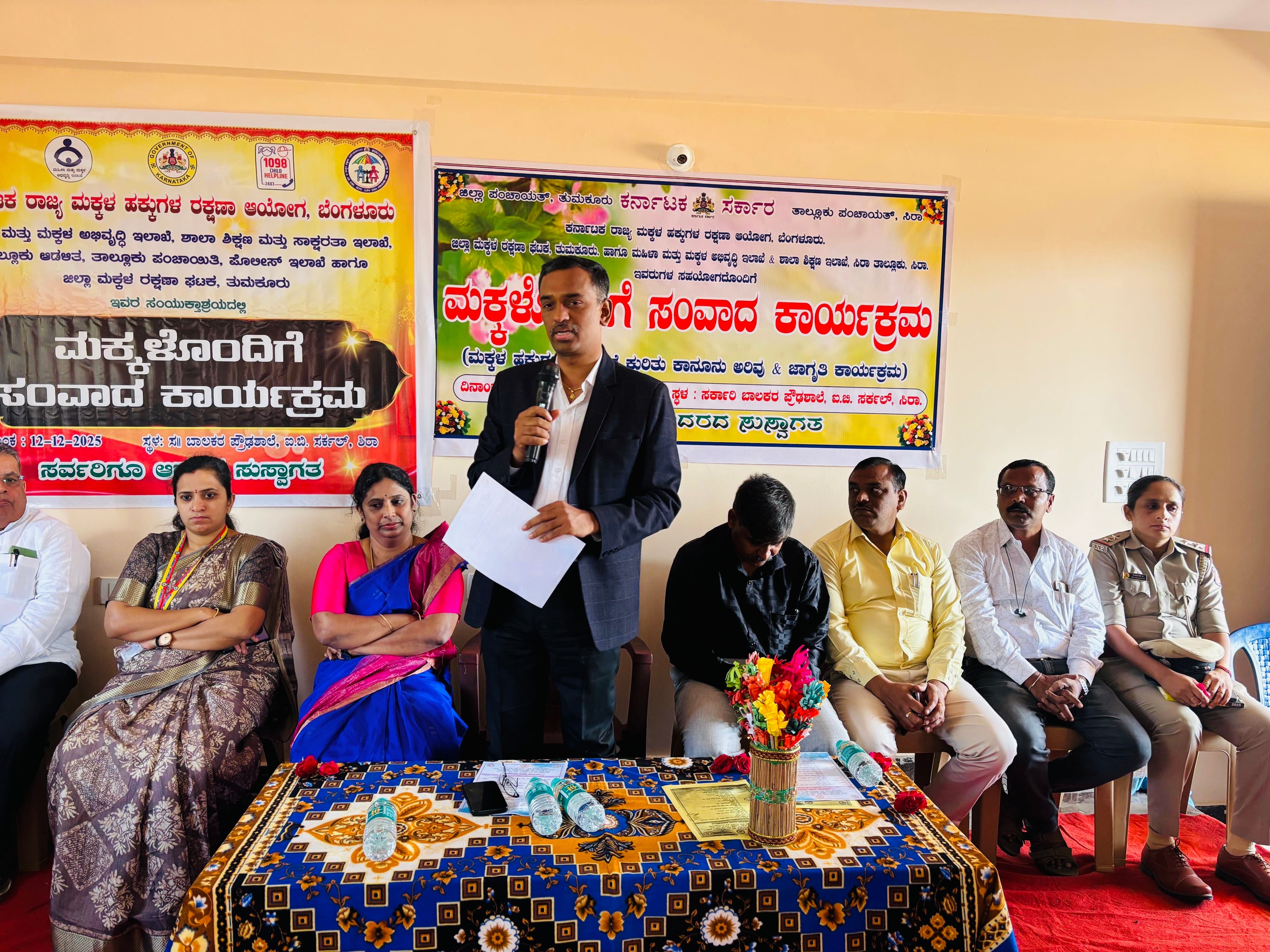 ಮಕ್ಕಳು ತಮ್ಮ ಅಭಿಪ್ರಾಯಗಳನ್ನು ಮುಕ್ತವಾಗಿ ವ್ಯಕ್ತಪಡಿಸಲು ಅವಕಾಶ ನೀಡುವುದು ಮತ್ತು ಅವರ ಅಭಿಪ್ರಾಯಗಳನ್ನು ಗಂಭೀರವಾಗಿ ಪರಿಗಣಿಸುವುದು ಸರ್ಕಾರದ ಆದ್ಯ ಕರ್ತವ್ಯವಾಗಿದೆ ಎಂದು ರಾಜ್ಯ ಮಕ್ಕಳ ಹಕ್ಕುಗಳ ರಕ್ಷಣಾ ಆಯೋಗದ ಸದಸ್ಯ ಡಾ.ತಿಪ್ಪೇಸ್ವಾಮಿ ಕೆ.ಟಿ ಹೇಳಿದರು.ಅವರು ಸಿರಾ ನಗರದ ಸರ್ಕಾರಿ ಪ್ರೌಢಶಾಲೆಯಲ್ಲಿ ಕರ್ನಾಟಕ ರಾಜ್ಯ ಮಕ್ಕಳ ಹಕ್ಕುಗಳ ರಕ್ಷಣಾ ಆಯೋಗ, ಜಿಲ್ಲಾ ಮಕ್ಕಳ ರಕ್ಷಣಾ ಘಟಕ, ಶಾಲಾ ಶಿಕ್ಷಣ ಮತ್ತು ಸಾಕ್ಷರತಾ ಇಲಾಖೆ ಹಾಗೂ ಸಿರಾ ತಾಲೂಕು ಆಡಳಿತದ ವತಿಯಿಂದ ಹಮ್ಮಿಕೊಂಡಿದ್ದ ಮಕ್ಕಳೊಂದಿಗೆ ಸಂವಾದ ಕಾರ್ಯಕ್ರಮ ಉದ್ಘಾಟಿಸಿ ಮಾತನಾಡಿದರು.