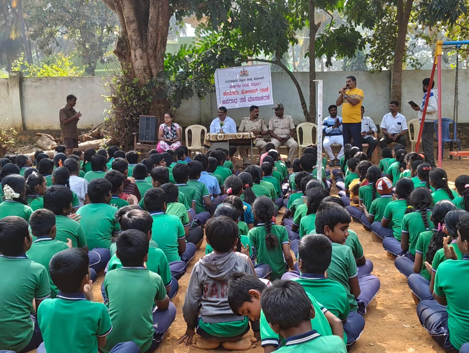 ಮಾಗಡಿ ತಾಲೂಕು ಹುಲಿಕಲ್ಲು ಗ್ರಾಮದ ಸರ್ಕಾರಿ ಹಿರಿಯ ಪ್ರಾಥಮಿಕ ಶಾಲೆಯಲ್ಲಿ ಕುದೂರು ಆರಕ್ಷಕ ಠಾಣೆ ವತಿಯಿಂದ ಅಪರಾಧ ತಡೆ ಮಾಸಾಚರಣೆ ಕಾರ್ಯಕ್ರಮದಲ್ಲಿ ದೈಹಿಕ ಶಿಕ್ಷಣ ಶಿಕ್ಷಕರ ಸಂಘದ ಮಾಜಿ ಅಧ್ಯಕ್ಷ ಕೆ.ಪಿ.ವೆಂಕಟೇಶ್ ಮಾತನಾಡಿದರು.