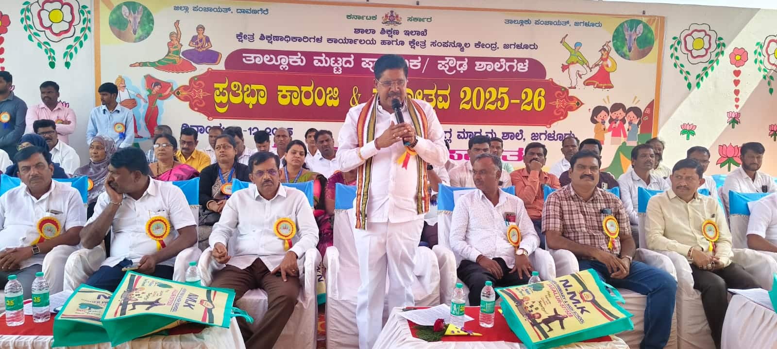 -19ಜೆಜಿ.ಎಲ್.1:ಪ್ರತಿಭಾ ಕಾರಂಜಿ- ಕಲೋತ್ಸವ ಕಾರ್ಯಕ್ರಮ ಉದ್ಘಾಟಿಸಿ ಶಾಸಕ ಬಿ.ದೇವೇಂದ್ರಪ್ಪ ಮಾತನಾಡಿದರು.