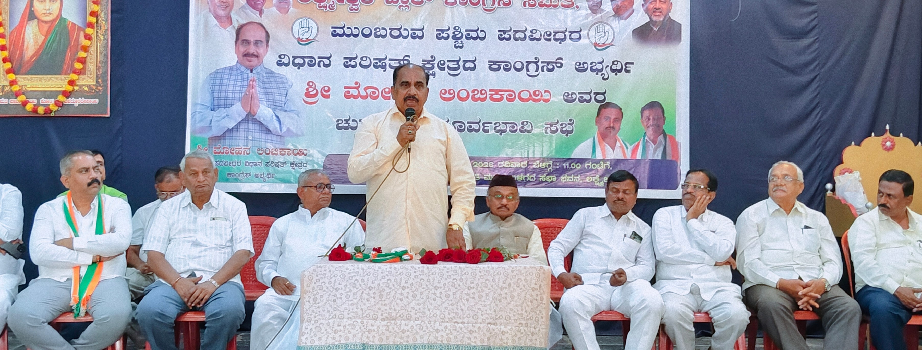 ಈ ವೇಳೆ ಮಾಜಿ ಶಾಸಕ ರಾಮಣ್ಣ ಲಮಾಣಿ, ರಾಮಕೃಷ್ಣ ದೊಡ್ಡಮನಿ, ಲೋಕಸಭಾ ಕ್ಷೇತ್ರದ ಕಾಂಗ್ರೆಸ ಪರಾಜಿತ ಅಭ್ಯರ್ಥಿ ಆನಂದ ಗಡ್ಡದೇವರಮಠ, ಮಾಜಿ ಸಚಿವ ಎಸ್.ವಿ. ನಂಜಯ್ಯನಮಠ ಮಾತನಾಡಿ, ಕಾಂಗ್ರೆಸ್ ಸರ್ಕಾರ ರಾಜ್ಯದಲ್ಲಿ ಆಡಳಿತ ನಡೆಸುತ್ತಿದ್ದು, ಪಕ್ಷದ ಅಭ್ಯರ್ಥಿ ಮೋಹನ ಲಿಂಬಿಕಾಯಿ ಅವರ ಗೆಲುವು ನಿಶ್ಚಿತವೆಂದರು.ಈ ವೇಳೆ ಮಹೇಶ ಹಾರೂಗೇರಿ, ಎಸ್.ಪಿ. ಬಳಿಗಾರ, ಮಹೇಶ ಹೊಗೆಸೊಪ್ಪಿನ ಹಾಗೂ ಶರಣು ಗೋಡಿ ಮಾತನಾಡಿದರು. ವಿ.ಜಿ. ಪಡಗೇರಿ, ಜಿ.ಜೆ. ಆದಪ್ಪ ಗೌಡರ, ದೀಪಕ್ ಲಮಾಣಿ, ರಾಜುಗೌಡ ಪಾಟೀಲ, ಸಾಹೀಬ್ ಜಾನ್ ಹವಾಲ್ದಾರ್, ಮುಕ್ತಿ ಯಾರ್ ಗದಗ, ಚನ್ನಪ್ಪ ಜಗಲಿ, ಸೋಮಣ್ಣ ಬೆಟಗೇರಿ, ಅಮರೀಷ್ ತೆಂಬದಮನಿ, ಸುರೇಶ ನಾವಿ, ಯಲ್ಲಪ್ಪ ತಳವಾರ ಹಾಗೂ ರಂಜನ್ ಪಾಟೀಲ ಇದ್ದರು. ನಿವೃತ್ತ ಮುಖ್ಯಾಧ್ಯಾಪಕ ರಮೇಶ ನವಲೆ ಪ್ರಾಸ್ತಾವಿಕವಾಗಿ ಮಾತನಾಡಿದರು. ಕಿರಣ್ ನವಲೆ ಕಾರ್ಯಕ್ರಮ ನಿರ್ವಹಿಸಿದರು. ಲಕ್ಷ್ಮೇಶ್ವರ ಬ್ಲಾಕ್ ಕಾಂಗ್ರೆಸ್ ಅಧ್ಯಕ್ಷ ಜಿ.ಆರ್. ಕೊಪ್ಪದ ವಂದಿಸಿದರು.