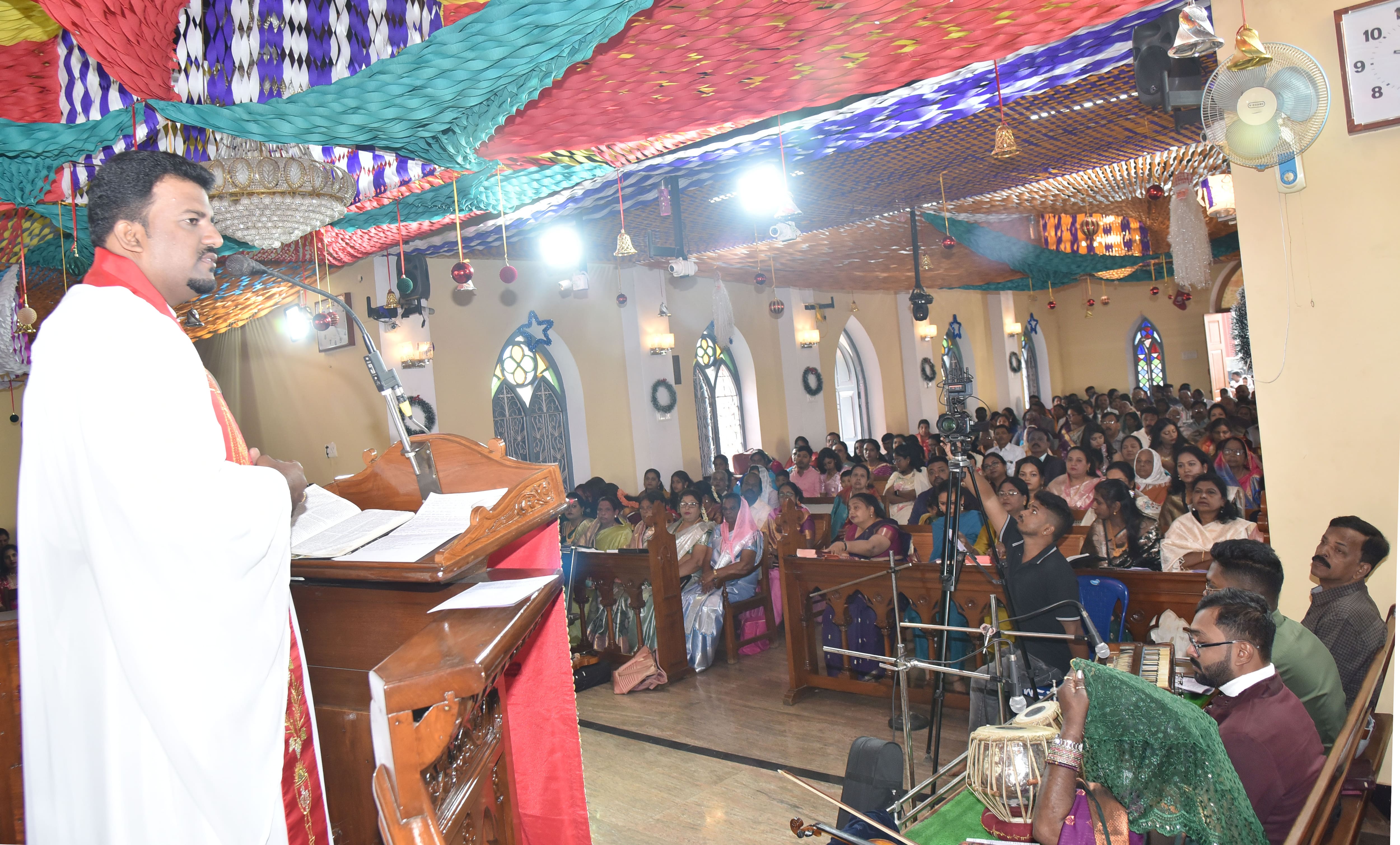 ಚರ್ಚ್ ವೃತ್ತದಲ್ಲಿರುವ ಸಿಎಸ್ಐ ಮಹಾದೇವಾಲಯದಲ್ಲಿ ಕ್ರ್ರೈ ಸ್ತ ಬಾಂಧವರ ಸಾಮೂಹಿಕ ಪ್ರಾರ್ಥನೆಯಾದ ಬಳಿಕ ಸಂದೇಶ ನೀಡಿದ ಸಿಎಸ್ಐ ಮಹಾದೇವಾಲಯದ ಸಭಾ ಪಾಲಕರು, ಕ್ರಿಸ್ಮಸ್ ಏಸುಕ್ರಿಸ್ತನ ಜನ್ಮದಿನದ ಸಂಕೇತ. ಮನುಷ್ಯರಿಗೋಸ್ಕರ ದೇವರು ಪರಲೋಕವನ್ನು ಬಿಟ್ಟು ಭೂಲೋಕಕ್ಕೆ ಬಂದಂತಹ ಶುಭ ವರ್ತಮಾನ ತಿಳಿಸುವಂತಹದ್ದು. ದೇವರು ಮನುಷ್ಯರ ಮೇಲೆ ಎಷ್ಟು ಪ್ರೀತಿ ಇಟ್ಟಿದ್ದಾನೆ ಎಂಬುದನ್ನು ತೋರಿಸುವುದು ಈ ಹಬ್ಬದ ಉದ್ದೇಶ ಎಂದರು.ಕ್ರಿಸ್ಮಸ್ ಹಬ್ಬ ಕ್ರೈಸ್ತರೆಲ್ಲರೂ ಬಹಳ ಉತ್ಸುಕತೆಯಿಂದ ಸಂತಸ, ಸಂಭ್ರಮದಿಂದ ಆಚರಿಸುವಂತಹ ಹಬ್ಬ. ಕ್ರ್ರೈಸ್ತರಿಗೆ ಮೂರು ಹಬ್ಬಗಳು ಮಹತ್ವದ್ದಾಗಿವೆ. ಕ್ರಿಸ್ಮಸ್ ಹಬ್ಬವನ್ನು ಬೆಳಕಿನ ಹಬ್ಬವೆಂದು ಆಚರಿಸಲಾಗುತ್ತದೆ. ಏಸುಕ್ರಿಸ್ತನು ಬೆಳಕಾಗಿ ಬಂದಿದ್ದಾನೆ. ಹಾಗಾಗಿ ಎಲ್ಲ ಚರ್ಚ್ಗಳಲ್ಲಿ ಕ್ಯಾಂಡಲ್ಗಳನ್ನು ಹಿಡಿದು ಏಸುವಿನ ಬೆಳಕು ನಮ್ಮೆಲ್ಲ ಸಂಕಷ್ಟವನ್ನು ದೂರ ಮಾಡುತ್ತದೆ ಎಂದು ಹಬ್ಬವನ್ನು ಆಚರಿಸಲಾಗುತ್ತದೆ ಎಂದರು.