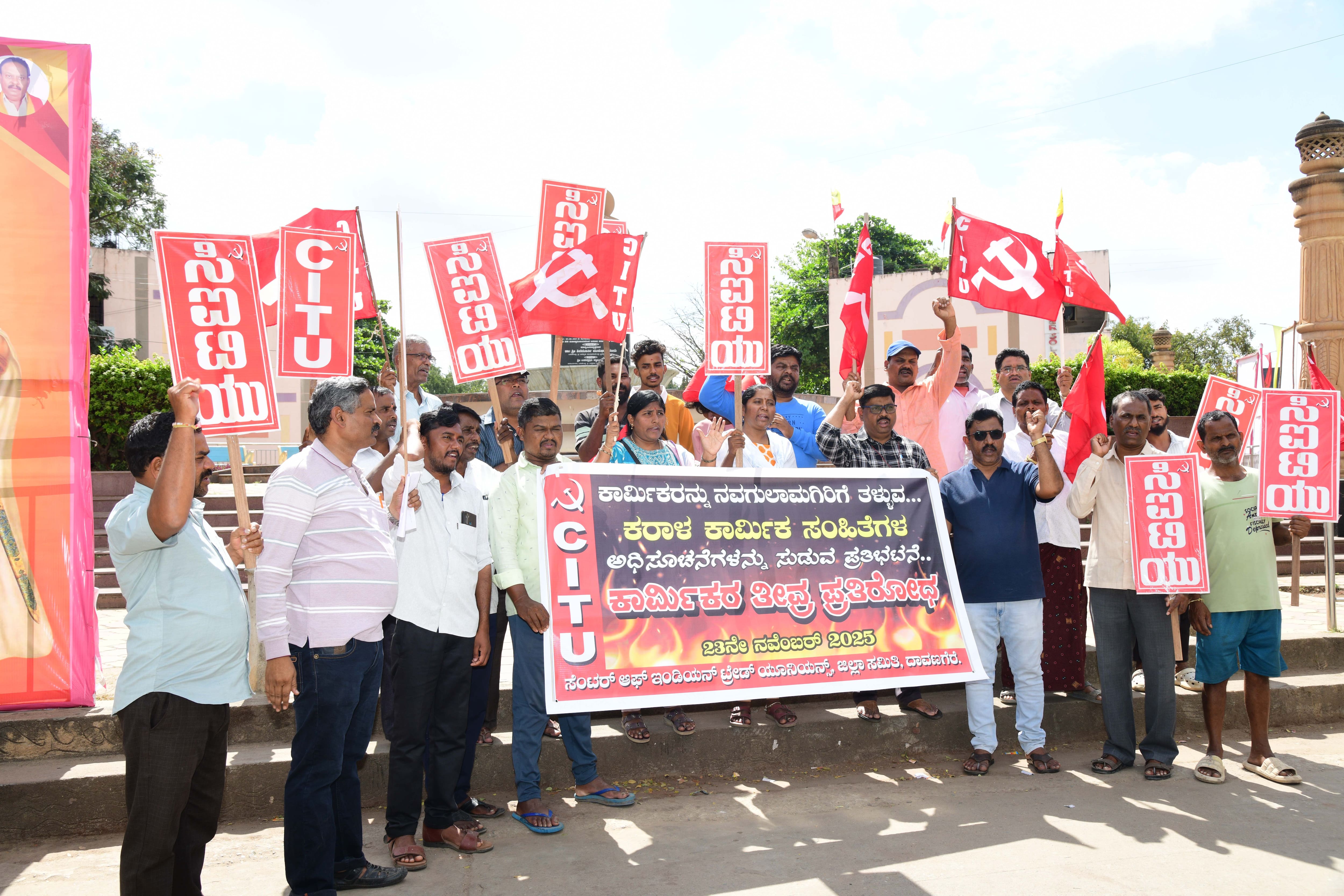 ಸಿಐಟಿಯು ರಾಜ್ಯ ಕಾರ್ಯದರ್ಶಿ ಕೆ.ಮಹಾಂತೇಶ ಮಾತನಾಡಿ, ಕೇಂದ್ರ ಸರ್ಕಾರ ಕಾರ್ಮಿಕ ವಿರೋಧಿ, ಉದ್ಯೋಗದಾತರ ಪರ ಕಾರ್ಮಿಕ ಸಂಹಿತೆಗಳನ್ನು ಏಕಪಕ್ಷೀಯ ವಾಗಿ ಅನುಷ್ಟಾನಗೊಳಿಸಲು ಮುಂದಾಗಿದ್ದು, ಇದಕ್ಕಾಗಿ ಅಧಿಸೂಚನೆ ಪ್ರಕಟಿಸಿದೆ. ಇದು ದೇಶದ ದುಡಿಯುವ ಜನರಿಗೆ ಕೇಂದ್ರ ಸರ್ಕಾರ ಮಾಡಿದ ವಂಚನೆಯಾಗಿದೆ ಎಂದು ಆರೋಪಿಸಿದರು.ನ.21ರಂದು ಅಧಿಸೂಚನೆಗೊಳ್ಳುವ ಪೂರ್ವದಲ್ಲಿ ಹಣಕಾಸು ಸಚಿವೆ ನಿರ್ಮಲ ಸೀತಾರಾಮನ್ ಕರೆದಿದ್ದ ಸಭೆಯಲ್ಲಿ 4 ಕಾರ್ಮಿಕ ಸಂಹಿತೆಗಳೆಂಬ ಅನಿಯಂತ್ರಿತ ಮತ್ತು ಪ್ರಜಾಪ್ರಭುತ್ವ ವಿರೋಧಿ ಅಧಿಸೂಚನೆಯು ಎಲ್ಲ ಪ್ರಜಾಸತ್ತಾತ್ಮಕ ನೀತಿಗಳನ್ನು ಧಿಕ್ಕರಿಸುತ್ತದೆ. ಭಾರತದ ಕಲ್ಯಾಣ ರಾಜ್ಯದ ಸ್ವರೂಪವನ್ನೇ ಇದು ನಾಶಪಡಿಸಲಿದೆ. ಸಿಐಟಿಯು ಹಾಗೂ ಇತರೆ ಕೇಂದ್ರ ಕಾರ್ಮಿಕ ಸಂಘಗಳು ಪ್ರತಿರೋಧ ವ್ಯಕ್ತಪಡಿಸಿದ್ದವು ಎಂದು ತಿಳಿಸಿದರು.