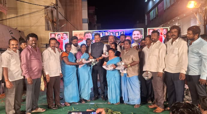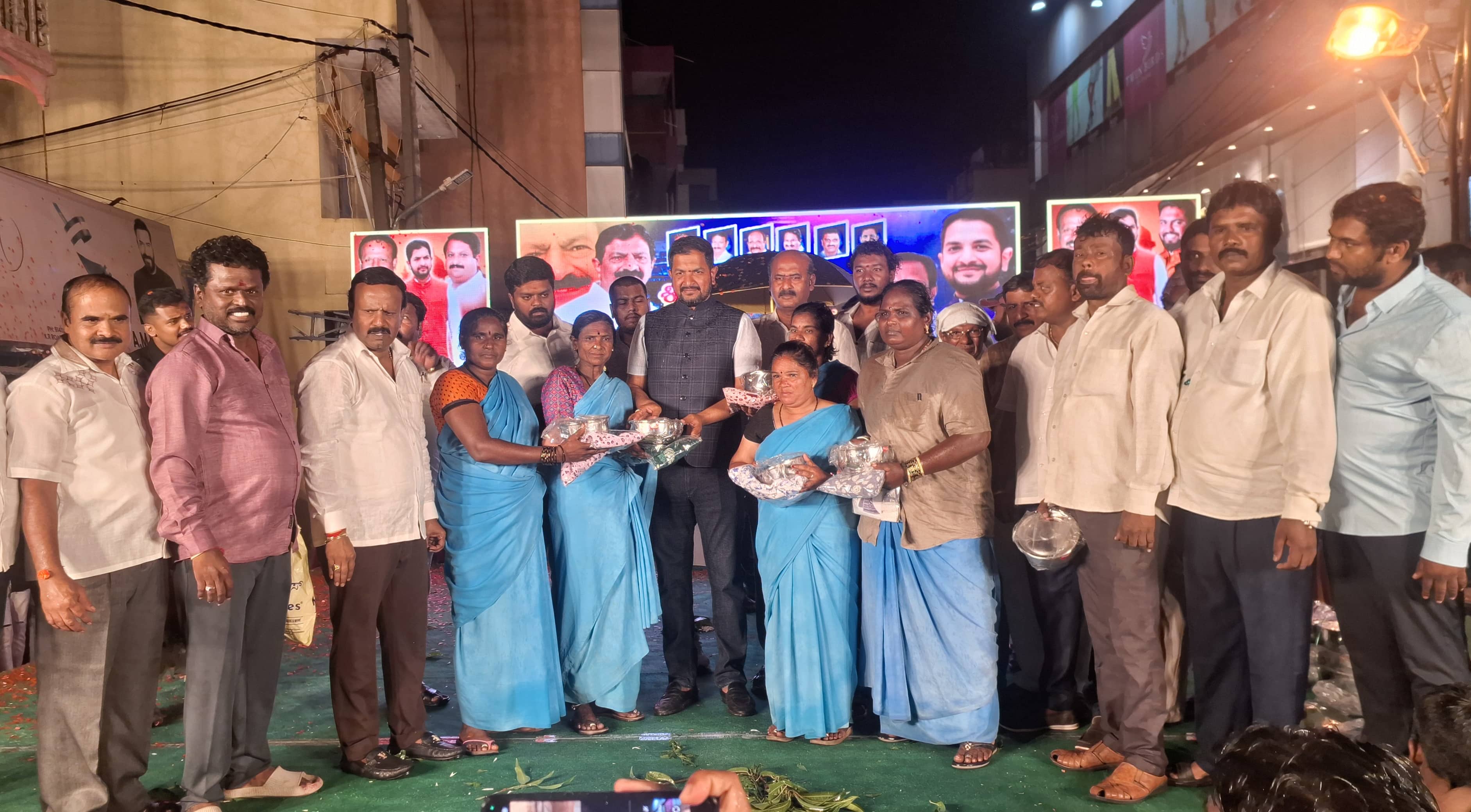 ಹೊಸಕೋಟೆಯ ಜಯ ಚಾಮರಾಜೇಂದ್ರ ವೃತ್ತದಲ್ಲಿ ಜನನಿ ಚಾರಿಟಬಲ್ ಟ್ರಸ್ಟ್ ವತಿಯಿಂದ ಆಯೋಜಿಸಿದ್ದ ನವರಾತ್ರಿ ಸಮಾರೋಪ ಸಮಾರಂಭದಲ್ಲಿ ಪೌರಕಾರ್ಮಿಕರಿಗೆ ಶಾಸಕ ಶರತ್ ಬಚ್ಚೇಗೌಡ ಉಡುಗೊರೆ ವಿತರಿಸಿದರು.
