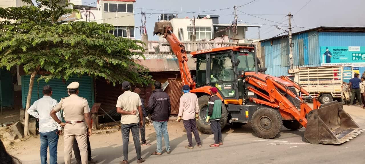 ನಂತರ ಜೆಸಿಬಿ ಮತ್ತು ಟ್ರ್ಯಾಕ್ಟರ್ ಗಳ ಸಹಾಯದಿಂದ ಸಾರ್ವಜನಿಕರ ಸಂಚಾರಕ್ಕೆ ಅಡ್ಡಿಯಾಗಿದ್ದ ಕೆಲವು ಅಂಗಡಿಗಳನ್ನು ಪೌರ ಕಾರ್ಮಿಕರ ಸಹಾಯದಿಂದ ಅಧಿಕಾರಿಗಳು ನೆಲಸಮಗೊಳಿಸಿದರು. ಅಧಿಕಾರಿಗಳ ಕ್ರಮಕ್ಕೆ ಬೆದರಿದ ಕೆಲವು ವರ್ತಕರುಗಳು ತಾವೇ ಸ್ವಯಂ ಪ್ರೇರಿತರಾಗಿ ಅಂಗಡಿ ಮುಂಭಾಗದ ಕಬ್ಬಿಣದ ಶೀಟ್ ಗಳನ್ನು ತೆರವು ಮಾಡಿಕೊಂಡರು.ಲೋಕೋಪಯೋಗಿ ಇಲಾಖೆ ಸಹಾಯಕ ಕಾರ್ಯಪಾಲಕ ಎಂಜಿನಿಯರ್ ದೇವಾನಂದ, ನಗರಸಭೆ ಎಡಿಎಲ್ ರಾಜೇಶ್, ಕಂದಾಯ ನಿರೀಕ್ಷಕ ಪುಟ್ಟಸ್ವಾಮಿ, ಪರಿಸರ ಅಭಿಯಂತರ ಅರ್ಚನ ಆರಾಧ್ಯ, ಪ್ರಶಾಂತ್ ಮತ್ತಿತರ ಅಧಿಕಾರಿಗಳು ಹಾಗೂ ನಗರಸಭೆ ಸಿಬ್ಬಂದಿ ಕಾರ್ಯಾಚರಣೆಯಲ್ಲಿ ಭಾಗವಹಿಸಿದ್ದರು.