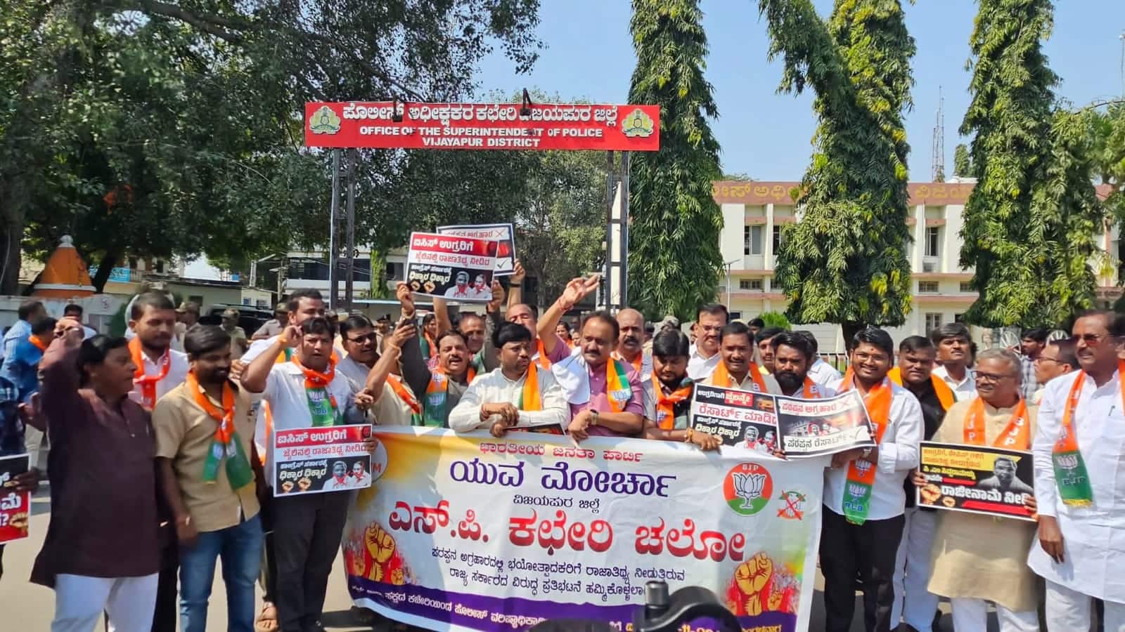 ಉಗ್ರವಾದಿ ಹಾಗೂ ಗಂಭೀರ ಸ್ವರೂಪದ ಅಪರಾಧಿಕ ಪ್ರಕರಣಗಳಲ್ಲಿ ಭಾಗಿಯಾದ ಆರೋಪಿಗಳಿಗೆ ಜೈಲಿನಲ್ಲಿ ರಾಜಾತೀಥ್ಯ ನೀಡುವುದು ಬೆಳಕಿಗೆ ಬಂದಿದ್ದು, ಕೂಡಲೇ ಮುಖ್ಯಮಂತ್ರಿ ಹಾಗೂ ಗೃಹ ಸಚಿವರು ತಮ್ಮ ಸ್ಥಾನಗಳಿಗೆ ರಾಜೀನಾಮೆ ನೀಡುವಂತೆ ಒತ್ತಾಯಿಸಿ ಬಿಜೆಪಿ ಕಾರ್ಯಕರ್ತರು ಜಿಲ್ಲಾ ಪೊಲೀಸ್ ಅಧೀಕ್ಷಕರ ಕಚೇರಿ ಬೃಹತ್ ಪ್ರತಿಭಟನಾ ರ್ಯಾಲಿ ನಡೆಸಿದರು. ಜಿಲ್ಲಾ ಪೊಲೀಸ್ ಅಧೀಕ್ಷಕರ ಮೂಲಕ ಸರ್ಕಾರಕ್ಕೆ ಮನವಿ ಸಲ್ಲಿಸಿದರು.ಬಿಜೆಪಿ ಜಿಲ್ಲಾಧ್ಯಕ್ಷ ಗುರುಲಿಂಗಪ್ಪ ಅಂಗಡಿ ನೇತೃತ್ವ ವಹಿಸಿ ಮಾತನಾಡಿ, ಉಗ್ರವಾದಿಗಳಿಗೆ ರಾಜಾತೀಥ್ಯ ನೀಡುತ್ತಿರುವುದು ಖಂಡನಾರ್ಹ, ಜೈಲುಗಳಲ್ಲಿ ಉಗ್ರವಾದಿಗಳು ರಾಜಾರೋಷವಾಗಿ ಮೊಬೈಲ್ ಬಳಕೆ ಮಾಡುತ್ತಿದ್ದಾರೆ, ಪರಪ್ಪನ ಅಗ್ರಹಾರ ಜೈಲು ಒಂದು ರೀತಿ ನೈಟ್ ಕ್ಲಬ್ ಆಗಿ, ಮನರಂಜನಾ ಕ್ಲಬ್ ಆಗಿ ಪರಿವರ್ತನೆಗೊಂಡಿದೆ. ಭಯೋತ್ಪಾದಕರು, ಐಎಸೈ ಏಜೆಂಟರು, ಮುಸ್ಲಿಂ ಮೂಲಭೂತವಾದಿಗಳು- ಇವರೆಲ್ಲರಿಗೂ ಪರಪ್ಪನ ಅಗ್ರಹಾರ ಜೈಲು ಮನರಂಜನಾ ಕ್ಲಬ್ ಆಗಿದೆ. ಇಂಥ ದೇಶದ್ರೋಹಿಗಳಿಗೆ ಟಿ.ವಿ, ಮೊಬೈಲ್ ಫೋನ್ ಮೊದಲಾದ ಸೌಲಭ್ಯಗಳನ್ನು ಕಲ್ಪಿಸುತ್ತಿರುವುದು ಅತ್ಯಂತ ನೋವಿನ ಸಂಗತಿ ಎಂದರು.ಈ ರೀತಿಯ ಘಟನೆಗಳು ನಡೆಯುತ್ತಿರುವುದು ರಾಜ್ಯ ಸರ್ಕಾರವು ಕಣ್ಮುಚ್ಚಿ ಕುಳಿತಿರುವುದು ಮೇಲ್ನೋಟಕ್ಕೆ ಗೊತ್ತಾಗುತ್ತದೆ. ಈ ಕಾಂಗ್ರೆಸ್ ಸರ್ಕಾರದ ಕುಮ್ಮಕ್ಕಿನಿಂದಲೇ ದೇಶದ್ರೋಹಿಗಳಿಗೆ ಐಷಾರಾಮಿ ವ್ಯವಸ್ಥೆಗಳನ್ನು ಪರಪ್ಪನ ಅಗ್ರಹಾರ ಜೈಲಲ್ಲಿ ಮಾಡಲಾಗಿದೆ. ಪತ್ರಿಕೆಗಳಲ್ಲಿ- ದೃಶ್ಯ ಮಾಧ್ಯಮಗಳಲ್ಲಿ ಮಾಹಿತಿ ಬಂದ ನಂತರ ಪರಪ್ಪನ ಅಗ್ರಹಾರ ಜೈಲಿನ ಮೇಲೆ ನಿನ್ನೆ ದಾಳಿ ಮಾಡಿದ್ದಾರೆ ಎಂದು ಆಕ್ರೋಶ ವ್ಯಕ್ತಪಡಿಸಿದರು.ರಾಜ್ಯದಲ್ಲಿ ಭ್ರಷ್ಟಾಚಾರ ತಾಂಡವವಾಡುತ್ತಿದ್ದು, ಅದೇರೀತಿ ಜೈಲಿನ ವ್ಯವಸ್ಥೆಯೂ ಭ್ರಷ್ಟಾಚಾರದಲ್ಲೇ ಮುಳುಗಿಹೋಗಿದೆ. ಕಾಂಗ್ರೆಸ್ ಸರ್ಕಾರದ ಕುಮ್ಮಕ್ಕು ಇಲ್ಲದಿದ್ದರೆ ಈ ರೀತಿ ಜೈಲಿನಲ್ಲಿ ವ್ಯವಸ್ಥೆ ಆಗಲು ಸಾಧ್ಯವಿಲ್ಲ. ಇಸ್ಲಾಮಿನ ಮೂಲಭೂತವಾದಿಗಳಿಗೆ ಈ ರೀತಿ ಮಾಡಿದ್ದು ದೇಶದ್ರೋಹದ ಕೆಲಸ ಎಂದು ಆರೋಪಿಸಿದರು.ಈ ರೀತಿಯ ಎಲ್ಲ ಘಟನೆಗಳಿಗೂ ಸಹ ರಾಜ್ಯದ ಗೃಹ ಸಚಿವರು ಮತ್ತು ಮುಖ್ಯಮಂತ್ರಿಗಳು ನೇರ ಹೊಣೆಗಾರರು. ಸುಮ್ಮನೆ ನಾಟಕ ಮಾಡಿ ತಿಪ್ಪೆ ಸಾರಿಸುವ ಕೆಲಸ ಮಾಡದೇ ಕೂಡಲೇ ರಾಜೀನಾಮೆ ನೀಡಿ ಹೊರಬರಬೇಕು ಎಂದು ಒತ್ತಾಯಿಸಿದರು.ಯುವ ಮೋರ್ಚಾ ಅಧ್ಯಕ್ಷ ರಾಘವೇಂದ್ರ ಕಾಪಸೆ ಮಾತನಾಡಿ, ರಾಜ್ಯದಲ್ಲಿ ಕಾನೂನು-ಸುವ್ಯವಸ್ಥೆ ಸಂಪೂರ್ಣ ಹಾಳಾಗಿದೆ. ರಾಜ್ಯದಲ್ಲಿ ಜನರ ಹಿತರಕ್ಷಣೆಗಾಗಿ ಚಿಂತಿಸಬೇಕಾದ ಮುಖ್ಯಮಂತ್ರಿಗಳು ತಮ್ಮ ಕುರ್ಚಿ ಉಳಿಸಿಕೊಳ್ಳುವ ಪ್ರಯತ್ನದಲ್ಲಿ ತೊಡಗಿದ್ದಾರೆ. ಹೀಗಾಗಿ ಕೂಡಲೇ ತಮ್ಮ ಸ್ಥಾನಕ್ಕೆ ರಾಜೀನಾಮೆ ನೀಡಬೇಕು ಎಂದು ಆಗ್ರಹಿಸಿದರು.ಬಿಜೆಪಿ ಮುಖಂಡರಾದ ಚಂದ್ರಶೇಖರ ಕವಟಗಿ, ಮಳನಗೌಡ ಪಾಟೀಲ, ಈರಣ್ಣ ರಾವೂರ, ಸಾಬಣ್ಣ ಮಾಶಿಹಾಳ, ಬಸವರಾಜ್ ಬೈಚಬಾಳ, ಭೀಮಣ್ಣ ಹದನೂರ, ಯುವ ಮೋರ್ಚಾ ಜಿಲ್ಲಾ ಪ್ರಧಾನ ಕಾರ್ಯದರ್ಶಿ ಅಶೋಕ ರಾಠೋಡ ನೇಬಗೇರಿ, ಮಹೀಂದ್ರ ನಾಯಕ, ಭರತ ಕೋಳಿ, ಸಂದೀಪ್ ಪಾಟೀಲ್, ರಾಜಕುಮಾರ್ ಸಗಾಯಿ, ಆನಂದ ಮುಚ್ಚಂಡಿ, ವಿಕಾಸ ಕಿಟ್ಟಾ, ಜಗದೀಶ್ ಸುಣಗದ, ವಿಜಯ ಜೋಶಿ, ಶ್ರೀಕಾಂತ ಶಿಂಧೆ, ಸ್ವಪ್ನಾ ಕಣಮುಚನಾಳ, ಶಿವರುದ್ರ ಬಾಗಲಕೋಟ, ಸ್ವರೂಪ ಸಪ್ತಾಳೆ, ವಿಠ್ಠಲ ಕಾಗರ, ವಿನೋದ ಪತ್ತಾರ, ಸಾಯಬಣ್ಣಾ ಮಾಶ್ಯಾಳ, ರವಿ ಬಿರಾದಾರ, ನಾಗೇಶ್ ಶ