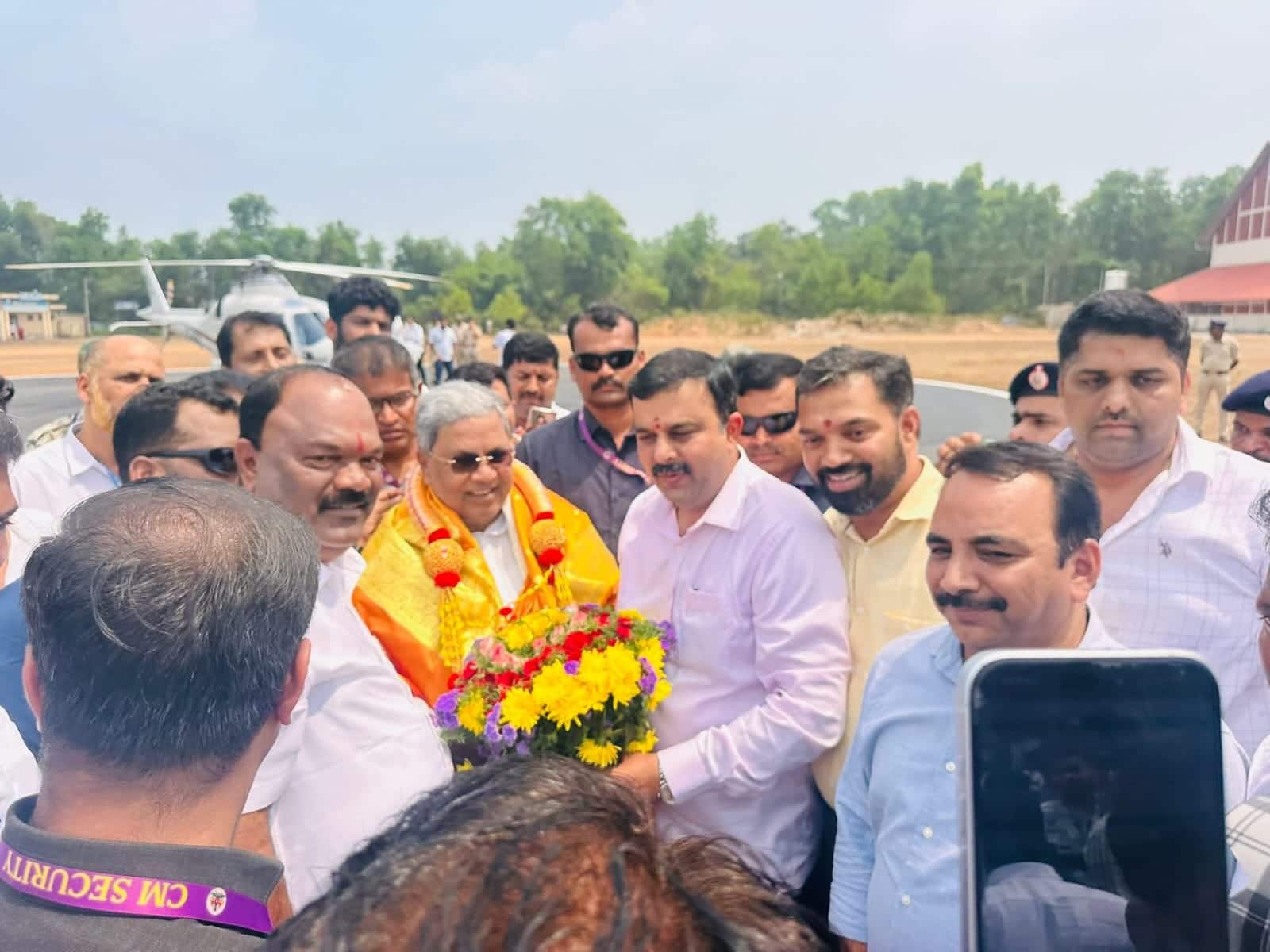 ಕಾರ್ಕಳ: ಬುಧವಾರ ಮಧ್ಯಾಹ್ನ 1.15 ಗಂಟೆಗೆ ಮುಖ್ಯಮಂತ್ರಿ ಸಿದ್ದರಾಮಯ್ಯ ಕಾರ್ಕಳಕ್ಕೆ ಹೆಲಿಕಾಪ್ಟರ್ ಮೂಲಕ ಆಗಮಿಸಿದರು. ಅವರ ಜೊತೆ ಉಡುಪಿ ಜಿಲ್ಲಾ ಉಸ್ತುವಾರಿ ಸಚಿವೆ ಲಕ್ಷ್ಮೀ ಹೆಬ್ಬಾಳ್ಕರ್ , ಸಮಾಜಕಲ್ಯಾಣ ಇಲಾಖೆ ಸಚಿವ ಮಹದೆವಪ್ಪ ಸಾಥ್ ನೀಡಿದರು. ಈ ಸಂದರ್ಭದಲ್ಲಿ ಉಡುಪಿ ಜಿಲ್ಲಾಧಿಕಾರಿ ಸ್ವರೂಪ ಟಿ.ಕೆ., ಉಡುಪಿ ಜಿಲ್ಲಾ ಪೊಲೀಸ್ ಅಧೀಕ್ಷಕ ಹರಿರಾಂ ಶಂಕರ್, ಜಿಲ್ಲಾ ಪಂಚಾಯತ್ ಸಿಇಒ ಪ್ರತಿಕ್ ಬಾಯಲ್ ಸೇರಿದಂತೆ ಹಲವು ಅಧಿಕಾರಿಗಳು ಉಪಸ್ಥಿತರಿದ್ದರು.