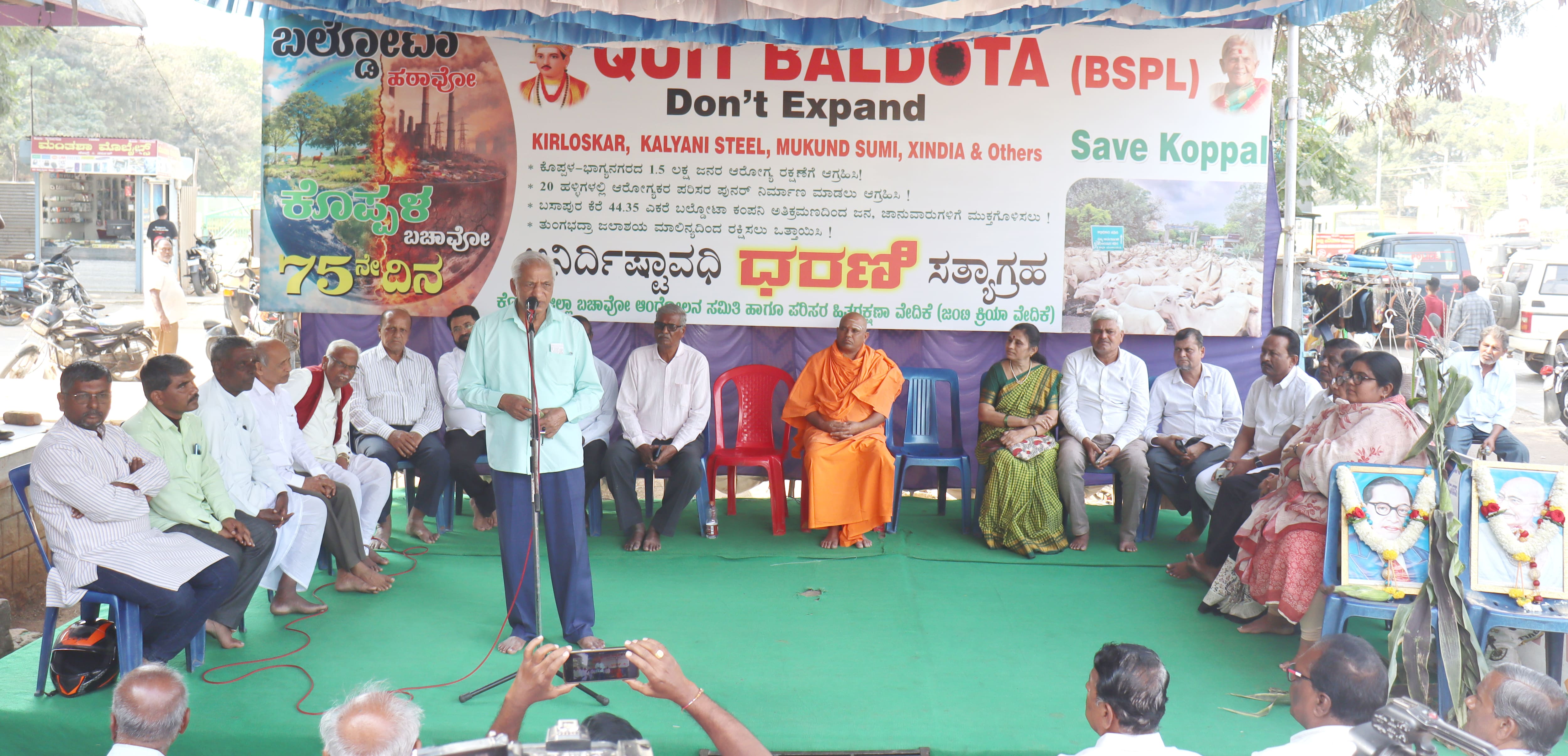ಕೊಪ್ಪಳ ಜಿಲ್ಲಾ ಬಚಾವೋ ಆಂದೋಲನ ಸಮಿತಿ ಹಾಗೂ ಪರಿಸರ ಹಿತ ರಕ್ಷಣಾ ವೇದಿಕೆಯ ಜಂಟಿ ಕ್ರಿಯಾ ವೇದಿಕೆ ಇಲ್ಲಿಯ ನಗರಸಭೆ ಎದುರಿಗೆ ಕಾರ್ಖಾನೆ ವಿಸ್ತರಣೆ ವಿರೋಧಿಸಿ ಹಮ್ಮಿಕೊಂಡಿರುವ ಅನಿರ್ದಿಷ್ಟಾವಧಿ ಧರಣಿ ಸತ್ಯಾಗ್ರಹದ ೭೫ನೇ ದಿನದ ಹೋರಾಟದಲ್ಲಿ ಭಾಗವಹಿಸಿ ಮಾತನಾಡಿದರು. ನಾನು ಖುದ್ದು ಭೇಟಿಯಾಗಿ ಸಿಎಂ ಸಿದ್ದರಾಮಯ್ಯ ಅವರ ಮನವೊಲಿಸುತ್ತೇನೆ ಎಂದರು.ಇದಕ್ಕೂ ಮೊದಲು ಗಿಣಿಗೇರಿ, ಅಲ್ಲಾನಗರ, ಹಿರೇಬಗನಾಳ, ಹಾಲವರ್ತಿ ಮುಂತಾದ ಗ್ರಾಮಗಳಿಗೆ ಭೇಟಿಕೊಟ್ಟು ರೈತರು, ವಿದ್ಯಾರ್ಥಿಗಳು ಹಾಗೂ ಗೃಹಿಣಿಯರೊಂದಿಗೆ ಸಂವಾದ ನಡೆಸಿದರು.