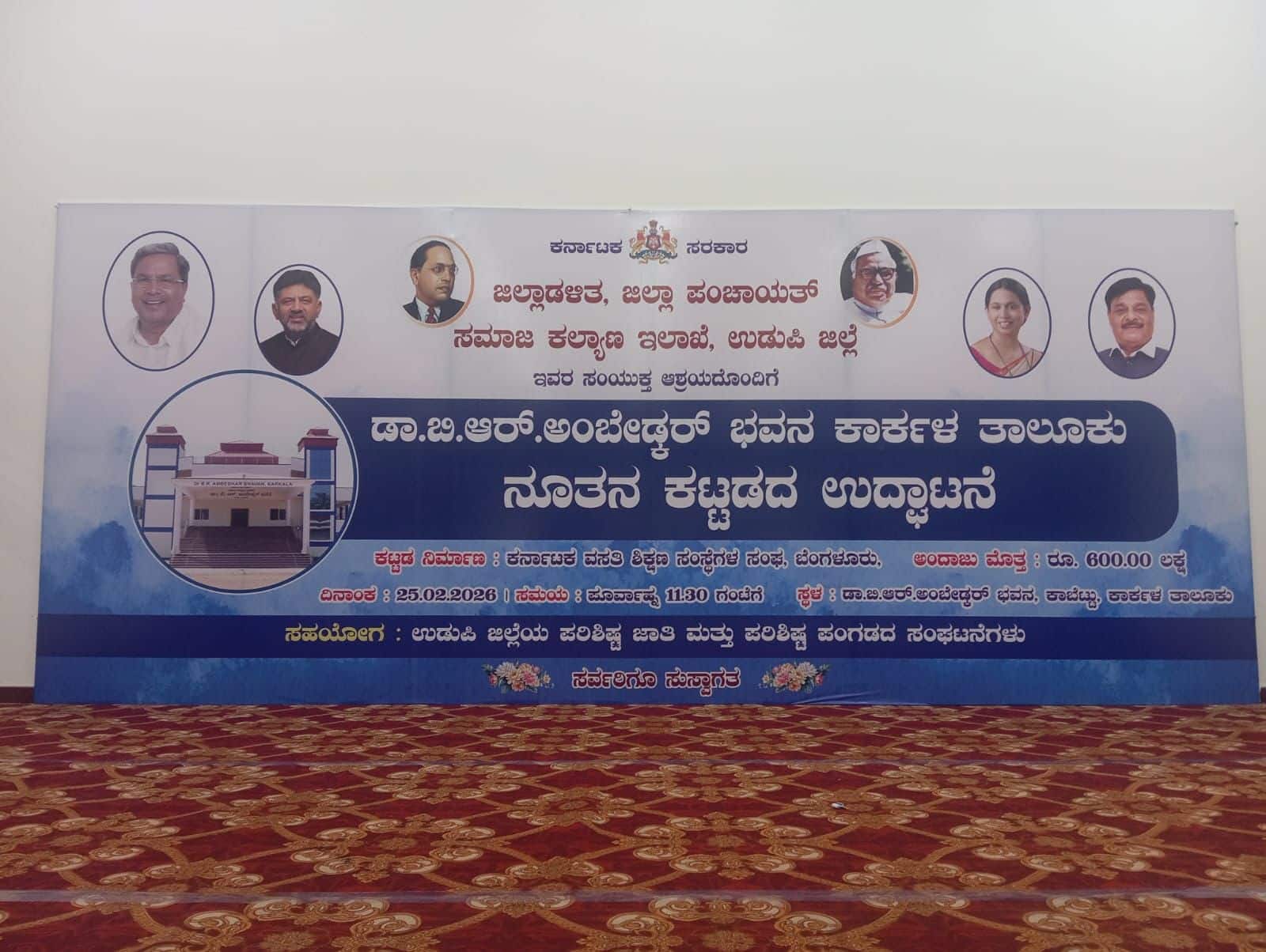 ಕಾರ್ಕಳ ಕಾಬೆಟ್ಟು ಪ್ರದೇಶದಲ್ಲಿ ಸುಮಾರು 6 ಕೋಟಿ ರೂಪಾಯಿ ವೆಚ್ಚದಲ್ಲಿ ನಿರ್ಮಾಣಗೊಂಡಿರುವ ಡಾ. ಬಿ.ಆರ್. ಅಂಬೇಡ್ಕರ್ ಭವನ ಉದ್ಘಾಟನಾ ಕಾರ್ಯಕ್ರಮದ ಮುನ್ನ ಹಾಕಲಾಗಿದ್ದ ಸರಕಾರಿ ಬ್ಯಾನರ್ನಲ್ಲಿ ಸ್ಥಳೀಯ ಶಾಸಕ ವಿ ಸುನೀಲ್ ಕುಮಾರ್ ಅವರ ಫೋಟೋ ಕಾಣಿಸದಿರುವುದಕ್ಕೆ ಆಕ್ಷೇಪ ವ್ಯಕ್ತವಾಗಿತ್ತು. ಭವನಕ್ಕೆ ಅನುದಾನ ಒದಗಿಸಿದ್ದ ಅಂದಿನ ಸಚಿವ ಕೋಟ ಶ್ರಿನಿವಾಸ ಪೂಜಾರಿ ಹಾಗೂ ಶಾಸಕರ ಚಿತ್ರಗಳಿಲ್ಲದೆ ಬ್ಯಾನರ್ ಹಾಕಲಾಗಿದೆ ಎಂದು ಟೀಕೆ ಕೇಳಿಬಂದಿತ್ತು. ಘಟನೆ ಫೆ.24ರ ರಾತ್ರಿ ನಡೆದಿದ್ದು, ಮಾಹಿತಿ ತಿಳಿದ ಕೂಡಲೇ ಜಿಲ್ಲಾಡಳಿತ ಬ್ಯಾನರ್ ಬದಲಿಸಿದೆ. ಫೆ.25ರಂದು ಸಿಎಂ ಆಗಮಿಸಿದ ಸಂದರ್ಭದಲ್ಲಿ ಬ್ಯಾನರ್ನಲ್ಲಿ ಶಾಸಕ ಹಾಗೂ ಸಂಸದರ ಚಿತ್ರಗಳನ್ನು ಸೇರಿಸಲಾಗಿತ್ತು.ಇದರ ನಡುವೆಯೇ ಉದ್ಘಾಟನಾ ವೇದಿಕೆಯಲ್ಲಿ ಕೇವಲ ಕಾಂಗ್ರೆಸ್ ನಾಯಕರ ಭಾವಚಿತ್ರಗಳನ್ನು ಪ್ರದರ್ಶಿಸಲಾಗಿದೆ ಎಂದು ಬಿಜೆಪಿ ಆರೋಪಿಸಿ, ಇದು ಸರ್ಕಾರಿ ಕಾರ್ಯಕ್ರಮದ ಶಿಷ್ಟಾಚಾರಕ್ಕೆ ವಿರುದ್ಧ ಎಂದು ಖಂಡಿಸಿತ್ತು. ಅಗತ್ಯವಿದ್ದರೆ ಪ್ರತಿಭಟನೆ ನಡೆಸುವುದಾಗಿ ಹಾಗೂ ಜಿಲ್ಲಾಡಳಿತಕ್ಕೆ ಸಾಮಾಜಿಕ ಜಾಲತಾಣಗಳ ಮೂಲಕ ಎಚ್ಚರಿಕೆ ನೀಡಿತ್ತು. ಸದ್ಯ ಘಟನೆ ರಾಜಕೀಯ ವಲಯದಲ್ಲಿ ಚರ್ಚೆಗೆ ಕಾರಣವಾಗಿದೆ.ಕಾರ್ಕಳದಲ್ಲಿ ಸಿಎಂ ಭೇಟಿ ಬ್ಯಾನರ್ ವಿವಾದ..!