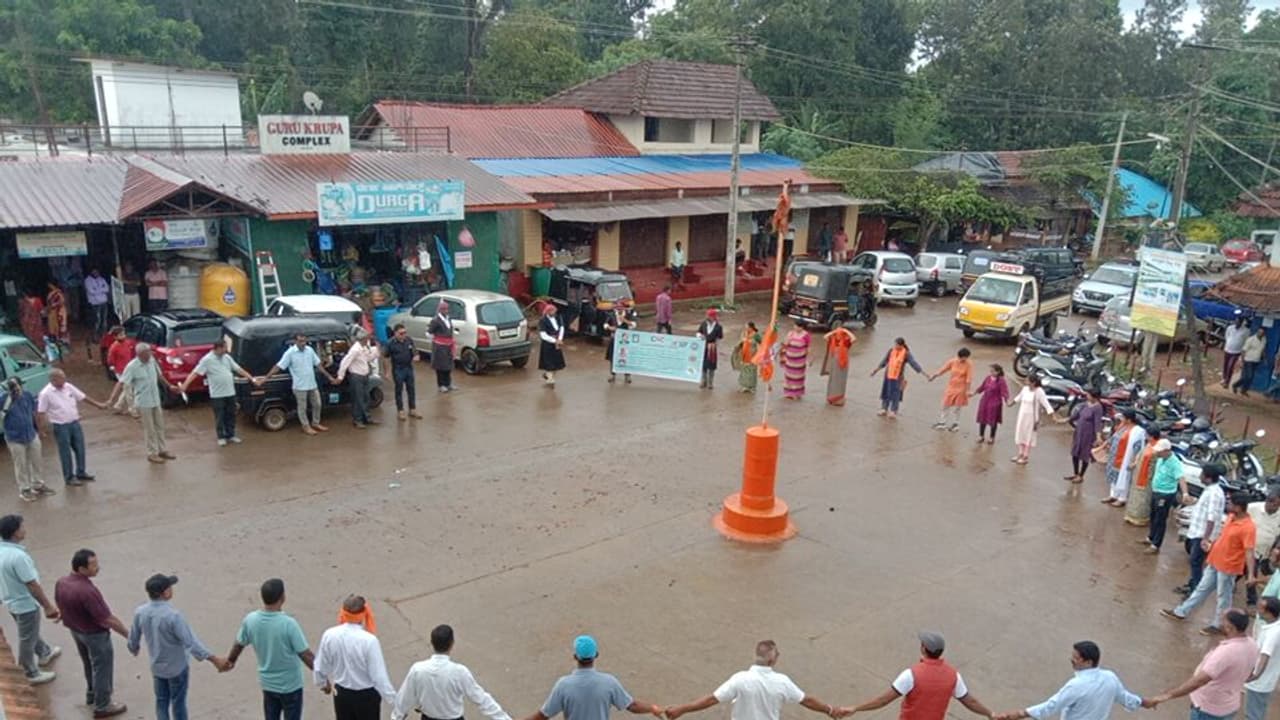 ಸಿದ್ದಾಪುರದ ಕಾಫಿ ತೋಟದ ಬೃಹತ್ ಭೂಪರಿವರ್ತನೆ ಸೇರಿದಂತೆ ಕೊಡಗು ಜಿಲ್ಲೆಯಲ್ಲಿ ನಡೆಯುತ್ತಿರುವ ಭೂಪರಿವರ್ತನೆಗಳ ವಿರುದ್ಧ ಸಿಎನ್ಸಿ ಸಂಘಟನೆ ವತಿಯಿಂದ ಬಾಳೆಲೆಯಲ್ಲಿ ಮಂಗಳವಾರ ಮಾನವ ಸರಪಳಿ ಜನಜಾಗೃತಿ ಕಾರ್ಯಕ್ರಮ ನಡೆಯಿತು.