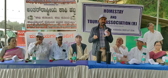 ಇಲ್ಲಿನ ತಾಲೂಕು ಕಾಫಿ ಬೆಳೆಗಾರರ ಸಂಘ ಹಾಗೂ ತಾಲೂಕು ಹೋಂ ಸ್ಟೇ ಅಸೋಸಿಯೇಷನ್ ವತಿಯಿಂದ ಪಟ್ಟಣದ ವಿವೇಕಾನಂದ ಸರ್ಕಲ್ ಬಳಿ, ಅಂತಾರಾಷ್ಟ್ರೀಯ ಕಾಫಿ ದಿನದ ಅಂಗವಾಗಿ ‘ಕಾಫಿ ಕುಡಿಯಿರಿ, ಕಾಫಿ ಕುಡಿಸಿರಿ, ಕಾಫಿಯೊಂದಿಗೆ ದೈನಂದಿನ ಜೀವನ ಪ್ರಾರಂಭಿಸಿ’ ಎಂಬ ಹೆಸರಿನಲ್ಲಿ ಕಾಫಿ ಹಬ್ಬ ಕಾರ್ಯಕ್ರಮ ನಡೆಯಿತು.ಕಾರ್ಯಕ್ರಮವನ್ನು ಉದ್ಘಾಟಿಸಿ ಶಾಸಕ ಡಾ. ಮಂತರ್ ಗೌಡ ಮಾತನಾಡಿ ಅವರು, ಹವಾಮಾನ ವೈಪರೀತ್ಯ, ಕಾರ್ಮಿಕರ ಸಮಸ್ಯೆ, ಕಾನೂನಿನ ಚೌಕಟ್ಟು, ಮಾರುಕಟ್ಟೆ ಸಮಸ್ಯೆಗಳ ನಡುವೆಯೂ ಬೆಳೆಗಾರರು ಕಾಫಿ ಗಿಡ, ತೋಟ, ಮಣ್ಣನ್ನು ಉಳಿಸಿಕೊಂಡು ಬರುತ್ತಿದ್ದಾರೆ. ಈ ಶ್ರಮಕ್ಕೆ ನಾವೆಲ್ಲರೂ ಚಿರಋಣಿಯಾಗಿರಬೇಕು ಎಂದರು.ನಮ್ಮ ರಾಜ್ಯ, ದೇಶದಲ್ಲಿ ಕಾಫಿಯು ಶೇ. 30ರಷ್ಟು ಮಾತ್ರ ಬಳಕೆಯಾಗುತ್ತಿದೆ. ಉಳಿದ ಶೇ. 70ರಷ್ಟು ಅಂತಾರಾಷ್ಟ್ರೀಯ ಮಾರುಕಟ್ಟೆಗೆ ಹೋಗುತ್ತಿದೆ. ಉತ್ತರ ಭಾರತದಲ್ಲಿ ಟೀ ಹೆಚ್ಚಾಗಿ ಬಳಕೆಯಾಗುತ್ತಿದೆ. ಕಾಫಿಯನ್ನು ಕುಡಿಯುವವರ ಸಂಖ್ಯೆ ಹೆಚ್ಚಿಸಬೇಕು. ಇದಕ್ಕೆ ನಾವೇ ಪ್ರೋತ್ಸಾಹ ನೀಡಬೇಕು ಎಂದು ಕರೆ ನೀಡಿದರು. ಕಾರ್ಯಕ್ರಮದಲ್ಲಿ ಭಾಗಿಯಾಗಿದ್ದ ಕಾಫಿ ಬೆಳೆಗಾರ ಜಿ.ಎಸ್. ಪ್ರಭುದೇವ್ ಮಾತನಾಡಿ, ಗುಣಮಟ್ಟದ ಕಾಫಿ ಉತ್ಪಾದನೆಗೆ ಬೆಳೆಗಾರರು ಮುಂದಾಗಬೇಕು ಎಂದರು. ನಾಡಪ್ರಭು ಕೆಂಪೇಗೌಡ ಪ್ರಶಸ್ತಿ ಪುರಸ್ಕೃತ, ತಾಲೂಕು ಒಕ್ಕಲಿಗರ ಸಂಘದ ಅಧ್ಯಕ್ಷ ಎ.ಆರ್. ಮುತ್ತಣ್ಣ ಅವರನ್ನು ಈ ಸಂದರ್ಭ ಸನ್ಮಾನಿಸಲಾಯಿತು.ಕಾರ್ಯಕ್ರಮದ ಅಧ್ಯಕ್ಷತೆಯನ್ನು ಕಾಫಿ ಬೆಳೆಗಾರರ ಸಂಘದ ಅಧ್ಯಕ್ಷ ಬಿ.ಎಂ. ಲವ ವಹಿಸಿದ್ದರು. ವೇದಿಕೆಯಲ್ಲಿ ವಿಧಾನ ಪರಿಷತ್ ಮಾಜಿ ಸದಸ್ಯ ಎಸ್.ಜಿ. ಮೇದಪ್ಪ, ಕಾಫಿ ಬೆಳೆಗಾರರಾದ ಹಾನಗಲ್ಲು ಗ್ರಾಮದ ಬಿ.ಎಸ್. ಸೀತಾರಾಂ, ಸುಳಿಮಳ್ತೆ ಗ್ರಾಮದ ಎಸ್.ಎಲ್.ಪುಟ್ಟರಾಜು, ಕಿರಗಂದೂರು ಗ್ರಾಮದ ವಿಮಲ ಕೃಷ್ಣಕಾಂತ್, ಕರ್ಕಳ್ಳಿ ಗ್ರಾಮದ ನಿರ್ಮಲ ಪ್ರಕಾಶ್, ತಣ್ಣೀರುಹಳ್ಳ ಗ್ರಾಮದ ರಾಣಿ ನರೇಂದ್ರ ಉಪಸ್ಥಿತರಿದ್ದರು.ಹೋಂ ಸ್ಟೇ ಅಸೋಸಿಯೇಷನ್ ಅಧ್ಯಕ್ಷ ಸಿ.ಕೆ. ರೋಹಿತ್, ಸಂಘದ ಉಪಾಧ್ಯಕ್ಷ ಗೌಡಳ್ಳಿ ಪ್ರಸಿ, ಕೆ.ಜಿ.ಎಫ್. ನಿರ್ದೇಶಕ ಸಿ.ಕೆ. ಮಲ್ಲಪ್ಪ, ಸಂಘದ ಕಾರ್ಯದರ್ಶಿ ಯಡೂರು ಮನೋಹರ್, ನಿರ್ದೇಶಕ ಎಸ್.ಎಂ. ಕೃಷ್ಣ, ತಿಲೋತ್ತಮೆ, ಆಶಾ ಯೋಗೇಂದ್ರ ಇದ್ದರು.