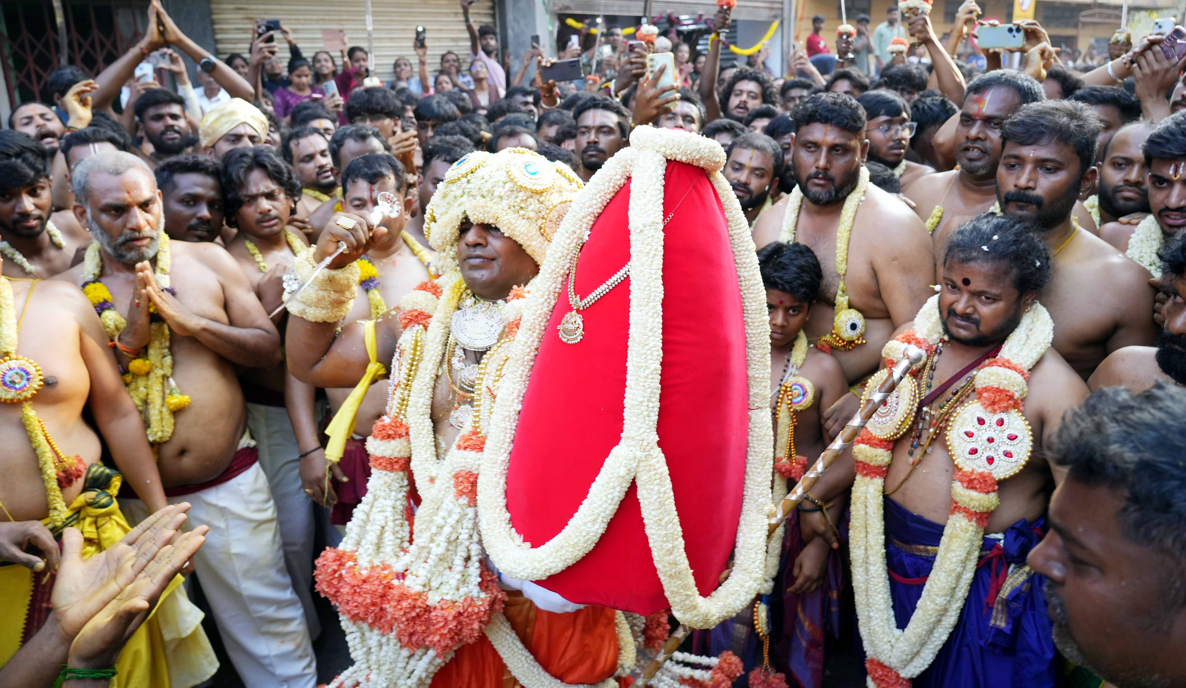 ಅರ್ಚಕ ಜ್ಞಾನೇಂದ್ರ ಅವರು ಹಸಿ ಕರಗ ಹೊತ್ತು ಸಾಗಿದರು. ಈ ವೇಳೆ ನೂರಾರು ಸಂಖ್ಯೆಯಲ್ಲಿ ಭಕ್ತರು ಸೇರಿದ್ದರು.