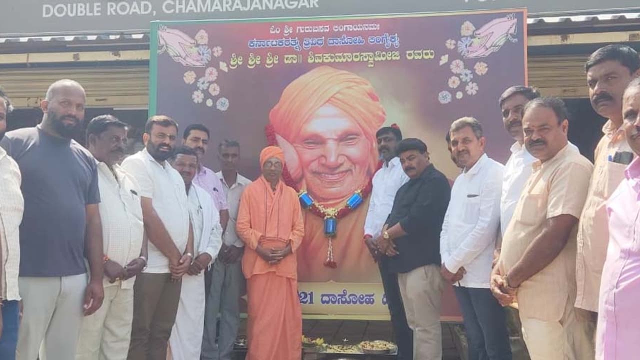 ಚಾಮರಾಜನಗರತ್ರಿವಿಧ ದಾಸೋಹಿ, ದೇಶ ಕಂಡ ಆಧುನಿಕ ಸಂತ, ಸಿದ್ಧಗಂಗೆಯ ಪುಣ್ಯ ಪುರುಷ ಡಾ. ಶಿವಕುಮಾರ ಸ್ವಾಮೀಜಿಯವರ ೫ನೇ ಪುಣ್ಯ ಸ್ಮರಣೆಯನ್ನು ದಾಸೋಹ ದಿನವನ್ನಾಗಿ ಜಿಲ್ಲಾ ಕೇಂದ್ರದ ವಿವಿಧೆಡೆ ಶ್ರದ್ಧಾ ಭಕ್ತಿಯೊಂದಿಗೆ ಆಚರಿಸಿ, ಆನ್ನದಾಸೋಹ ಮಾಡಲಾಯಿತು. ನಗರದ ಜಿಲ್ಲಾಡಳಿತ ಭವನದ ಬಳಿ ಇರುವ, ಅಧ್ಯಕ್ಷ ಹೋಟೆಲ್ ಮುಂಭಾಗ ಸೇರಿದಂತೆ ವಿವಿಧೆಡೆ ಡಾ. ಶಿವಕುಮಾರ ಸ್ವಾಮೀಜಿಯವರ ಭಾವಚಿತ್ರ ಇಟ್ಟು ಪೂಜೆ ಸಲ್ಲಿಸಿ, ಸಾರ್ವಜನಿಕರಿಗೆ ಅನ್ನದಾಸೋಹ ಮಾಡಲಾಯಿತು. ಗೌಡಹಳ್ಳಿ ಮಠದ ಮರಿ ತೋಂಟದಾರ್ಯ ಸ್ವಾಮೀಜಿ ಮಾತನಾಡಿ ಈ ನಾಡು ಕಂಡ ಪುಣ್ಯ ಪುರುಷರಲ್ಲಿ ಡಾ. ಶಿವಕುಮಾರ ಸ್ವಾಮೀಜಿ ಒಬ್ಬರು, ಸಹಸ್ರಾರು ವಿದ್ಯಾರ್ಥಿಗಳಿಗೆ ಅನ್ನ, ವಿದ್ಯೆ ಆಶ್ರಯ ನೀಡಿ ಅವರ ಬದುಕನ್ನು ಬೆಳಗಿದ ಪುಣ್ಯಾತ್ಮರು ಎಂದರು.