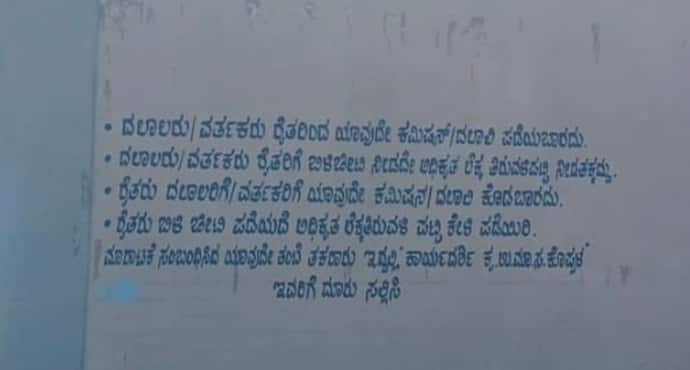 ಕಾನೂನು ಕ್ರಮಕಾನೂನು ಪ್ರಕಾರ ರೈತರಿಂದೆ ಕಮಿಷನ್ ಪಡೆಯುವುದಕ್ಕೆ ಅವಕಾಶವೇ ಇಲ್ಲ. ಹೀಗಾಗಿ, ನಾವು ಈಗಾಗಲೇ ನೋಟಿಸ್ ಜಾರಿ ಮಾಡಿದ್ದು, ಸಭೆ ಕರೆದು, ಅಂತಿಮ ಎಚ್ಚರಿಕೆ ನೀಡಿ, ಕಾನೂನು ರೀತಿ ಕ್ರಮವಹಿಸುತ್ತೇವೆ ಎಂದು