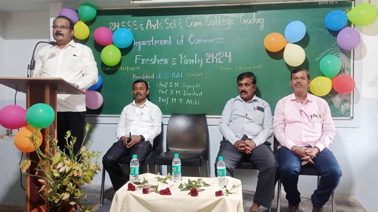 ಅವರು ಕಾಲೇಜಿನ ವಾಣಿಜ್ಯ ವಿಭಾಗದಿಂದ ಏರ್ಪಡಿಸಲಾಗಿದ್ದ ಬಿ.ಕಾಂ. ಪ್ರಥಮ ವರ್ಷದ ವಿದ್ಯಾರ್ಥಿಗಳ ಸ್ವಾಗತ ಕಾರ್ಯಕ್ರಮ ಉದ್ಘಾಟಿಸಿ ಮಾತನಾಡಿದರು. ಮುಖ್ಯ ಅತಿಥಿ ಸ್ಥಾನ ವಹಿಸಿದ್ದ ಉಪಪ್ರಾಚಾರ್ಯ ಎಸ್.ಜಿ. ಉಳಿಗೇರ ಮಾತನಾಡಿ, ಯುವಕರೇ ದೇಶದ ಸಂಪತ್ತಾಗಿರುವುದರಿಂದ ವಿಶೇಷವಾದ ಔದ್ಯೋಗಿಕ ಕೌಶಲ್ಯ ಬೆಳೆಸಿಕೊಂಡು ಭವಿಷ್ಯದಲ್ಲಿ ಶ್ರೇಷ್ಠ ಉದ್ಯಮಿಗಳಾಗಿ ಹೊರ ಹೊಮ್ಮಲಿ ಎಂದರು.ವಾಣಿಜ್ಯ ವಿಭಾಗದ ಮುಖ್ಯಸ್ಥ ಎಸ್.ಎನ್. ಶ್ಯಾಗೋಟಿ ಮಾತನಾಡಿ, ವಿದ್ಯಾರ್ಥಿ ಜೀವನ ಬಹಳ ಮಹತ್ವದ್ದಾಗಿದ್ದು, ಅಧ್ಯಯನಶೀಲತೆ, ಕರ್ತವ್ಯ ಪ್ರಜ್ಞೆ ಮತ್ತು ನೈತಿಕ ಮೌಲ್ಯ ಬೆಳೆಸಿಕೊಂಡು ವಿಶೇಷ ಸಾಧನೆಗೈದು ಮಹಾವಿದ್ಯಾಲಯಕ್ಕೆ ಕೀರ್ತಿ ತನ್ನಿ ಎಂದರು.