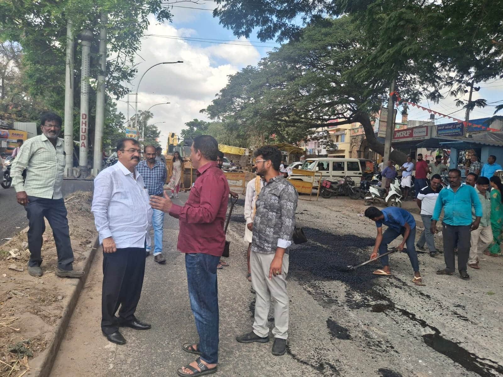 -21HRR.02:ಹರಿಹರದ ಶಿವಮೊಗ್ಗ ರಸ್ತೆಯಲ್ಲಿ ನಡೆಯುತ್ತಿರುವ ಟಾರ್ ರಸ್ತೆ ಕಾಮಗಾರಿಯನ್ನು ಶಾಸಕ ಬಿ.ಪಿ ಹರೀಶ್