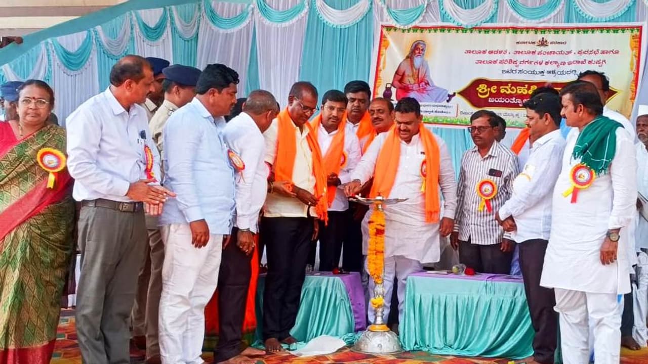 ಪಟ್ಟಣದ ತಾಲೂಕು ಕ್ರೀಡಾಂಗಣದಲ್ಲಿ ತಾಲೂಕಾಡಳಿತ, ತಾಪಂ, ಪುರಸಭೆ ಹಾಗೂ ಪರಿಶಿಷ್ಟ ವರ್ಗಗಳ ಕಲ್ಯಾಣ ಇಲಾಖೆ ಸಹಯೋಗದಲ್ಲಿ ನಡೆದ ಶ್ರೀಮಹರ್ಷಿ ವಾಲ್ಮೀಕಿ ಜಯಂತ್ಯುತ್ಸವ ಕಾರ್ಯಕ್ರಮದಲ್ಲಿ ಭಾಗವಹಿಸಿ ಮಾತನಾಡಿದರು.ಮಹರ್ಷಿಗಳನ್ನು ಅಧ್ಯಯನ ಮಾಡುವ ಮೂಲಕ ನೈಜ ವ್ಯಕ್ತಿತ್ವ ಪ್ರಚಾರಪಡಿಸುವ ಅಗತ್ಯವಿದೆ, ಅವರು ಮಹಾತತ್ವಜ್ಞಾನಿಯಾಗಿದ್ದರು ಇತಿಹಾಸ ತಿಳಿದುಕೊಳ್ಳುವ ಮೂಲಕ ಅವರ ತತ್ವಾದರ್ಶ ಅಳವಡಿಸಿಕೊಂಡು ಸಮಾಜದಲ್ಲಿ ಉತ್ತಮ ವ್ಯಕ್ತಿಯಾಗಿ ಜೀವನ ಸಾಗಿಸಬೇಕು ವಾಲ್ಮೀಕಿ ಸಮುದಾಯದವರು ತಮ್ಮ ಮಕ್ಕಳಿಗೆ ಉನ್ನತ ಶಿಕ್ಷಣ ಕೊಡಿಸುವ ಮೂಲಕ ರಾಜಕೀಯವಾಗಿ ಆರ್ಥಿಕವಾಗಿ ಅಭಿವೃದ್ಧಿ ಹೊಂದಬೇಕು ಎಂದರು.