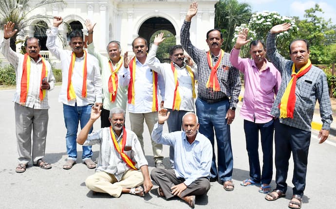 ಮೈಸೂರು ಕನ್ನಡ ವೇದಿಕೆಯವರು ನಗರದ ಹಳೆ ಜಿಲ್ಲಾಧಿಕಾರಿ ಕಚೇರಿ ಮುಂಭಾಗ ತಿಭಟಿಸಿ