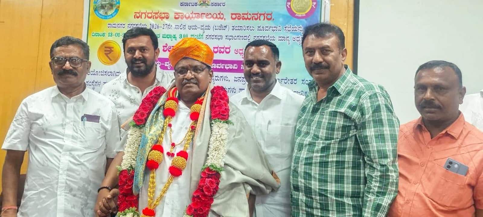 21ಕೆಆರ್ ಎಂಎನ್ 4.ಜೆಪಿಜಿರಾಮನಗರ ನಗರಸಭೆ ಸಭಾಂಗಣದಲ್ಲಿ ಅಧ್ಯಕ್ಷರಾಗಿ ಒಂದು ವರ್ಷ ಪೂರೈಸಿದ ಹಿನ್ನಲೆಯಲ್ಲಿ ಕೆ.ಶೇಷಾದ್ರಿ ಅವರನ್ನು ಮುಖಂಡರು ಅಭಿನಂದಿಸಿದರು.