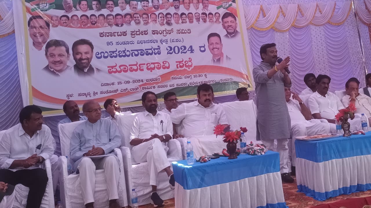 ತಾಲೂಕಿನ ಕೃಷ್ಣಾನಗರದಲ್ಲಿ ಬುಧವಾರ ಕರ್ನಾಟಕ ಪ್ರದೇಶ ಕಾಂಗ್ರೆಸ್ ಸಮಿತಿಯಿಂದ ಮುಂಬರುವ ಸಂಡೂರು ವಿಧಾನಸಭಾ ಕ್ಷೇತ್ರದ ಉಪ ಚುನಾವಣೆಯ ಹಿನ್ನೆಲೆಯಲ್ಲಿ ಹಮ್ಮಿಕೊಂಡಿದ್ದ ಪೂರ್ವಭಾವಿ ಸಭೆಯಲ್ಲಿ ಅವರು ಮಾತನಾಡಿದರು.