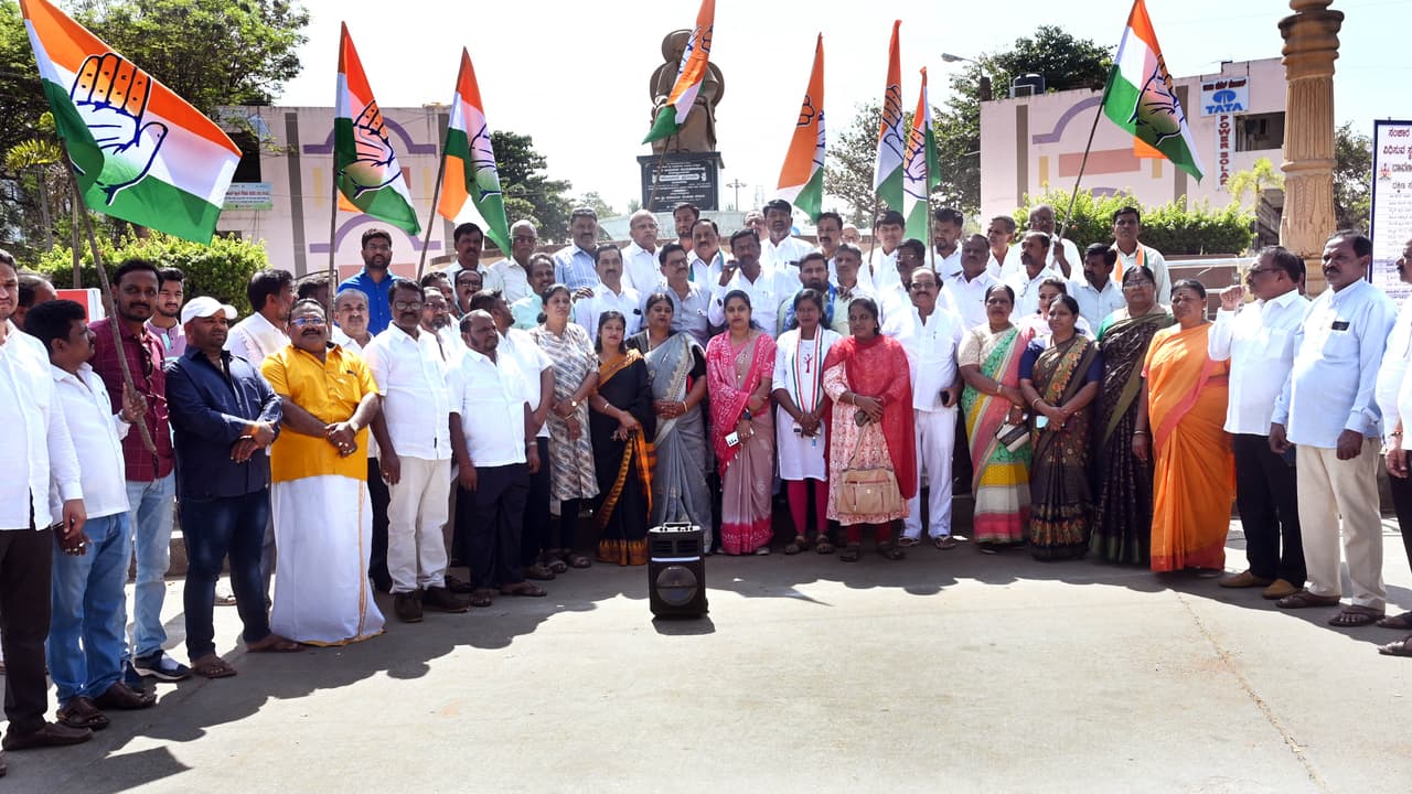 ಭಾರತ್ ಜೋಡೋ ನ್ಯಾಯ ಯಾತ್ರೆ ಕೈಗೊಂಡಿರುವ ಎಐಸಿಸಿ ನಾಯಕ ರಾಹುಲ್ ಗಾಂಧಿ ಯಾತ್ರೆಗೆ ಅಸ್ಸಾಂನಲ್ಲಿ ಬಿಜೆಪಿ ಕಾರ್ಯಕರ್ತರು ತಡೆಯೊಡ್ಡುತ್ತಿರುವುದನ್ನು ಖಂಡಿಸಿ ಕಾಂಗ್ರೆಸ್ ಪಕ್ಷದ ಜಿಲ್ಲಾ ಘಟಕ ನಗರದಲ್ಲಿ ಮಂಗಳವಾರ ಪ್ರತಿಭಟಿಸಿತು.ನಗರದ ಶ್ರೀ ಜಯದೇವ ವೃತ್ತದಲ್ಲಿ ಕಾಂಗ್ರೆಸ್ ಜಿಲ್ಲಾಧ್ಯಕ್ಷ ಎಚ್.ಬಿ.ಮಂಜಪ್ಪ, ಪ್ರಧಾನ ಕಾರ್ಯದರ್ಶಿ ದಿನೇಶ ಕೆ.ಶೆಟ್ಟಿ ಇತರರ ನೇತೃತ್ವದಲ್ಲಿ ಪ್ರತಿಭಟಿಸಿದ ಕಾಂಗ್ರೆಸ್ ಮುಖಂಡರು, ಕಾರ್ಯಕರ್ತರು ಅಸ್ಸಾಂ ರಾಜ್ಯದಲ್ಲಿ ಅಲ್ಲಿನ ಬಿಜೆಪಿ ಕಾರ್ಯಕರ್ತರ ವಿರುದ್ಧ ಘೋಷಣೆಗಳನ್ನು ಕೂಗುವ ಮೂಲಕ ಆಕ್ರೋಶ ಹೊರ ಹಾಕಿದರು.
