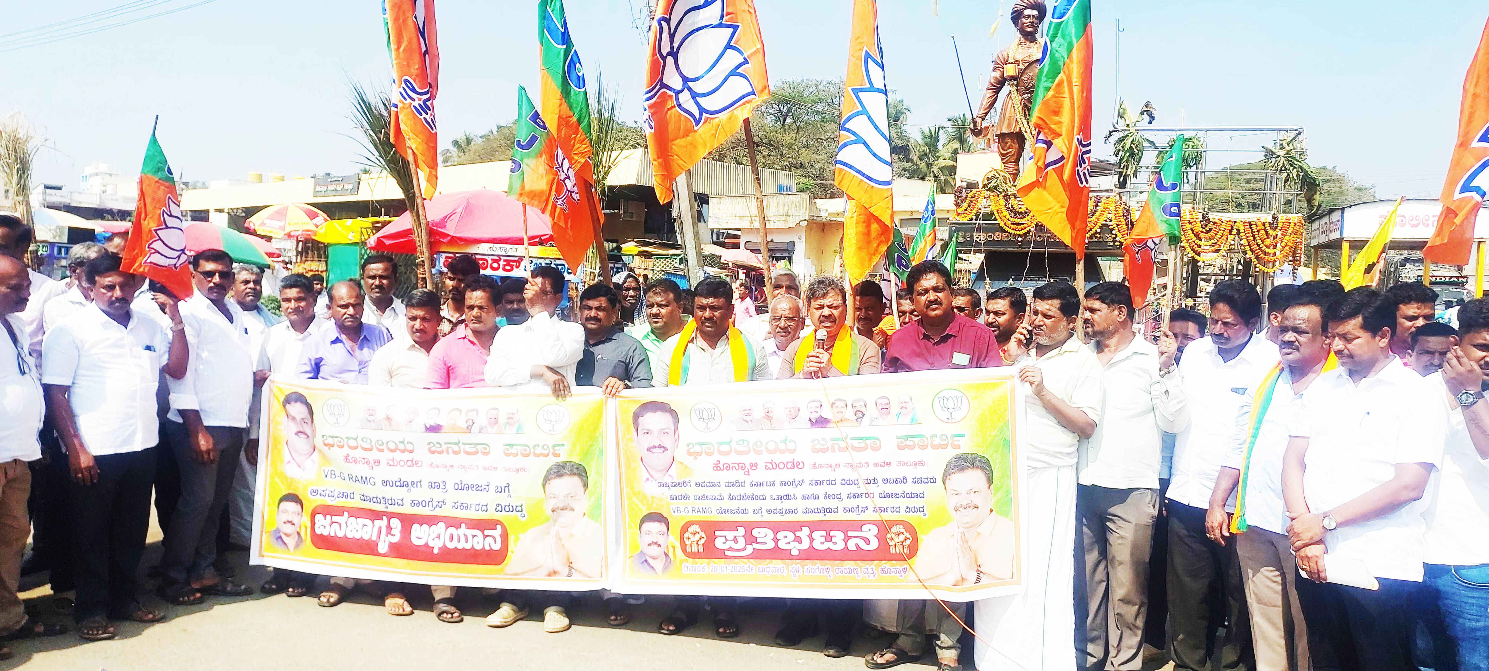 ಪ್ರತಿಭಟನಾ ಮೆರವಣಿಗೆ ಮೂಲಕ ತಾಲೂಕು ಕಚೇರಿಗೆ ತೆರಳಿ ತಹಸೀಲ್ದಾರ್ಗೆ ಮನವಿ ಸಲ್ಲಿಸಲಾಯಿತು. ಬಿಜೆಪಿ ಮುಖಂಡರಾದ ಕೆ.ಪಿ. ಕುಬೇಂದ್ರಪ್ಪ,ಮಂಜುನಾಥ ನೆಲಹೊನ್ನೆ, ನ್ಯಾಮತಿ ರವಿಕುಮಾರ್, ತಾಲೂಕು ಅಧ್ಯಕ್ಷ ನಾಗರಾಜ್, ಮಾಜಿ ಅಧ್ಯಕ್ಷ ಜೆ.ಕೆ ಸುರೇಶ್, ಮಾರುತಿ ನಾಯ್ಕ, ಕುಮಾರ ಸ್ವಾಮಿ, ಮಂಜು ಇಂಚರ, ಬಡವಾಣೆ ರಂಗಪ್ಪ,ಪೇಟೆ ಪ್ರಶಾಂತ್, ರಘು, ಬೀರಪ್ಪ, ಕೆ.ವಿ. ಶ್ರೀಧರ, ಕೋಳಿ ಸತೀಶ್, ಹಿರೇಮಠದ ರಾಜು ಸೇರಿದಂತೆ ನೂರಾರು ಜನ ಮುಖಂಡರು, ಕಾರ್ಯಕರ್ತರು ಇದ್ದರು.- - -