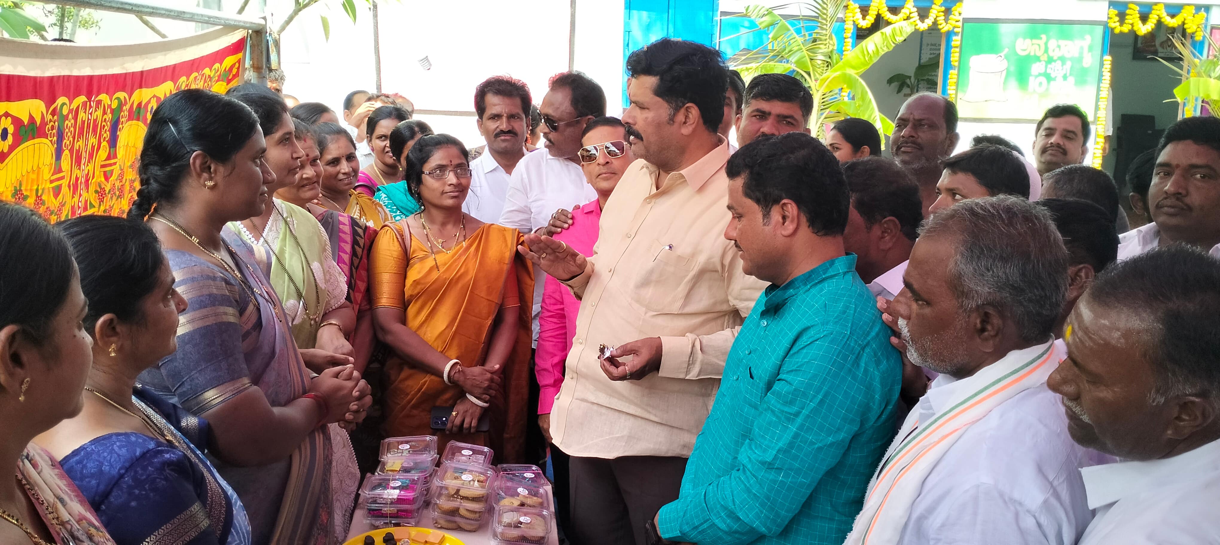ಗೃಹಲಕ್ಷ್ಮೀ ಯೋಜನೆ ಲಾಭ ಪಡೆದ ಗ್ರಾಮೀಣ ಮಹಿಳೆಯರು ಸೇರಿಕೊಂಡು ಸ್ವಯಂ ಉದ್ಯೋಗ ಗುಡಿಕೈಗಾರಿಕೆ ಸ್ಥಾಪಿಸಿದ ಸಂಜೀವಿನಿ ಒಕ್ಕೂಟದ ಮಹಿಳೆಯರು ತಮ್ಮ ಮನೆಗಳಲ್ಲಿ ತಯಾರಿಸಿದ ತಿನಿಸುಗಳು ಬಗ್ಗೆ ಮಾಹಿತಿ ಪಡೆದು ಚಾಕಲೇಟ್, ಬಿಸ್ಕೆಟ್ ಸೇರಿದಂತೆ ಇನ್ನಿತರ ಸಿಹಿ ತಿನಿಸು ಸವಿದರು. ನಂತರ ಮಹಿಳೆಯರು ಸ್ವಾವಲಂಬನೆ ಜೀವನಕ್ಕೆ ಸಂಜೀವಿನಿ ಯೋಜನೆ ಸಹಕಾರಿಯಾಗಿದೆ ಎಂದರು.