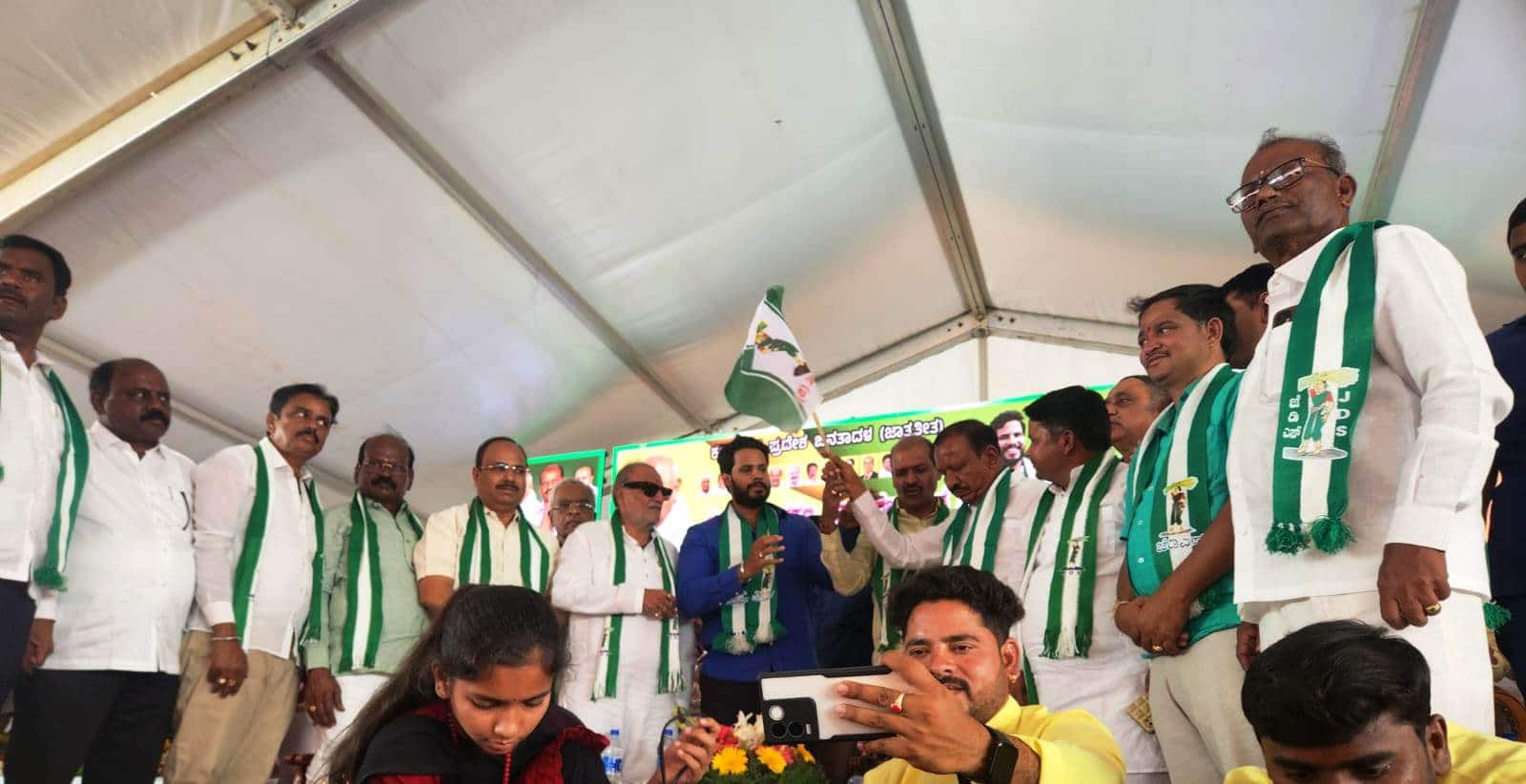 ಸಮಾವೇಶದಲ್ಲಿ ಪಟ್ಟಣದ ಬಾದಾಮಿ ಮೃತ್ಯುಂಜಯ ಅವರು ನಿಖಿಲ್ ಕುಮಾರಸ್ವಾಮಿ ಅವರಿಂದ ಜನತಾದಳದ ಬಾವುಟ ಪಡೆಯುವ ಮೂಲಕ ಜಿಲ್ಲಾ ಜನತಾದಳದ ಅಧ್ಯಕ್ಷರಾಗಿ ಪದಗ್ರಹಣ ಮಾಡಿದರು.
