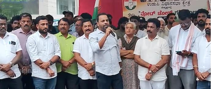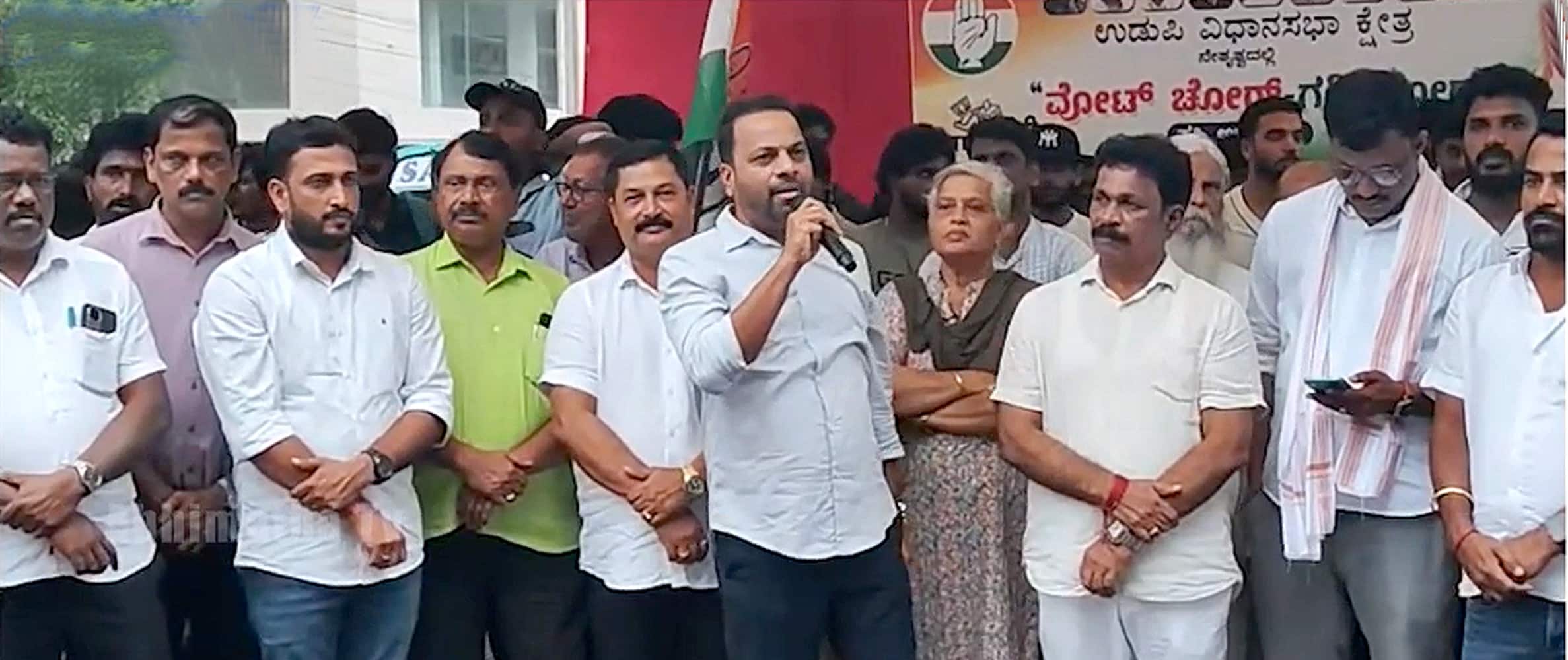 ಉಡುಪಿಯ ಹಳೆ ಕೆಎಸ್ಆರ್ಟಿಸಿ ಬಸ್ಸು ನಿಲ್ದಾಣದ ಬಳಿ ಕಾಂಗ್ರೆಸ್ ಪಕ್ಷದ ವೋಟ್ ಚೋರ್ ಗದ್ದಿ ಛೋಡ್ ಅಭಿಯಾನ ಮಂಗಳವಾರ ನಡೆಯಿತು.