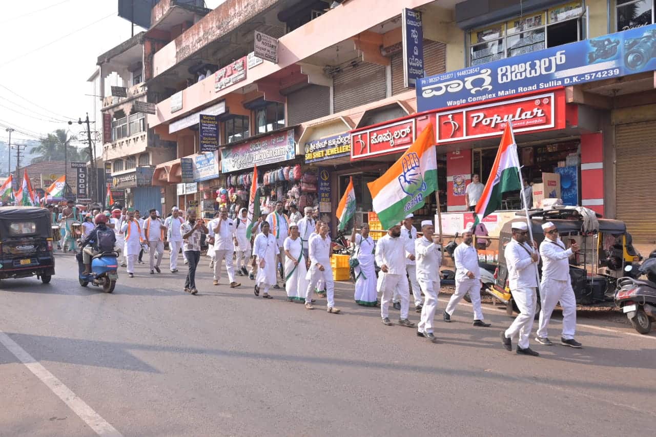 ಕಾಂಗ್ರೆಸ್ ಸರ್ಕಾರ ಜಾರಿಗೆ ತಂದಿದ್ದ ನರೇಗಾ ಯೋಜನೆಯ ಹೆಸರನ್ನು ಕೇಂದ್ರ ಸರ್ಕಾರ ಬದಲಾಯಿಸಿರುವುದನ್ನು ವಿರೋಧಿಸಿ ಕಾಂಗ್ರೆಸ್ ಪಕ್ಷವು ಸುಳ್ಯದಿಂದ ಮೂಲ್ಕಿಯವರೆಗೆ ಪಾದಯಾತ್ರೆ