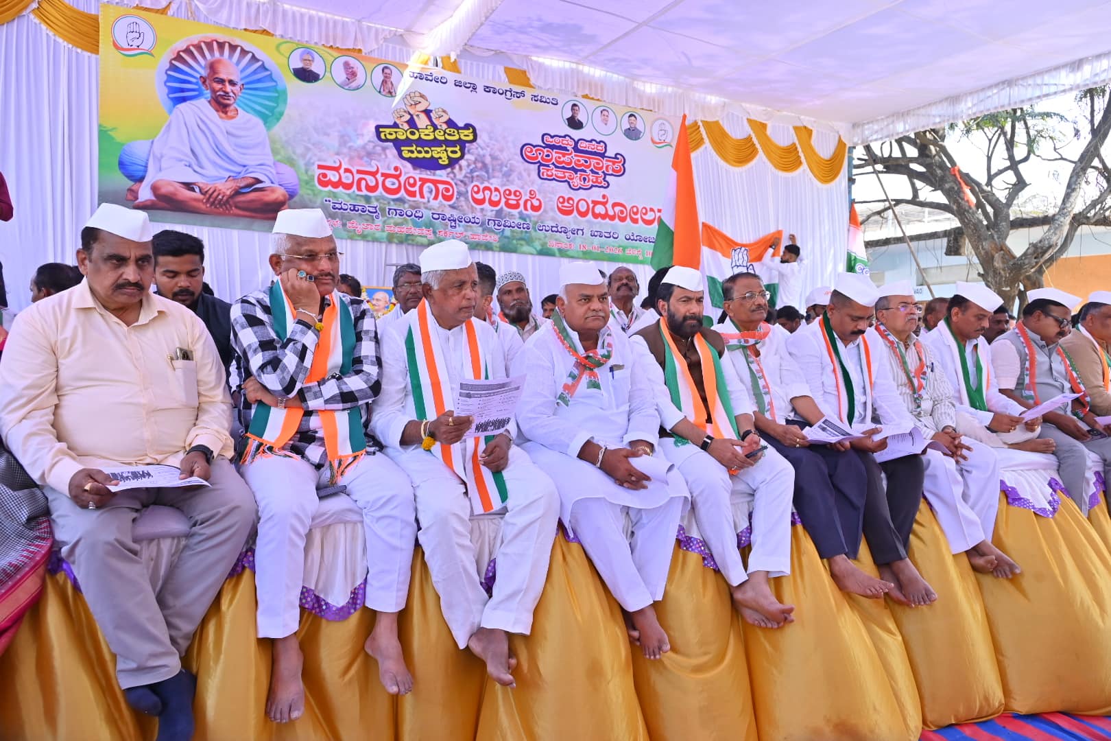 ವಿಬಿ ಜೀ ರಾಮ್ ಜೀ ಯೋಜನೆ ಖಂಡಿಸಿ ಕಾಂಗ್ರೆಸ್ ಪ್ರತಿಭಟನೆ ಕನ್ನಡಪ್ರಭ ವಾರ್ತೆ, ಹಾವೇರಿಮನರೇಗಾ ಯೋಜನೆ ವಿರೋಧ ಮಾಡುವುದು ಕಾಂಗ್ರೆಸ್ ಪಕ್ಷದ ನಿಲುವಲ್ಲ. ಕೇಂದ್ರ ಸರ್ಕಾರ ಬದಲಾವಣೆ ಮಾಡಿರುವ ವಿಬಿ ಜೀರಾಮ್ ಜೀ ಯೋಜನೆಯು ದೇಶದ 14 ಕೋಟಿ ಬಡ ಕುಟುಂಬಗಳ ಹೊಟ್ಟೆ ಮೇಲೆ ಕಲ್ಲು ಹೊಡೆಯುವ ಕೆಲಸ ಮಾಡುತ್ತದೆ. ಗ್ರಾಪಂಗಳ ಅಧಿಕಾರವನ್ನು ಮೊಟಕುಗೊಳಿಸುವ ಹಾಗೂ ರಾಜ್ಯದ ಘನತೆಗೆ ಧಕ್ಕೆ ತರುವ ಕಾನೂನನ್ನು ಕಾಂಗ್ರೆಸ್ ಸಹಿಸುವುದಿಲ್ಲ ಎಂದು ಜಿಲ್ಲಾ ಉಸ್ತುವಾರಿ ಸಚಿವ ಶಿವಾನಂದ ಪಾಟೀಲ ಹೇಳಿದರು.ನಗರದ ಮೈಲಾರ ಮಹದೇವಪ್ಪ ವೃತ್ತದಲ್ಲಿ ಜಿಲ್ಲಾ ಕಾಂಗ್ರೆಸ್ ಸಮಿತಿಯಿಂದ ಭಾನುವಾರ ಹಮ್ಮಿಕೊಂಡಿದ್ದ ಮನರೇಗಾ ಬಚಾವೋ ಆಂದೋಲನದ ಪ್ರಯುಕ್ತ ಸಾಂಕೇತಿಕ ಮುಷ್ಕರ ಹಾಗೂ ಒಂದು ದಿನದ ಉಪವಾಸ ಸತ್ಯಾಗ್ರಹದಲ್ಲಿ ಪಾಲ್ಗೊಂಡು ಅವರು ಮಾತನಾಡಿದರು.ಭಾರತ ದೇಶ ಇಂದು ಶೋಚನೀಯ ಸ್ಥಿತಿಯಲ್ಲಿ ಸಾಗುತ್ತಿದೆ. ಮೋದಿಯವರ ಕಾನೂನು ಯಾವಾಗ, ಹೇಗೆ ಬದಲಾವಣೆ ಆಗುತ್ತದೋ ಗೊತ್ತಾಗಲ್ಲ. ಸ್ವತಃ ಬಿಜೆಪಿ ಕಟ್ಟಿದ ಅಡ್ವಾಣಿ, ಮುರುಳಿ ಮನೋಹರ ಜೋಶಿ ಅವರಿಗೆ ಮೋದಿ ಅನ್ಯಾಯ ಮಾಡಿದ್ದಾರೆ. 75 ವರ್ಷ ಆದ ಮೇಲೆ ಪ್ರಧಾನಿ ಆಗಬಾರದೆಂದು ಬಿಜೆಪಿ ಅಜೆಂಡಾದಲ್ಲಿದೆ, ಆದರೆ ಮೋದಿಗೆ ಅನ್ವಯವಾಗುವುದಿಲ್ಲ. ಮೋದಿ ಎಲ್ಲದರಲ್ಲೂ ವ್ಯಾಪಾರ ಮಾಡುತ್ತಿದ್ದಾರೆ. ಕಳೆದ 12 ವರ್ಷದಲ್ಲಿ ಲೆಕ್ಕವಿರದಷ್ಟು ಸುಳ್ಳು ಹೇಳುತ್ತಲೆ ಅಧಿಕಾರ ನಡೆಸಿದ್ದಾರೆ ಎಂದರು.ನಾವು ರಾಷ್ಟ್ರಪಿತ ಎಂದು ಯಾರನ್ನು ಕರೆಯುತ್ತಿದ್ದೇವೋ ಅವರನ್ನು ಸುಮ್ಮನೇ ಬಿಡುತ್ತಿಲ್ಲ. ಗಾಂಧೀಜಿ ಅವರನ್ನು ನಿಂದನೆ ಮಾಡುತ್ತಿದ್ದಾರೆ. ಮನಮೋಹನ್ ಸಿಂಗ್ ಪ್ರಧಾನಿಯಾದಾಗ ಮನರೇಗಾ ಯೋಜನೆ ಜಾರಿಗೆ ತಂದರು. ದೇಶದ 800 ಜಿಲ್ಲೆಗಳ ಪೈಕಿ, ಆರಂಭದಲ್ಲಿ ಬರಗಾಲ ಇರುವ ಜಿಲ್ಲೆಯಲ್ಲಿ ಅನುಷ್ಠಾನಕ್ಕೆ ತಂದರು. ಬಳಿಕ ಹಂತ ಹಂತವಾಗಿ ಎಲ್ಲ ಜಿಲ್ಲೆಗೆ ವಿಸ್ತರಿಸಿದರು. ಆದರೆ ಬಿಜೆಪಿಯವರು ಯೋಜನೆ ಬದಲಾಯಿಸುವ ಮೂಲಕ ಅಮಾನವೀಯ ಕೆಲಸ ಮಾಡುತ್ತಿದ್ದಾರೆ. ದೇಶದ ರೈತರು, ಕೂಲಿ ಕಾರ್ಮಿಕರ ಹಿತ ಕಾಪಾಡಲಿಕ್ಕೆ ಆಗುತ್ತಿಲ್ಲ. ಹಿಂದೂ ಮುಸ್ಲಿಂ ಎನ್ನುತ್ತಲೇ 11 ವರ್ಷ ಆಡಳಿತ ಮಾಡಿದ್ದಾರೆ ಎಂದು ವ್ಯಂಗ್ಯವಾಡಿದರು.ದೇಶದ ರಾಜಕಾರಣದಲ್ಲಿ ಕರ್ನಾಟಕ ಸರ್ಕಾರ ಪ್ರಬುದ್ಧ ರಾಜಕಾರಣ ಮಾಡಿದೆ. ಕೇಂದ್ರದ ಆಡಳಿತ ನೀತಿ ವಿರೋಧಿಸುವ ನಿರ್ವಹಣೆ ನಾವು ಮಾಡಬೇಕಿದೆ. ನರೇಗಾ ಇದ್ದಾಗ ರಾಜ್ಯಕ್ಕೆ 4500 ಕೋಟಿ ರು. ಅನುದಾನ ಬರುತ್ತಿತ್ತು, ಆದರೀಗ 2500 ಕೋಟಿ ರು. ಕೂಡ ಬರಲ್ಲ. ಬಡವರನ್ನು ಸಲುಹಲು ಆಗುತ್ತಿಲ್ಲ. ಈ ಯೋಜನೆ ಗ್ರಾಪಂಗಳಿಗೆ ಇರುವ ಅಧಿಕಾರ ಬಲಿ ಕೊಡುತ್ತದೆ ಎಂದರು. ಈ ವೇಳೆ ಶಾಸಕರಾದ ಯು.ಬಿ ಬಣಕಾರ, ಪ್ರಕಾಶ ಕೋಳಿವಾಡ, ಗಡಿ ಅಭಿವೃದ್ಧಿ ಪ್ರಾಧಿಕಾರ ಅಧ್ಯಕ್ಷ ಸೋಮಣ್ಣ ಬೇವಿನಮರದ, ಎಸ್.ಆರ್.ಪಾಟೀಲ, ಮೋಹನ ಲಿಂಬಿಕಾಯಿ ಮಾತನಾಡಿದರು. ಶಾಸಕ ರುದ್ರಪ್ಪ ಲಮಾಣಿ, ಆನಂದಸ್ವಾಮಿ ಗಡ್ಡದೇವರಮಠ, ಎಂ.ಎಂ. ಹಿರೇಮಠ, ಎಸ್.ಎಫ್.ಎನ್ ಗಾಜಿಗೌಡ್ರ, ಎಂ.ಎಂ.ಮೈದೂರ, ಕೊಟ್ರೇಶಪ್ಪ ಬಸೇಗಣ್ಣಿ, ಆರ್. ಶಂಕರ, ನೆಹರು ಓಲೇಕಾರ, ಪ್ರೇಮಾ ಪಾಟೀಲ, ದರ್ಶನ ಲಮಾಣಿ, ರಾಜು ಕುನ್ನೂರ, ಪ್ರಸನ್ನ ಹಿರೇಮಠ, ಎಂ.ಎಫ್.ಮಣಕಟ್ಟಿ, ಮಂಜನಗೌಡ ಪಾಟೀಲ, ರಮೇಶ ಮಡಿವಾಳರ, ದಾನಪ್ಪ ಚೂರಿ, ಪ್ರಭುಗೌಡ ಬಿಷ್ಟನಗೌಡ್ರ, ಶಾಂತಕ್ಕ ಶಿರೂರ, ಶಿವಕುಮಾರ ತಾವರಗಿ, ಬಸವರಾಜ ಹೆಡಿಗ್ಗೊಂಡ ಸೇರಿದಂತೆ ಇತರರು ಇದ್ದರು. ಮನರೇಗಾ ಯೋಜನೆಯನ್ನು ಬದಲಾವಣೆ ಮಾಡಲು ದೊಡ್ಡ ಷಡ