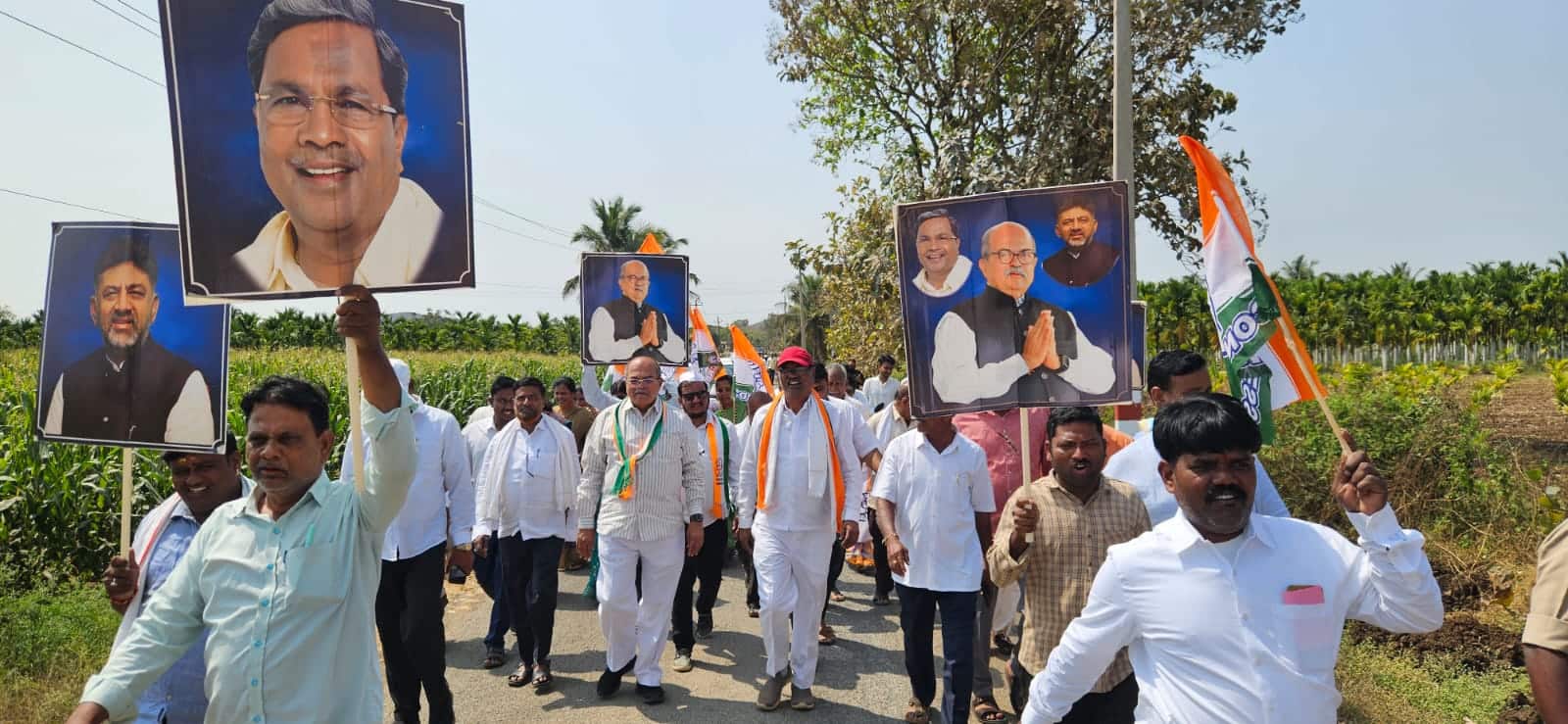 ಮುಂಜಾನೆ 9 ಗಂಟೆಗೆ ತಾಲೂಕಿನ ಗುಂಡಗಟ್ಟಿ ಗ್ರಾಮದ ಶನೇಶ್ವರ ದೇವಸ್ಥಾನದಿಂದ ಪ್ರಾರಂಭವಾದ ಬೃಹತ್ ಪ್ರತಿಭಟನಾ ಮೆರವಣಿಗೆ ಇಂಗಳಗೊಂದಿ, ಸತ್ತಗಿಹಳ್ಳಿ, ಶಿರಗಂಬಿ ಮುಖಾಂತರ ಪಟ್ಟಣದ ಪ್ರಮುಖ ಬೀದಿಗಳಲ್ಲಿ ಸಂಚರಿಸಿ ಜಿ ರಾಮ್ ಜಿ ಕಾಯ್ದೆಯ ವಿರುದ್ಧ ಘೋಷಣೆ ಕೂಗುವ ಮೂಲಕ ಜನ ಜಾಗೃತಿ ಮೂಡಿಸಲಾಯಿತು. ಸುಮಾರು 20 ಕಿಲೋ ಮೀಟರ್ ವರೆಗೂ ಕಾಲ್ನಡಿಗೆ ಮೂಲಕ ಸಾಗಿ ಬಂದು ಪಟ್ಟಣದ ವೀರಭದ್ರೇಶ್ವರ ದೇವಸ್ಥಾನದ ಆವರಣದಲ್ಲಿ ಮುಕ್ತಾಯಗೊಳಿಸಲಾಯಿತು. ಪ್ರತಿಭಟನಾ ರ್ಯಾಲಿಯಲ್ಲಿ ಭಜನೆ, ಹಲಗೆ ಬಾರಿಸುವ ಮೂಲಕ ನೂರಾರು ಕಾಂಗ್ರೆಸ್ ಕಾರ್ಯಕರ್ತರು, ಮುಖಂಡರು ಭಾಗಿಯಾಗಿದ್ದರು.ಈ ವೇಳೆ ಮಾತನಾಡಿದ ಶಾಸಕ ಯು.ಬಿ. ಬಣಕಾರ ಸುಮಾರು 20 ವರ್ಷಗಳ ಹಿಂದೆ ಆಗಿನ ಪ್ರಧಾನಿ ಡಾ. ಮನಮೋಹನ್ಸಿಂಗ್ ಅವರು ಬಡ ಜನರು ಕೆಲಸವಿಲ್ಲದೇ ಹಸಿವಿನಿಂದ ಬಳಲುಬಾರದೆಂಬ ಉದ್ದೇಶದಿಂದ ಮನರೇಗಾ ಯೋಜನೆ ಮೂಲಕ ವರ್ಷ ಪೂರ್ತಿ ಕೂಲಿ ಕೆಲಸ ಸಿಗುವಂತೆ ಮಾಡುವ ಉದ್ದೇಶದಿಂದ ಈ ಕಾಯ್ದೆಯನ್ನು ಜಾರಿಗೆ ತರಲಾಗಿತ್ತು. ಆದರೆ ಕಳೆದ ಡಿಸೆಂಬರ್ ತಿಂಗಳಿನಲ್ಲಿ ನರೇಂದ್ರ ಮೋದಿ ನೇತೃತ್ವದ ಕೇಂದ್ರ ಸರಕಾರ ಮನರೇಗಾ ಹೆಸರು ಬದಲಿಸಿ ಮಹಾತ್ಮ ಗಾಂಧಿ ಅವರ ಹೆಸರು ಕೈ ಬಿಟ್ಟು ಅವರಿಗೆ ದೊಡ್ಡ ಅಪಮಾನ ಮಾಡುವುದಲ್ಲದೇ ಕಾಯ್ದೆಯಲ್ಲಿ ಅನೇಕ ಬದಲಾವಣೆ ತರುವ ಮೂಲಕ ಬಡ ಜನತೆಯನ್ನು ದೊಡ್ಡ ಸಂಕಷ್ಟಕ್ಕೆ ಸಿಲುಕುವಂತೆ ಮಾಡಿರುವುದು ಅಕ್ಷಮ್ಯ ಅಪರಾಧ. ಈ ಬಗ್ಗೆ ದೇಶಾದ್ಯಂತ ಕಾಂಗ್ರೆಸ್ ನೇತೃತ್ವದಲ್ಲಿ ಹೋರಾಟ ಹಮ್ಮಿಕೊಂಡಿದ್ದು, ಎರಡನೇ ಹಂತವಾಗಿ ರಾಜ್ಯಾದ್ಯಂತ ಹೋರಾಟ ಹಮ್ಮಿಕೊಳ್ಳಲಾಗಿದೆ ಎಂದರು. ಕಾಂಗ್ರೆಸ್ ನೇತೃತ್ವದ ಹೋರಾಟಕ್ಕೆ ಮಣಿದು ಈ ಹಿಂದೆ ತರಲಾದ ಮನರೇಗಾ ಹೆಸರಿನಲ್ಲಿ ಮಹಾತ್ಮ ಗಾಂಧಿ ಅವರನ್ನು ಮುಂದುವರೆಸಬೇಕು. ಇಲ್ಲವಾದಲ್ಲಿ ಮುಂಬರುವ ದಿನಗಳಲ್ಲಿ ಉಗ್ರ ಹೋರಾಟ ಕೈಗೊಳ್ಳಲಾಗುವುದು ಎಂದು ಕೇಂದ್ರ ಸರಕಾರಕ್ಕೆ ಎಚ್ಚರಿಕೆ ನೀಡಿದರು. ಕಾಂಗ್ರೆಸ್ ಜಿಲ್ಲಾಧ್ಯಕ್ಷ ಸಂಜೀವಕುಮಾರ ನೀರಲಗಿ, ಎಂಎಲ್ಸಿ ಅಭ್ಯರ್ಥಿ ಮೊಹನ್ ಲಿಂಬಿಕಾಯಿ, ಪ್ರಕಾಶ ಬನ್ನಿಕೋಡ, ಪಿ.ಡಿ. ಬಸನಗೌಡ್ರ, ವೀರನಗೌಡ ಪ್ಯಾಟಿಗೌಡ್ರ, ಸರ್ಫರಾಜ ಮಾಸೂರ, ಮಕ್ಬೂಲ್ ಮುಲ್ಲಾ, ರಮೇಶ ಮಡಿವಾಳರ, ನಿಂಗಪ್ಪ ಚಳಗೇರಿ, ಮಹೇಶ ಗುಬ್ಬಿ, ವಿನಯ ಪಾಟೀಲ್, ಸುಮಿತ್ರಾ ಪಾಟೀಲ್, ಸುನೀತಾ ದ್ಯಾವಕ್ಕಳವರ, ಲಲಿತಾ ಚನ್ನಗೌಡ್ರ, ಸುಧಾ ಚಿಂದಿ, ಕವಿತಾ ಹಾರ್ನಳ್ಳಿ, ಹನಮಂತಗೌಡ ಭರಮಣ್ಣನವರ, ವಸಂತ ದ್ಯಾವಕ್ಕಳವರ, ವಿಜಯ ಅಂಗಡಿ, ಮಂಜು ಅಸ್ವಾಲಿ ಹಾಗೂ ವಿವಿಧ ಗ್ರಾಮಗಳಿಂದ ನೂರಾರು ಕಾರ್ಯಕರ್ತರು ಇದ್ದರು.ಜಿ ರಾಮ್ ಜಿ ಕಾಯ್ದೆ ವಿರುದ್ಧ ಕಾಂಗ್ರೆಸ್ ಜನಜಾಗೃತಿ, ಪ್ರತಿಭಟನೆ