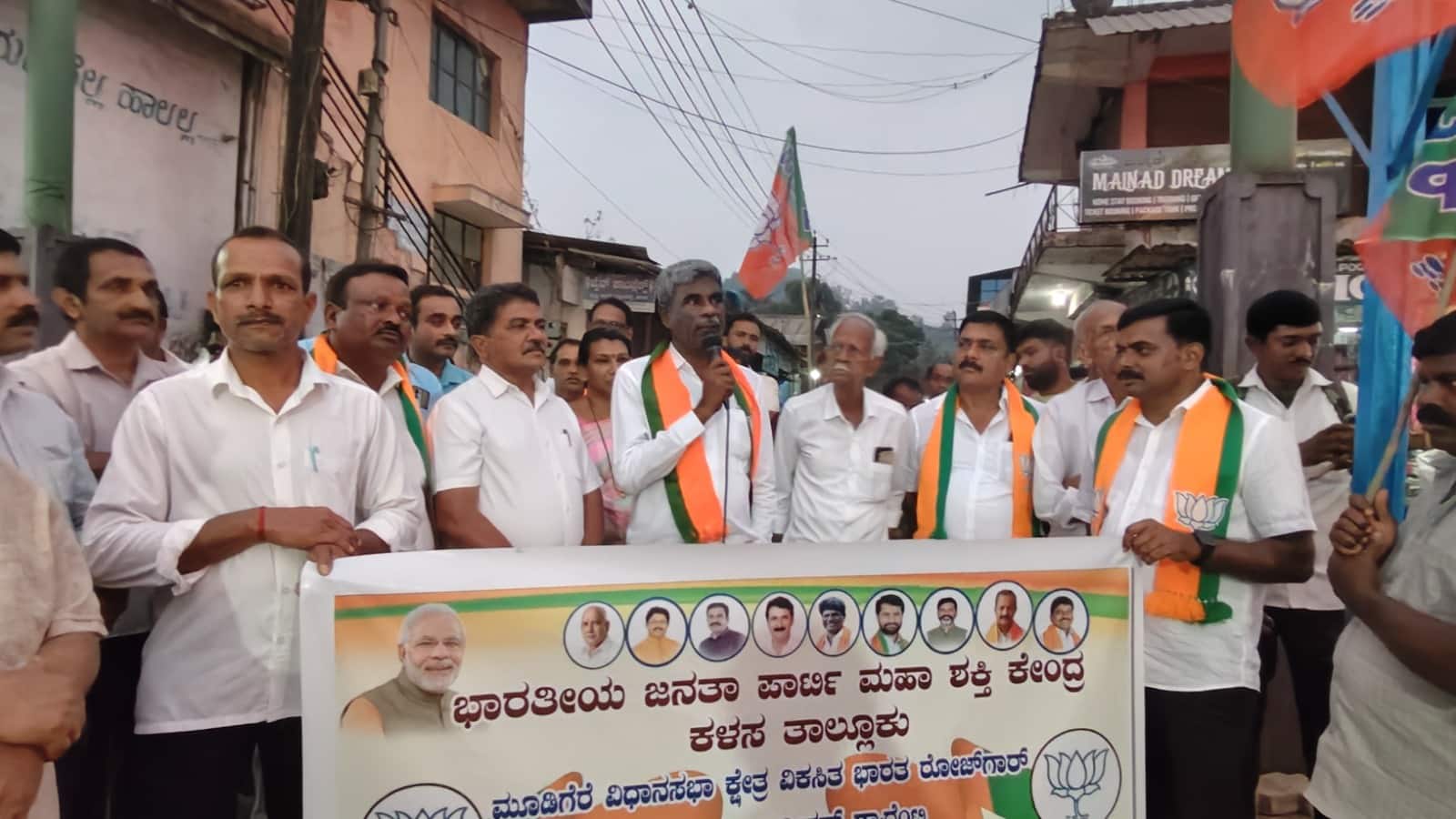 ಇದಕ್ಕಿಂತ ಮುಂಚಿತವಾಗಿ ಕಳಸ ಪ್ರಮುಖ ರಸ್ತೆಗಳಲ್ಲಿ ಜಾಗೃತಿ ಪಾದಯಾತ್ರೆ ನಡೆಯಿತು. ಈ ಸಂದರ್ಭದಲ್ಲಿ ಕಳಸ ಬಿಜೆಪಿ ಅಧ್ಯಕ್ಷ ಶ್ರೀಕಾಂತ್, ಮುಖಂಡರಾದ ದೀಪಕ್ ದೊಡ್ಡಯ್ಯ, ಎಂ.ಎ.ಶೇಷಗಿರಿ, ಸುಜಯ ಸದಾನಂದ, ಬಿ.ಕೆ.ಮಹೇಶ್, ಸುಂದರ ಶೆಟ್ಟಿ, ನಾಗಭೂಷಣ್, ನಾಗೇಶ್ ಭಟ್, ರಂಗನಾಥ್, ಕಾರ್ತಿಕ್ ಶಾಸ್ತ್ರೀ, ಪರಿಕ್ಷಿತ್, ಜೆಡಿಎಸ್ ಮುಖಂಡರಾದ ಜಿ.ಕೆ.ಮಂಜಪ್ಪಯ್ಯ, ಜ್ವಾಲನಯ್ಯ, ಸಂತೋಷ್ ಹಿನಾರಿ ಇದ್ದರು.