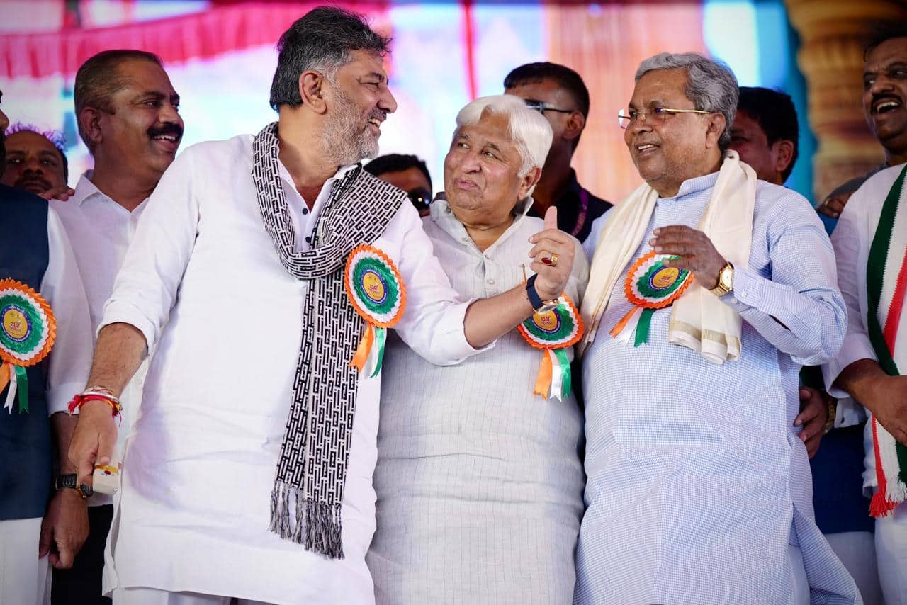 ಹಾವೇರಿಯಲ್ಲಿ ಶನಿವಾರ ಆಯೋಜಿಸಿದ್ದ ಜನಸೇವೆಯಲ್ಲಿ ಸಾರ್ಥಕ ಸಾವಿರ ದಿನ, ಭೂ ಗ್ಯಾರಂಟಿ ಸಮರ್ಪಣಾ ಸಮಾವೇಶ ಕಾರ್ಯಕ್ರಮದಲ್ಲಿ ಅವರು ಮಾತನಾಡಿದರು.3 ಕ್ಷೇತ್ರಗಳ ಉಪಚುನಾವಣೆಗಳಲ್ಲಿ ಎರಡು ಕಡೆ ಮಾಜಿ ಮುಖ್ಯಮಂತ್ರಿಗಳ ಪುತ್ರರು ಸ್ಪರ್ಧೆ ಮಾಡಿದ್ದರು. ಆ ಕ್ಷೇತ್ರಗಳು ನಮ್ಮ ಬಳಿ ಇರಲಿಲ್ಲ. ಆ ಕ್ಷೇತ್ರಗಳನ್ನು ಕಾಂಗ್ರೆಸ್ ಗೆ ನೀಡಿ ನಮ್ಮ ಸಂಖ್ಯಾಬಲವನ್ನು 139ಕ್ಕೆ ಏರಿಕೆ ಮಾಡಿದ್ದೀರಿ. ನಿಮ್ಮ ಈ ಋಣ ತೀರಿಸಲು ಈ ಕಾರ್ಯಕ್ರಮವನ್ನು ಇಲ್ಲಿ ಆಯೋಜಿಸಿದ್ದೇವೆ ಎಂದು ಡಿ.ಕೆ.ಶಿವಕುಮಾರ ಹೇಳಿದರು.