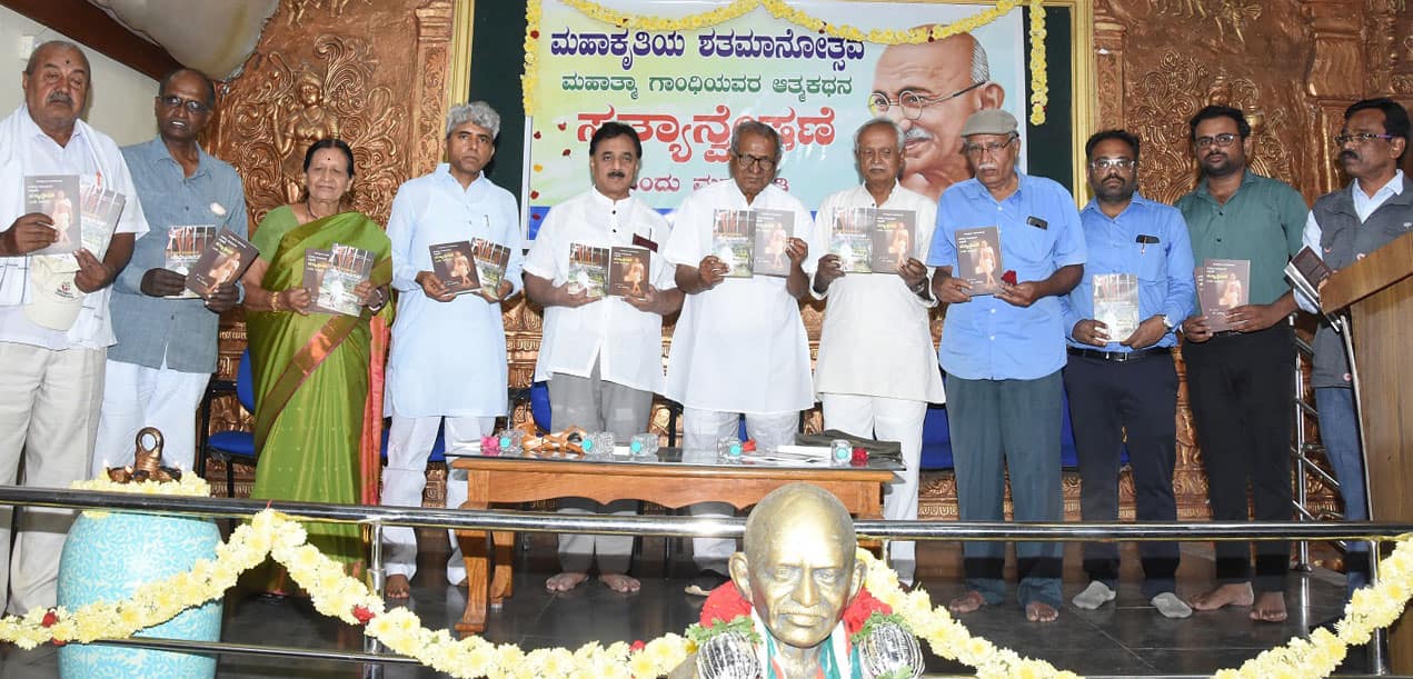 ಹಾಲಪ್ಪ ಪ್ರತಿಷ್ಠಾನದ ಅಧ್ಯಕ್ಷ ಮುರುಳೀಧರ ಹಾಲಪ್ಪ ಮಾತನಾಡಿ, ಗಾಂಧೀಜಿಯನ್ನು ಯುವಜನರಿಗೆ ಪರಿಚಯಿಸುವ ನಿಟ್ಟಿನಲ್ಲಿ ಎಂ.ಬಸವಯ್ಯಅವರ ಬರೆದಿರುವ ಸತ್ಯಾನ್ವೇಷಣೆ ಹಾಗೂ ಡಾ.ಎಚ್.ಎಸ್.ಸುರೇಶ್ ಅವರು ಬರೆದಿರುವ ಘಾತಕ ಲೋಕದಿಂದ ಗಾಂಧಿಯಾನದೆಡೆಗೆ ಎರಡು ಪುಸ್ತಕಗಳನ್ನು ಜಿಲ್ಲೆಯ ಪ್ರತಿ ಶಾಲಾ, ಕಾಲೇಜುಗಳ ಗ್ರಂಥಾಲಯಗಳಲ್ಲಿ ದೊರೆಯುವಂತೆ ಮಾಡಲಿದ್ದೇವೆ. ಅಲ್ಲದೆ ಜಿಲ್ಲಾ ಕಾರಾಗೃಹದ ಖೈದಿಗಳಿಗೂ ನೀಡಲಾಗುವುದು. ಇಂತಹ ಕಾರ್ಯಕ್ರಮದಲ್ಲಿ ಹೆಚ್ಚು ಯುವಜನರು ಪಾಲ್ಗೊಳ್ಳುವಂತೆ ಮಾಡಲಾಗುವುದು. ಯುವಜನರನ್ನು ಗಾಂಧೀಜಿ ಸಂದೇಶದ ರಾಯಭಾರಿಗಳಾಗಿ ಕೆಲಸ ಮಾಡಬೇಕಾಗಿದೆ ಎಂದರು. ಗಾಂಧಿ ಸ್ಮಾರಕ ನಿಧಿಯ ನಿರ್ದೇಶಕ ಪ್ರೊ.ಜಿ.ಬಿ.ಶಿವರಾಜು ಮಾತನಾಡಿ, ಗಾಂಧಿಯನ್ನು ಮುಂದಿನ ಪೀಳಿಗೆಗೆ ಪರಿಚಿಯಿಸುವ ನಿಟ್ಟಿನಲ್ಲಿ ಬಾಪೂಜಿ ವಿದ್ಯಾಸಂಸ್ಥೆಯ ಎಂ.ಬಸವಯ್ಯನವರ ಪಾತ್ರ ದೊಡ್ಡದು, ಇಳಿ ವಯಸ್ಸಿನಲ್ಲಿಯೂ ಇಂತಹ ಮೇರುಕೃತಿಯನ್ನು ರಚಿಸಿದ್ದಾರೆ. ಗಾಂಧಿ ಸ್ಮಾರಕ ನಿಧಿಯಿಂದ 200 ಪುಸ್ತಕಗಳನ್ನು ಕೊಂಡು, ಅದನ್ನು ಫೆ.11 ರಿಂದ ಮಂಡ್ಯದಲ್ಲಿ ನಡೆಯುವ 78ನೇ ಸವೋರ್ದಯ ಮೇಳದಲ್ಲಿ ಹಂಚಲಾಗುವುದು. ಸಮಾಜಮುಖಿಯಾಗಿ ಚಿಂತಿಸದ ಸದ್ ಗೃಹಸ್ಥನಾಗಿರಲು ಸಾಧ್ಯವಿಲ್ಲ ಎಂಬ ಗಾಂಧಿಯ ಮಾತುಗಳು ನಮಗೆಲ್ಲರಿಗೂ ಅನ್ವಯಿಸುತ್ತದೆ ಎಂದರು. ಗಾಂಧಿ ಭವನದ ಕಾರ್ಯದರ್ಶಿ ನರೇಂದ್ರ ಮಾತನಾಡಿ, ಮೊಬೈಲ್ನಲ್ಲಿ ಮುಳುಗಿರುವ ನಮ್ಮ ಯುವಜನರಿಗೆ ಗಾಂಧಿ ಜೀವನಚರಿತ್ರೆ ಓದಲು ಸಮಯ ಇಲ್ಲದಂತಾಗಿದೆ. ಎಐ ನಂತಹ ತಂತ್ರಜ್ಞಾನದಿಂದ ಕೃಷಿ ಕೆಲಸಕ್ಕೂ ರೋಬೋಟಿಕ್ಗಳು ಬಂದಿರುವ ಕಾಲದಲ್ಲಿ, ವಿದ್ಯಾವಂತ ಯುವಜನರಿಗೆ ಕೆಲಸವಿಲ್ಲದೆ ಮನೆಯಲ್ಲಿಯೇ ಕುಳಿತು, ಗಾಂಧಿ ನೆನಪಾಗುತ್ತಾರೆ ಎಂದು ಭವಿಷ್ಯದಲ್ಲಿ ಉಂಟಾಗಬಹುದಾದ ನಿರುದ್ಯೋಗ ಸಮಸ್ಯೆಯನ್ನು ಗಂಭೀರತೆ ಕುರಿತು ಎಚ್ಚರಿಸಿದರು.ಕಾರ್ಯಕ್ರಮದ ಅಧ್ಯಕ್ಷತೆಯನ್ನು ಬಾಪೂಜಿ ವಿದ್ಯಾಸಂಸ್ಥೆಯ ಅಧ್ಯಕ್ಷ ಎಂ.ಬಸವಯ್ಯ ವಹಿಸಿದ್ದರು. ವೇದಿಕೆಯಲ್ಲಿ ಪರಿಸರವಾದಿ ಸಿ.ಯತಿರಾಜು, ಬಾಪೂಜಿ ವಿದ್ಯಾಸಂಸ್ಥೆ ಕಾರ್ಯದರ್ಶಿ ಭಾಗ್ಯಮ್ಮ ಬಸವಯ್ಯ, ಉಪನ್ಯಾಸಕರಾದ ಗೋವಿಂದಯ್ಯ, ಸುಮಂಗಲ ಜೇಮ್ಸ್, ಪ್ರೊ.ಸಿದ್ದಿಬಾಬು, ಚಿದಾನಂದಸ್ವಾಮಿ.ಜಿ,ಬಿಂದುಶ್ರೀ, ಸುರೇಶ್ ಮತ್ತಿತರರು ಉಪಸ್ಥಿತರರಿದ್ದರು.
