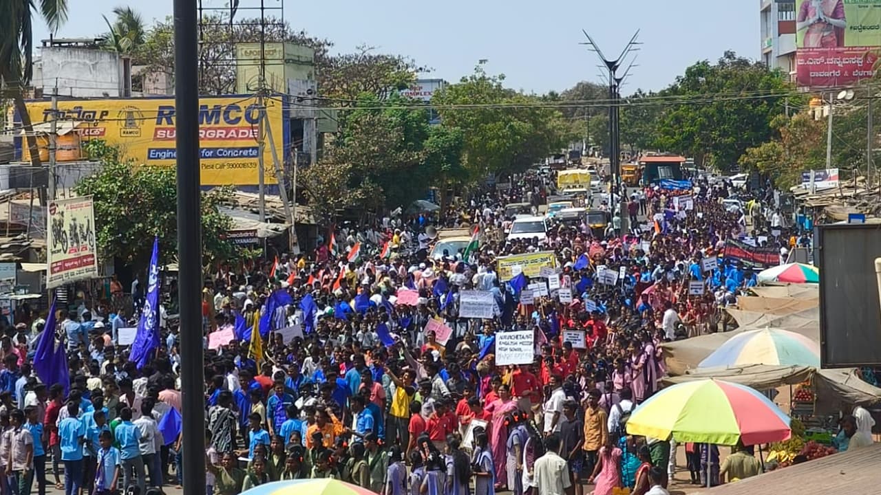 ಸಂವಿಧಾನ ಕುರಿತಾದ ಇಂಪಾದ ಹಾಡುಗಳನ್ನು ಹೇಳುತ್ತಾ ಹೆಜ್ಜೆ ಹಾಕಿದ ವಿದ್ಯಾರ್ಥಿಗಳು ಮತ್ತು ಮೆರವಣಿಗೆಯುದ್ದಕ್ಕೂ ಸಂವಿಧಾನ ಪರ ಘೋಷಣೆಗಳನ್ನು ಕೂಗಿದರು.