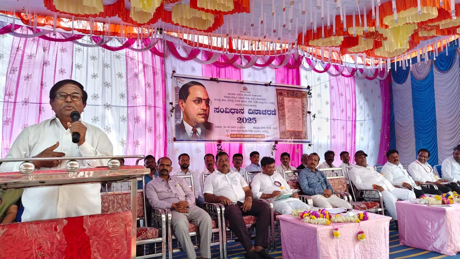 ತಹಸೀಲ್ದಾರ್ ಕಾರ್ಯಾಲಯದ ಆವರಣದಲ್ಲಿ ಏರ್ಪಡಿಸಿದ್ದ ಸಂವಿಧಾನ ದಿನಾಚರಣೆ ಕಾರ್ಯಕ್ರಮದಲ್ಲಿ ಮಾತನಾಡಿದರು.ನಮ್ಮ ಸಂವಿಧಾನದಲ್ಲಿ ಜಾತಿ, ಧರ್ಮ, ಭಾಷೆ, ಸಂಸ್ಕೃತಿ ಹಾಗೂ ಆರ್ಥಿಕ, ಸಾಮಾಜಿಕ, ರಾಜಕೀಯವನ್ನು ಗೌರವಿಸುವ ಜತೆಗೆ ಅನ್ಯರಿಗೆ ನೋವಾಗದಂತೆ ಸರ್ವರಿಗೂ ಧರ್ಮ, ಜಾತಿ ಆಚಾರ ವಿಚಾರಗಳನ್ನು ಆಚರಿಸಲು ಭಾರತದ ಸಾರ್ವಭೌಮತ್ವವನ್ನು ಎತ್ತಿ ಹಿಡಿದಿದೆ ಎಂದರು.ಮುಖಂಡ ಡಿ.ಕೆ. ಹೊನ್ನಪ್ಪನವರ ಮಾತನಾಡಿ, ಸಂವಿಧಾನ ಎಂಬುದು ಜೀವ ಸಂಕುಲಗಳ ಬದುಕನ್ನು ರಕ್ಷಿಸುತ್ತಾ ಘನತೆಯ ಬದುಕನ್ನು ಕಟ್ಟಿಕೊಡುವ ಆಡಳಿತಾತ್ಮಕ ಕಾನೂನು. ಇಂತಹ ಮಾನವೀಯ ಸಂವಿಧಾನಕ್ಕಾಗಿ ಜಗತ್ತಿನಾದ್ಯಂತ ಹಲವಾರು ಕ್ರಾಂತಿಗಳು ಜರುಗಿವೆ. ಸಂವಿಧಾನ ಸಮಾನತೆ, ಭ್ರಾತೃತ್ವ, ರಾಷ್ಟ್ರೀಯ ಏಕತೆ ತರುವಲ್ಲಿ ತನ್ನದೇ ಆದ ಪಾತ್ರ ವಹಿಸಿದೆ. ಸಂವಿಧಾನದ ಮಹತ್ವವನ್ನು ಮನೆ ಮನೆಗೆ ತಲುಪಿಸುವ ಪ್ರಯತ್ನ ನಡೆಯಬೇಕು ಎಂದು ಹೇಳಿದರು.
