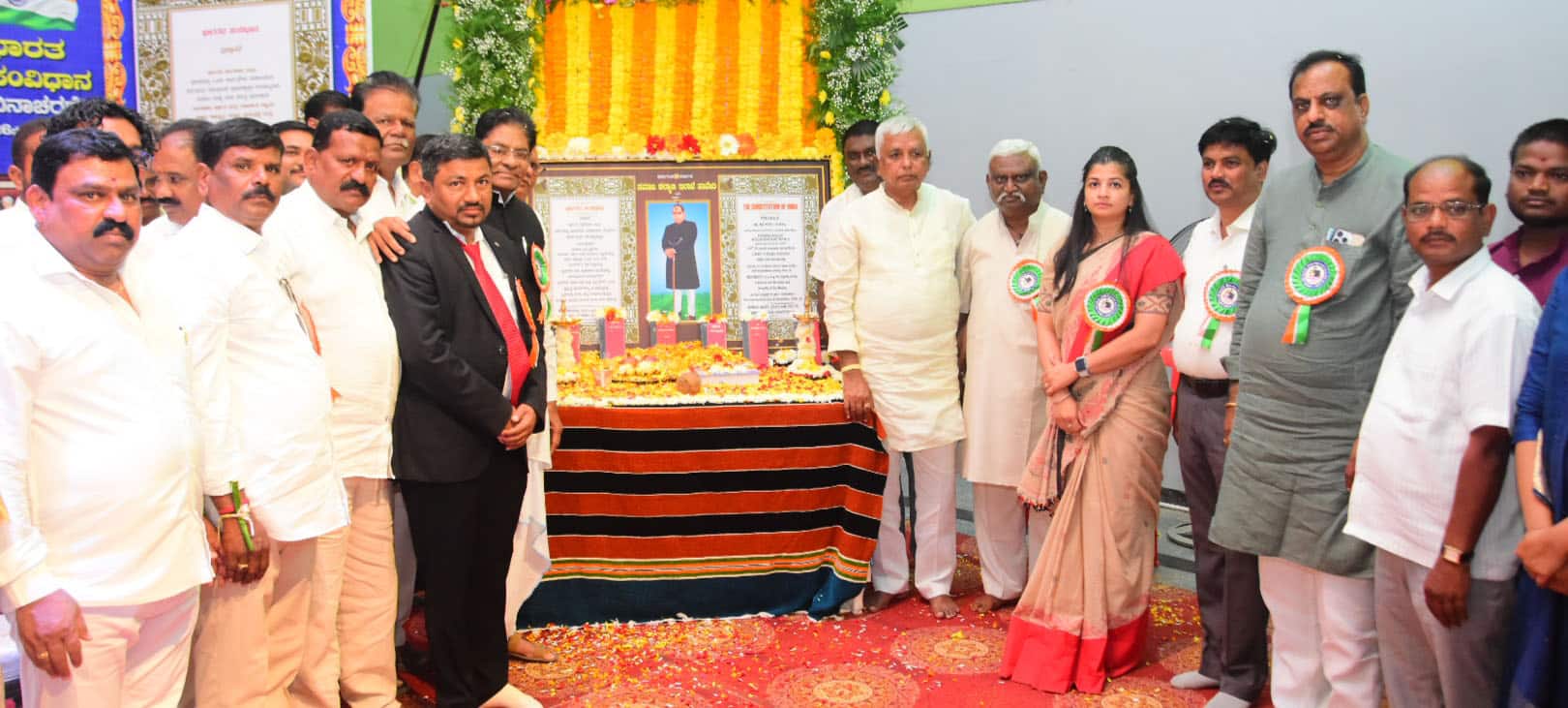 ನಗರದ ಡಾ. ಬಿ.ಆರ್. ಅಂಬೇಡ್ಕರ್ ಭವನದಲ್ಲಿ ಬುಧವಾರ ಜಿಲ್ಲಾಡಳಿತ, ಜಿಪಂ, ಸಮಾಜ ಕಲ್ಯಾಣ ಇಲಾಖೆ, ನಗರಸಭೆ, ಪರಿಶಿಷ್ಟ ಜಾತಿಗಳ ಒಕ್ಕೂಟಗಳು ಹಾಗೂ ವಿವಿಧ ಸಂಘಟನೆಗಳ ಸಹಯೋಗದಲ್ಲಿ ಜರುಗಿದ ಸಂವಿಧಾನ ದಿನಾಚರಣೆ ಕಾರ್ಯಕ್ರಮ ಉದ್ಘಾಟಿಸಿ, ಸಂವಿಧಾನ ಪೀಠಿಕೆಗೆ ಪುಷ್ಪಾರ್ಚನೆ ಮಾಡಿ ಅವರು ಮಾತನಾಡಿದರು. ಹಲವಾರು ಜಾತಿ, ಭಾಷೆ, ವೈವಿಧ್ಯಮಯವಾದ ಸಂಸ್ಕೃತಿ ಹಾಗೂ ಆಚರಣೆಗಳಿಂದ ಕೂಡಿದ ಈ ದೇಶದ ಪ್ರಜೆಗಳಿಗೆ ಸಾಮಾಜಿಕ, ಆರ್ಥಿಕ ಹಾಗೂ ರಾಜಕೀಯ ನ್ಯಾಯ ಸೇರಿದಂತೆ ಸಮಾನತೆ ಹಕ್ಕನ್ನು ಸಂವಿಧಾನ ನಮಗೆ ನೀಡಿದೆ ಎಂದು ಹೇಳಿದರು.ಜಿಪಂ ಮುಖ್ಯ ಕಾರ್ಯನಿರ್ವಹಣಾಧಿಕಾರಿ ರುಚಿ ಬಿಂದಲ್ ಮಾತನಾಡಿ, ವಿದ್ಯಾರ್ಥಿಗಳು ಸಂವಿಧಾನ ಓದಬೇಕು ಹಾಗೂ ಸಂವಿಧಾನದಲ್ಲಿ ನೀಡಿದ ಮೂಲಭೂತ ಹಕ್ಕು ಮತ್ತು ಕರ್ತವ್ಯಗಳ ಬಗ್ಗೆ ತಿಳಿದುಕೊಳ್ಳಬೇಕು ಸಂವಿಧಾನ ಗೌರವಿಸಬೇಕು ಎಂದು ಕರೆ ನೀಡಿದರು.