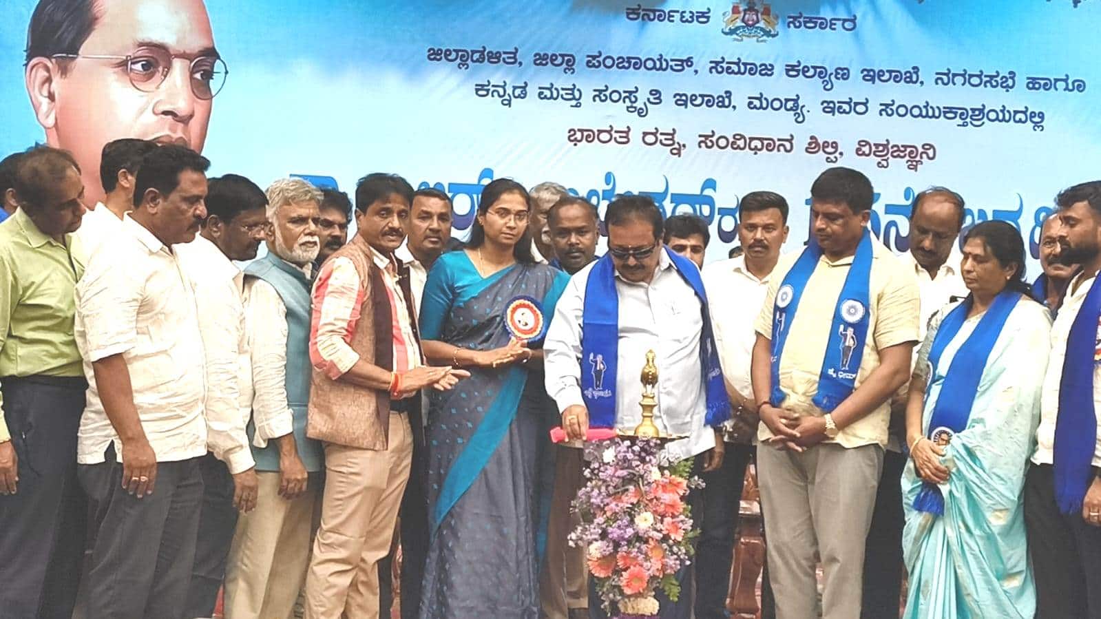 ಅಂಬೇಡ್ಕರ್ ಭವನಗಳ ಪೂರ್ಣ ಕಾಮಗಾರಿ ಸಂಪೂರ್ಣ ಗೊಳಿಸಲು ಜಿಲ್ಲೆಗೆ 2 ಕೋಟಿ ರು. ವೆಚ್ಚದಲ್ಲಿ ಕಾಮಗಾರಿ ಮಾಡುತ್ತೇವೆ. ಅಂಬೇಡ್ಕರ್ ರವರ ತತ್ವ, ಸಿದ್ಧಾಂತಗಳು ಎಲ್ಲಾ ಮನೆಯಲ್ಲಿ ಬೆಳಗಬೇಕು ಎಂದರು.ಇದೇ ವೇಳೆ ಜಿಪಂ ಸಿಇಒ ಕೆ.ಆರ್.ನಂದಿನಿ ಸಂವಿಧಾನದ ಪ್ರಸ್ತಾವನೆ ಬೋಧಿಸಿದರು. ನಂತರ ಸಮುದಾಯದ ಸಾಧಕರನ್ನು ಸನ್ಮಾನಿಸಲಾಯಿತು. ಕಾರ್ಯಕ್ರಮದಲ್ಲಿ ರಾಜ್ಯ ಸಣ್ಣ ಕೈಗಾರಿಕೆ ಅಭಿವೃದ್ಧಿ ನಿಗಮದ ಉಪಾಧ್ಯಕ್ಷೆ ವಿಜಯಲಕ್ಷ್ಮಿ ರಘುನಂದನ್, ಮೈಷುಗರ್ ಅಧ್ಯಕ್ಷ ಸಿ.ಡಿ.ಗಂಗಾಧರ್, ಮುಡಾ ಅಧ್ಯಕ್ಷ ಬಿ.ಪಿ.ಪ್ರಕಾಶ್, ಅಪರ ಜಿಲ್ಲಾಧಿಕಾರಿ ಬಿ.ಸಿ.ಶಿವಾನಂದಮೂರ್ತಿ, ಸಮಾಜ ಕಲ್ಯಾಣ ಇಲಾಖೆ ಉಪ ನಿರ್ದೇಶಕ ಕೆ.ಶ್ರೀನಿವಾಸ್, ತಹಸೀಲ್ದಾರ್ ವಿಶ್ವನಾಥ್ ಸೇರಿದಂತೆ ಹಲವರು ಉಪಸ್ಥಿತರಿದ್ದರು.