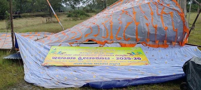 ಗಾಳಿ, ಮಳೆಗೆ ಕುಸಿದುಬಿದ್ದ ಕ್ರೀಡಾಕೂಟದ ಪೆಂಡಾಲ್: ಈಶಾನ್ಯ ಮಾನ್ಸೂನ್ ಮಾರುತದ ಪ್ರಭಾವದಿಂದ ಹೊನ್ನಾವರ ತಾಲೂಕಿನಲ್ಲಿ ಉತ್ತಮ ಮಳೆಯಾಗುತ್ತಿದೆ. ಶುಕ್ರವಾರ ಬೆಳಗ್ಗೆ ಸಮಯದಲ್ಲಿ ಸ್ವಲ್ಪ ಪ್ರಮಾಣದಲ್ಲಿ ಸುರಿದಿದ್ದ ಮಳೆರಾಯ ಮಧ್ಯಾಹ್ನ ಆಗುತ್ತಲೆ ಇನ್ನು ಹೆಚ್ಚಿಗೆ ಅಬ್ಬರಿಸಿದ. ಮಳೆಯ ಜತೆಯಲ್ಲಿ ಜೋರಾಗಿ ಗಾಳಿ ಸಹ ಬೀಸಿ ಜನರಲ್ಲಿ ಆತಂಕ ಹೆಚ್ಚಿಸಿತ್ತು.ಇನ್ನು ತಾಲೂಕಿನ ಎಸ್.ಡಿ.ಎಂ. ಕ್ರೀಡಾಂಗಣದಲ್ಲಿ ನಡಯುತ್ತಿದ್ದ 17 ವರ್ಷ ವಯೋಮಾನದ ತಾಲೂಕು ಮಟ್ಟದ ಕ್ರೀಡಾಕೂಟಕ್ಕೂ ಮಳೆ ಅಡಚಣೆ ಉಂಟು ಮಾಡಿತು. ಮಧ್ಯಾಹ್ನ 2 ಗಂಟೆಯ ಸುಮಾರಿಗೆ ಬಂದ ಧಾರಾಕಾರ ಮಳೆ ಹಾಗೂ ಗಾಳಿಗೆ ಕ್ರೀಡಾಕೂಟಕ್ಕೆ ಹಾಕಿದ್ದ ಪೆಂಡಾಲ್ ಕುಸಿದು ಬಿದ್ದಿತು. ಈ ವೇಳೆ ಪೆಂಡಾಲ್ನ ಕಂಬ ಬಡಿದು ಓರ್ವ ವಿದ್ಯಾರ್ಥಿನಿಗೆ ಚಿಕ್ಕ ಪ್ರಮಾಣದಲ್ಲಿ ಪೆಟ್ಟಾಗಿದೆ. ಕೂಡಲೇ ಆಸ್ಪತ್ರೆಗೆ ಕೊಂಡೊಯ್ದು ಚಿಕಿತ್ಸೆ ನೀಡಲಾಗಿದೆ. ಅದೃಷ್ಟವಶಾತ್ ಉಳಿದ ಯಾವುದೇ ಕ್ರೀಡಾಪಟುಗಳಿಗೆ ಹಾಗೂ ಪಂದ್ಯದ ಆಯೋಜಕರಿಗೂ ಯಾವುದೇ ತೊಂದರೆಗಳಾಗಿಲ್ಲ.ನಂತರವೂ ಮಳೆ ಮುಂದುವರಿದಿದ್ದು, ಶಾಲಾ ವಿದ್ಯಾರ್ಥಿಗಳಿಗೆ ಮತ್ತು ಜನಸಾಮಾನ್ಯರಿಗೆ ಮಳೆ ತೀವ್ರ ಅಡಚಣೆಯನ್ನು ಉಂಟುಮಾಡಿದ್ದು ಕಂಡುಬಂತು.;Resize=(128,128))