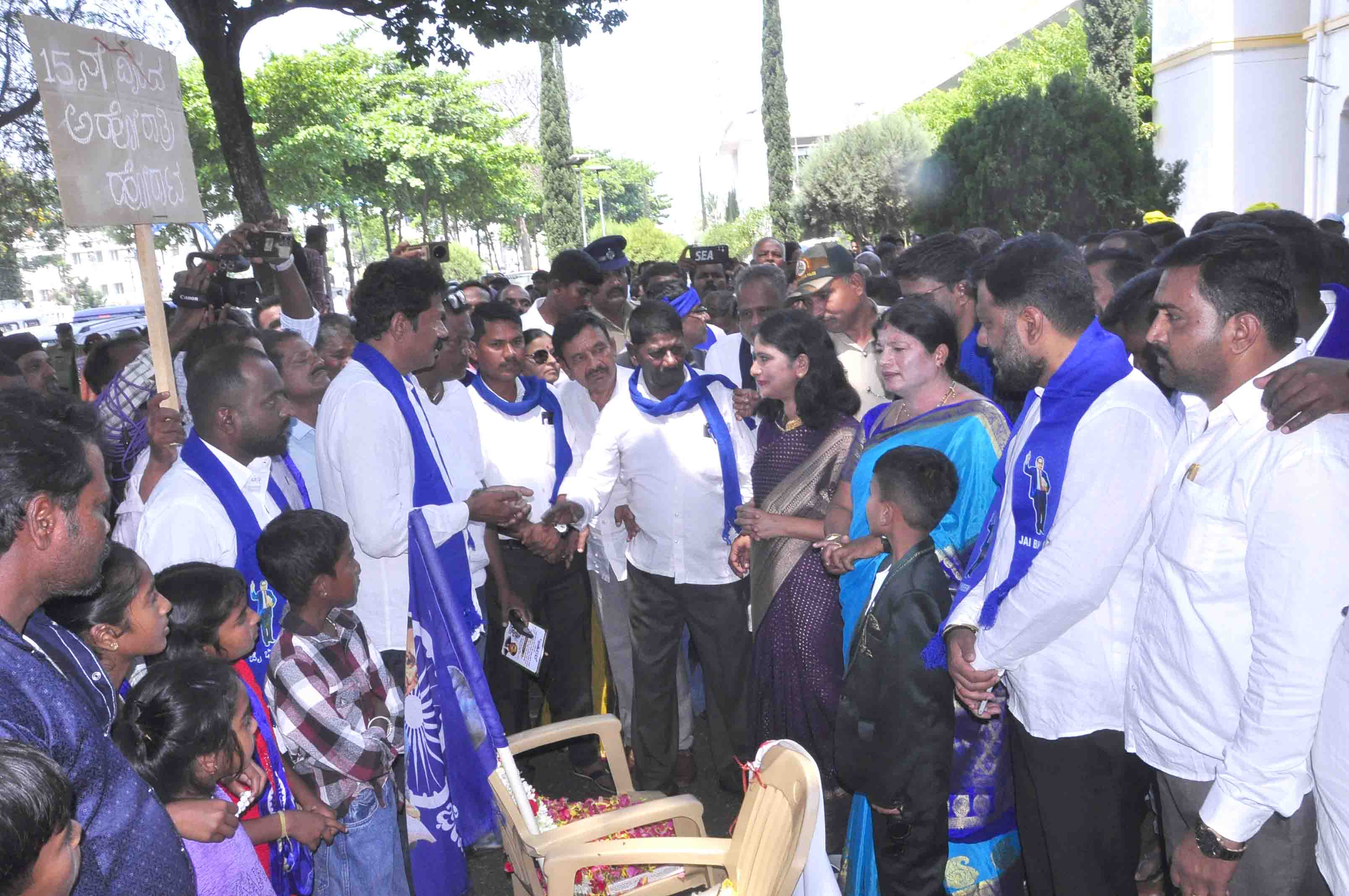 ಭೋವಿ ಸಮುದಾಯದ ಪಾರಂಪರಿಕ ಕುಲಕಸುಬಾದ ಕಟ್ಟಡ ಕಲ್ಲು ಗಣಿಗಾರಿಕೆಯನ್ನು ಪುನರ್ ಆರಂಭಿಸಲು ಆಗ್ರಹಿಸಿ ಜಿಲ್ಲಾಧಿಕಾರಿ ಕಚೇರಿ ಎದುರು ಕಳೆದ 15 ದಿನಗಳಿಂದ ನಿರಂತರವಾಗಿ ನಡೆಯುತ್ತಿರುವ ಅಹೋರಾತ್ರಿ ಧರಣಿ ತೀವ್ರತೆಯನ್ನು ಪಡೆದುಕೊಂಡಿದೆ. ಮಂಗಳವಾರ ಅಂಬೇಡ್ಕರ್ ಜಯಂತಿ ಅಂಗವಾಗಿ ನಗರದಲ್ಲಿ ಮೆರವಣಿಗೆ ನಡೆಯುತ್ತಿದ್ದ ಸಂದರ್ಭದಲ್ಲಿ ಧರಣಿ ನಿರತರು ಜೋರಾಗಿ ಘೋಷಣೆ ಕೂಗಿ ತಮ್ಮ ಆಕ್ರೋಶ ವ್ಯಕ್ತಪಡಿಸಿದ ಹಿನ್ನೆಲೆಯಲ್ಲಿ ಜಿಲ್ಲಾಧಿಕಾರಿ, ಶಾಸಕರು ಹಾಗೂ ಮಾಜಿ ಸಚಿವರು ಸ್ಥಳಕ್ಕೆ ಆಗಮಿಸಿ ಪ್ರತಿಭಟನಾಕಾರರ ಮನವಿ ಆಲಿಸಿದರು.ಡಾ. ಬಾಬಾಸಾಹೇಬ್ ಬಿ.ಆರ್. ಅಂಬೇಡ್ಕರ್ ಅವರ 135ನೇ ಜನ್ಮದಿನಾಚರಣೆ ಅಂಗವಾಗಿ ಜಿಲ್ಲಾಧಿಕಾರಿ ಕಚೇರಿ ಆವರಣದಲ್ಲಿ ಮೆರವಣಿಗೆಗೆ ಸಿದ್ಧತೆ ನಡೆಸಲಾಗಿತ್ತು. ಈ ವೇಳೆ ಜಿಲ್ಲಾಧಿಕಾರಿ ಕೆ.ಎಸ್. ಲತಾಕುಮಾರಿ, ಶಾಸಕ ಎಚ್. ಪಿ. ಸ್ವರೂಪ್ ಹಾಗೂ ಮಾಜಿ ಸಚಿವ ಎಚ್.ಕೆ. ಕುಮಾರಸ್ವಾಮಿ ಅವರು ಅಂಬೇಡ್ಕರ್ ಪ್ರತಿಮೆಗೆ ಮಾಲಾರ್ಪಣೆ ಮಾಡಿ ಮೆರವಣಿಗೆಗೆ ಚಾಲನೆ ನೀಡಲು ಆಗಮಿಸಿದಾಗ, ಧರಣಿನಿರತರು ತಮ್ಮ ಸಮಸ್ಯೆಗಳಿಗೆ ತಕ್ಷಣ ಸ್ಪಂದನೆ ನೀಡುವಂತೆ ಘೋಷಣೆ ಕೂಗಿದರು. ಇದರಿಂದ ಕೆಲಕಾಲ ಸ್ಥಳದಲ್ಲಿ ಉದ್ವಿಗ್ನ ಪರಿಸ್ಥಿತಿ ನಿರ್ಮಾಣವಾದರೂ, ನಂತರ ಅಧಿಕಾರಿಗಳು ಹಾಗೂ ಜನಪ್ರತಿನಿಧಿಗಳು ಪ್ರತಿಭಟನಾಕಾರರೊಂದಿಗೆ ಮಾತುಕತೆ ನಡೆಸಿ ಪರಿಸ್ಥಿತಿಯನ್ನು ಸಮತೋಲನಗೊಳಿಸಿದರು.ಭೋವಿ ಸಮುದಾಯದವರು ತಮ್ಮ ಅಸಮಾಧಾನ ವ್ಯಕ್ತಪಡಿಸಿ, ``ಕಲ್ಲು ಹೊಡೆಯುವುದು ನಮ್ಮ ಪಾರಂಪರಿಕ ಕುಲಕಸುಬು. ಪೀಳಿಗೆಗಳಿಂದ ಈ ಉದ್ಯೋಗವನ್ನೇ ಅವಲಂಬಿಸಿಕೊಂಡು ಬದುಕು ನಡೆಸುತ್ತಿದ್ದೇವೆ. ಆದರೆ ಇತ್ತೀಚೆಗೆ ಗಣಿಗಾರಿಕೆ ಸ್ಥಗಿತಗೊಂಡ ಪರಿಣಾಮ ನೂರಾರು ಕುಟುಂಬಗಳು ತೀವ್ರ ಸಂಕಷ್ಟಕ್ಕೆ ಸಿಲುಕಿವೆ. ದಿನನಿತ್ಯದ ಬದುಕು ಸಾಗಿಸಲು ಸಹ ಸಾಧ್ಯವಾಗದ ಪರಿಸ್ಥಿತಿ ನಿರ್ಮಾಣವಾಗಿದೆ. ತಕ್ಷಣವೇ ಗಣಿಗಾರಿಕೆಯನ್ನು ಪುನರ್ ಆರಂಭಿಸಲು ಅವಕಾಶ ನೀಡಬೇಕು ಎಂದು ಆಗ್ರಹಿಸಿದರು.