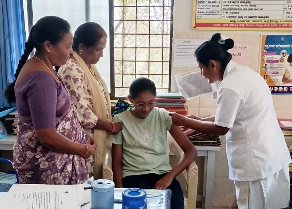 ಸೋಂಪುರ ಹೋಬಳಿ ಶಿವಗಂಗೆ ಪ್ರಾಥಮಿಕ ಆರೋಗ್ಯ ಕೇಂದ್ರದಲ್ಲಿ ಆಯೋಜಿಸಲಾಗಿದ್ದ 14 ವರ್ಷದ ಹೆಣ್ಣು ಮಕ್ಕಳಿಗೆ ಗರ್ಭಕಂಠ ಕ್ಯಾನ್ಸರ್ ನಿರೋಧಕ (ಎಚ್ಪಿವಿ) ಲಸಿಕೆ ನೀಡಲಾಯಿತು.