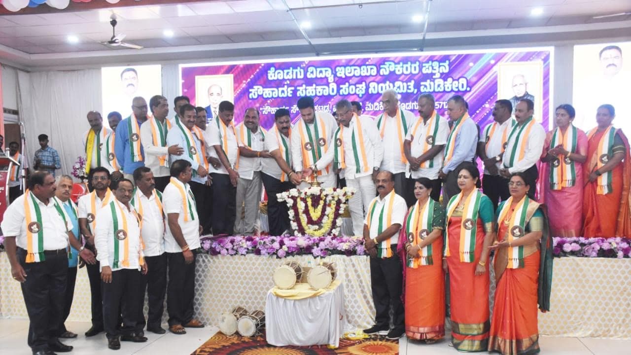 ಕೊಡಗು ವಿದ್ಯಾ ಇಲಾಖಾ ನೌಕರರ ಪತ್ತಿನ ಸೌಹಾರ್ದ ಸಹಕಾರಿ ಸಂಘದ ಕ್ಯಾಲೆಂಡರ್ ಬಿಡುಗಡೆ ಮಾಡಿ ಮಾತನಾಡಿದ ವಿಧಾನ ಪರಿಷತ್ ಸದಸ್ಯ ಎಂ.ಪಿ. ಸುಜಾ ಕುಶಾಲಪ್ಪ, ಶತಸಂಭ್ರಮ ಭವನ ನಿರ್ಮಾಣಕ್ಕೆ ಜುಲೈ ಅಥವಾ ಆಗಸ್ಟ್ ತಿಂಗಳಿನಲ್ಲಿ ಎಂಎಲ್ಸಿ ಅನುದಾನದಿಂದ 5 ಲಕ್ಷ ರೂ. ನೀಡುವುದಾಗಿ ಭರವಸೆ ನೀಡಿದರು.ಸ್ಮರಣ ಸಂಚಿಕೆ ಬಿಡುಗಡೆ ಮಾಡಿ ಮಾತನಾಡಿದ ಕರ್ನಾಟಕ ರಾಜ್ಯ ಸೌಹಾರ್ದ ಸಂಯುಕ್ತ ಸಹಕಾರಿಯ ಅಧ್ಯಕ್ಷ ಜಿ. ನಂಜನ ಗೌಡ, ವ್ಯಕ್ತಿ ಅಥವಾ ಒಂದು ಸಂಸ್ಥೆ ಬೆಳವಣಿಗೆ ಕಾಣಬೇಕಾದರೆ ಸ್ಥಾಪಕರ ಸ್ಮರಣೆ ಅಗತ್ಯ ಎಂದರು.ಅಧ್ಯಕ್ಷತೆ ವಹಿಸಿ ಮಾತನಾಡಿದ ಕೊಡಗು ವಿದ್ಯಾ ಇಲಾಖಾ ನೌಕರರ ಪತ್ತಿನ ಸೌಹಾರ್ದ ಸಹಕಾರಿ ಸಂಘದ ಅಧ್ಯಕ್ಷ ಎಚ್.ಎಸ್. ಚೇತನ್, ಸದಸ್ಯರೇ ಸಂಸ್ಥೆಯ ಜೀವಾಳವಾಗಿದ್ದಾರೆ. ಸದಸ್ಯರ ಸಕ್ರಿಯ ಪಾಲ್ಗೊಳ್ಳುವಿಕೆ ಮತ್ತು ಕಾಳಜಿ ಸಂಘದ ಬೆಳವಣಿಗೆಗೆ ಕಾರಣವಾಗಿದೆ. ಮಕ್ಕಳ ಭವಿಷ್ಯವನ್ನು ರೂಪಿಸುವ ಶಿಕ್ಷಕರು ಸಹಕಾರಿ ಕ್ಷೇತ್ರಕ್ಕೂ ಸೈ ಎನ್ನುವುದನ್ನು ಸಾಬೀತುಪಡಿಸಿದ್ದಾರೆ ಎಂದರು.