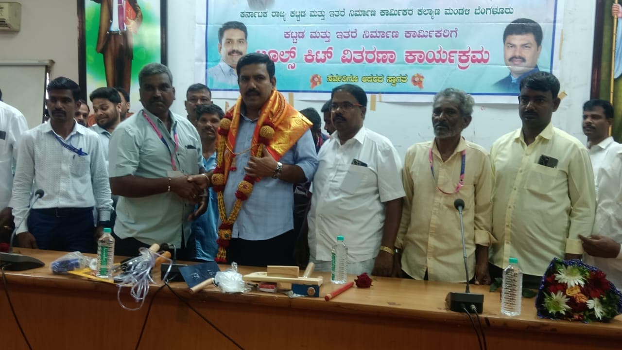 ಈ ವೇಳೆ ಆಯ್ದ ಕಾರ್ಮಿಕರಿಗೆ ಟೂಲ್ಸ್ ಕಿಟ್ಗಳನ್ನು ಸಾಂಕೇತಿಕವಾಗಿ ವಿತರಿಸಿದರು. ಕಾರ್ಯಕ್ರಮದ ಅಧ್ಯಕ್ಷತೆಯನ್ನು ರಾಜ್ಯ ಕಟ್ಟಡ ಮತ್ತು ಇತರೆ ನಿರ್ಮಾಣ ಕಾರ್ಮಿಕರ ಜಿಲ್ಲಾ ಸಂಘದ ಗೌರವಾಧ್ಯಕ್ಷ ಮಹದೇವಾಚಾರ್ ವಹಿಸಿ ಮಾತನಾಡಿದರು.ತಾಲೂಕು ಘಟಕದ ಅಧ್ಯಕ್ಷ ಮುನಿರತ್ನ, ಉಪಾಧ್ಯಕ್ಷ ಬಸವರಾಜ್ ಸೊಪ್ಪಿನಕೇರಿ, ಚೂರಿ ಗಿಡ್ಡಪ್ಪ, ಸಲೀಂ, ಸುರೇಶ್, ಬಾಪೂಜಿ ಶಿಕ್ಷಣ ಸಂಸ್ಥೆಯ ಸಂಸ್ಥಾಪಕ ಪಾಪಯ್ಯ ಕಾರ್ಮಿಕ ಇಲಾಖೆಯ ಶಿಲ್ಪ ಇದ್ದರು.